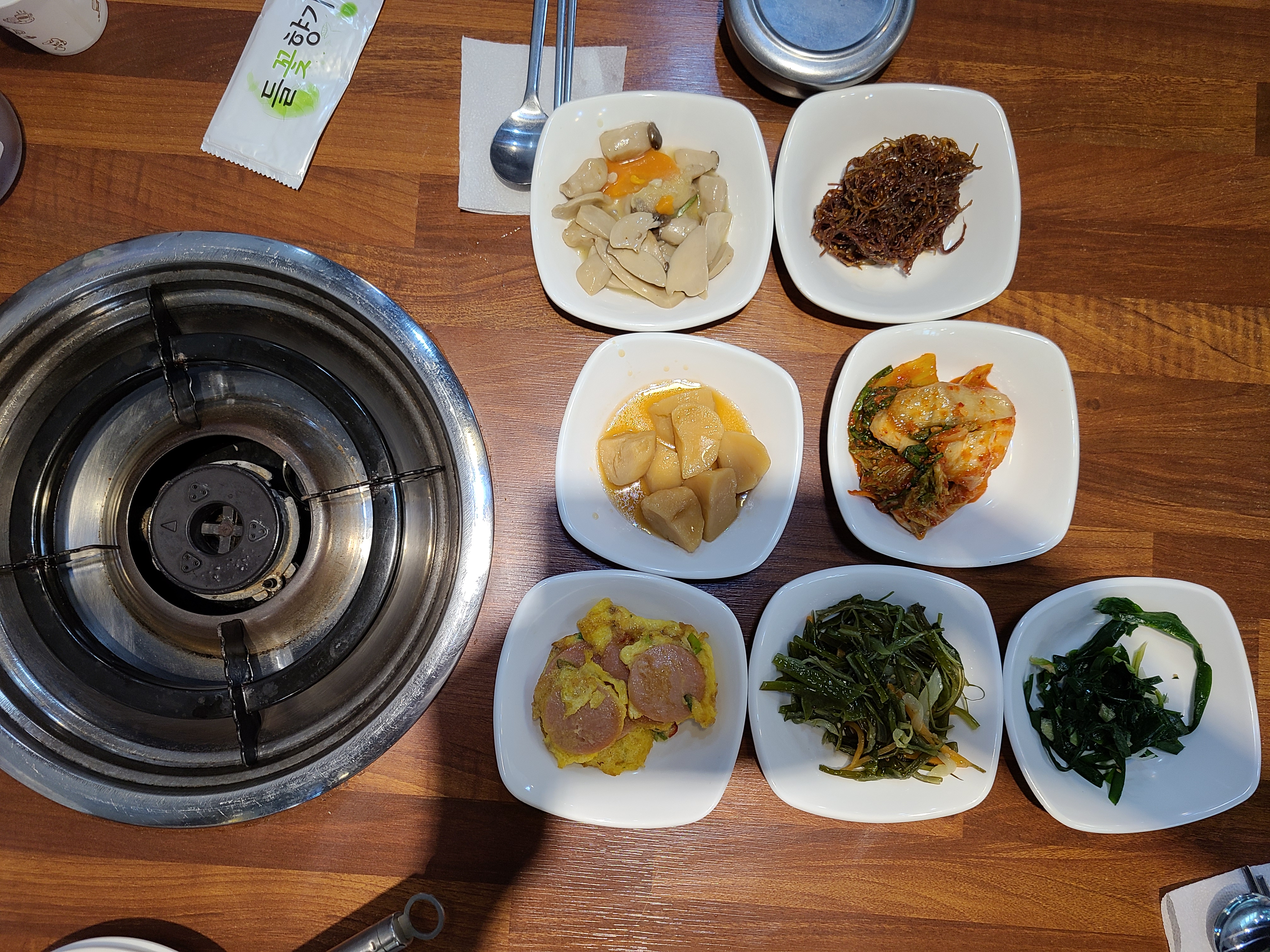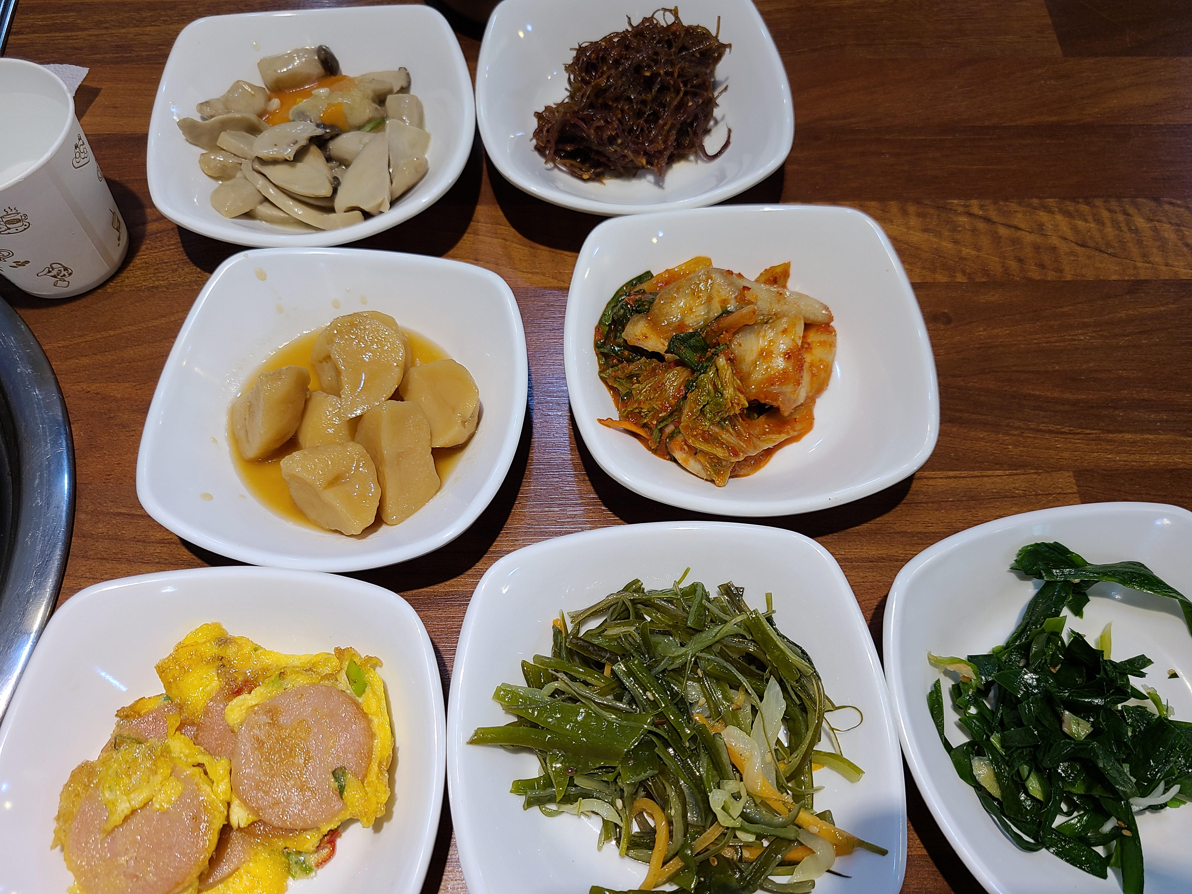 기본반찬이 나왔는데 남편은 분홍색 소시지 전을 보더니 어릴 적 자주 먹던 음식이라며 무척 좋아했다.