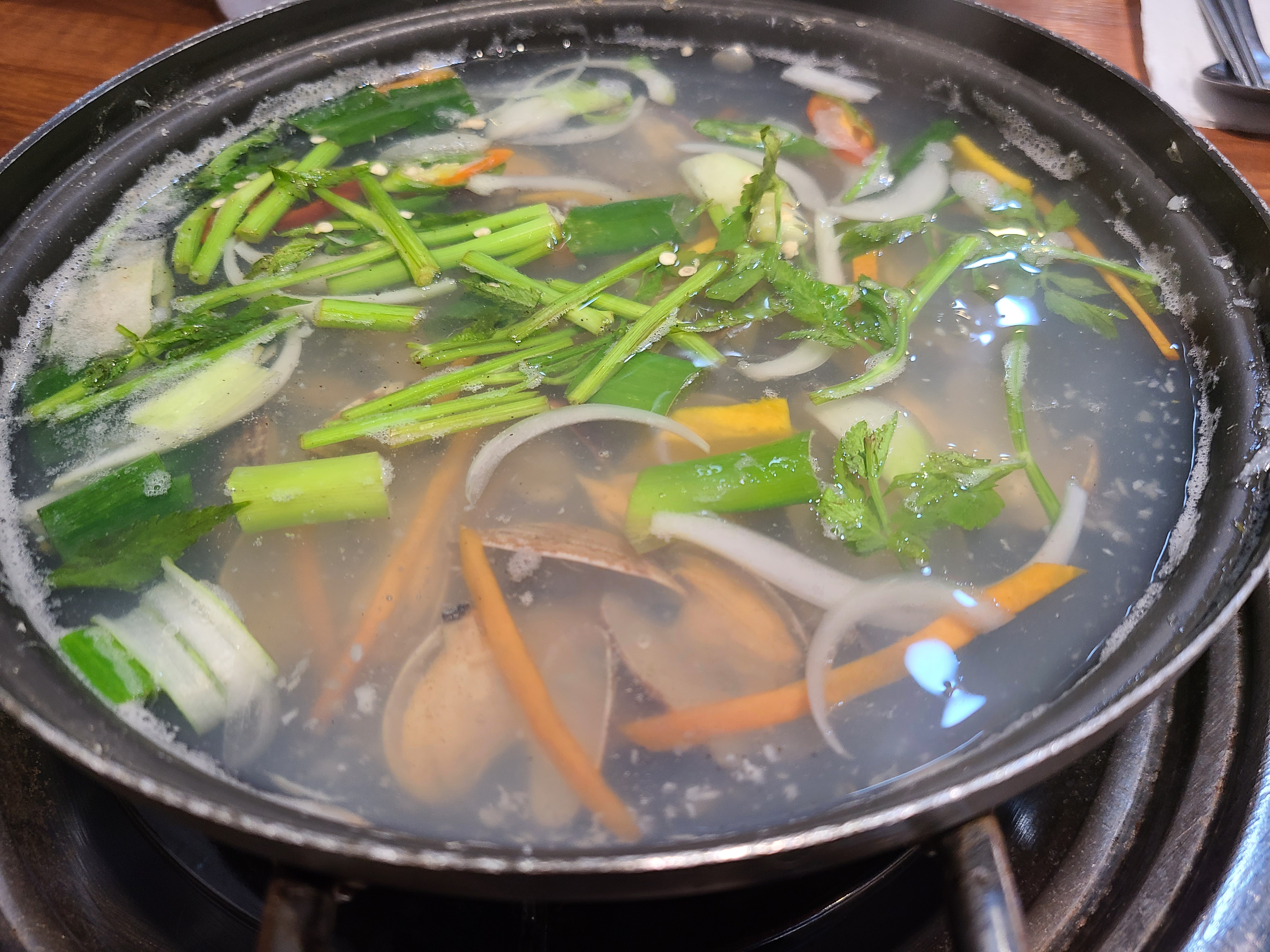 처음에는 국물이 심심한 듯했는데 끓일수록 칼칼한 맛과 바지락 국물 맛이 진해졌다.