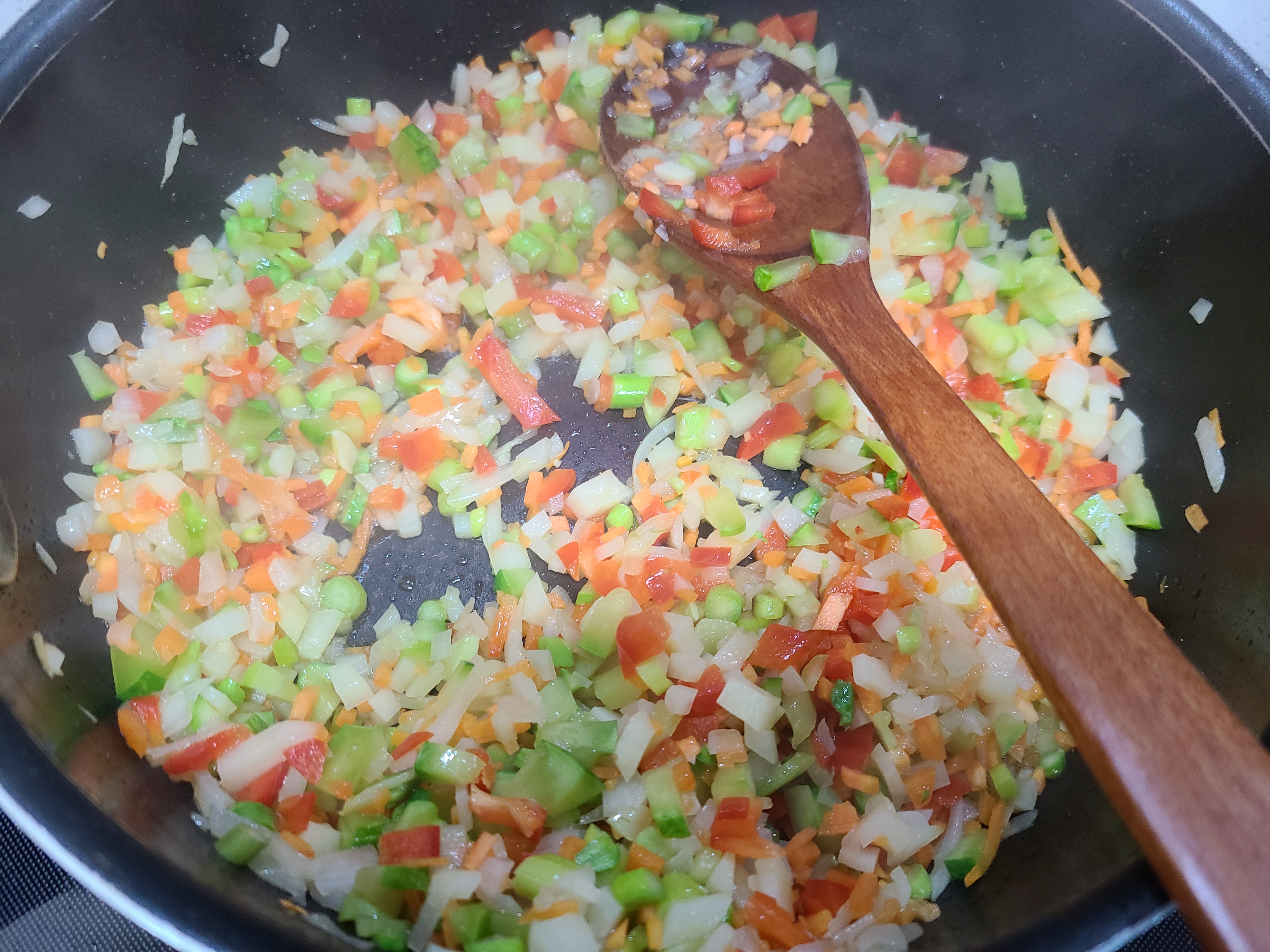 3. 당근을 먼저 넣고 볶다가 아스파라거스, 호박, 파프리카를 넣고 볶아준다.