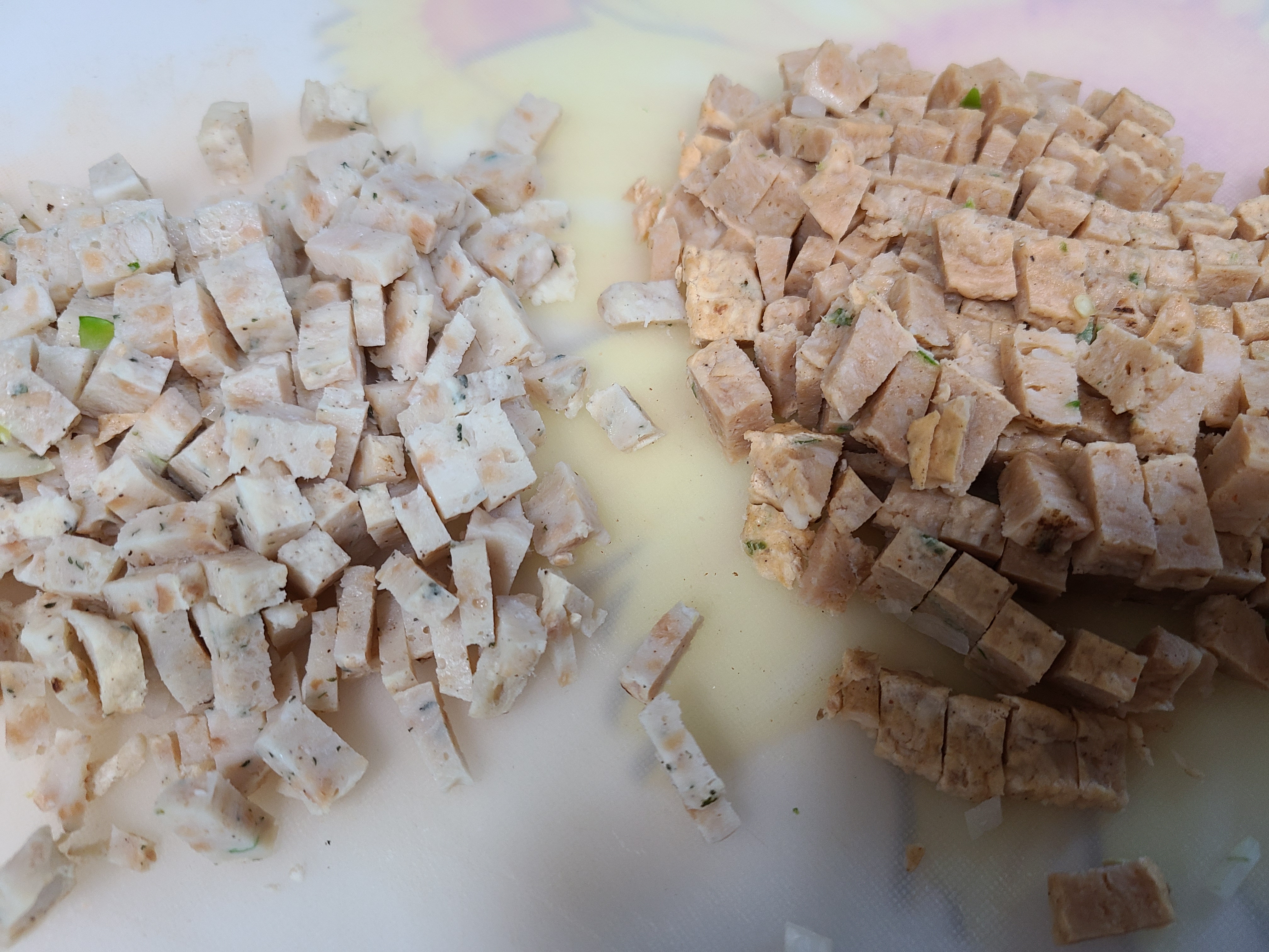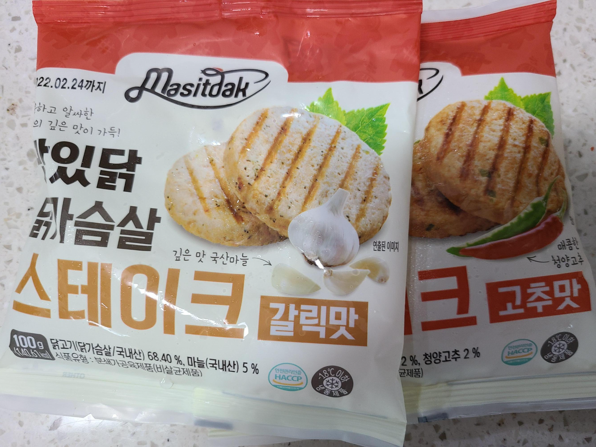 다이어트용 닭가슴살은 양념을 하지 않은 것만 있는 줄 알았는데 아들이 구입해 놓은 닭가슴살은 '맛있는 닭가슴살 스테이크'로 여러 가지 재료를 넣은 맛있는 닭가슴살이었다. 다른 고기 대신 닭가슴살 스테이크를 넣어서 만들면 될듯하다.