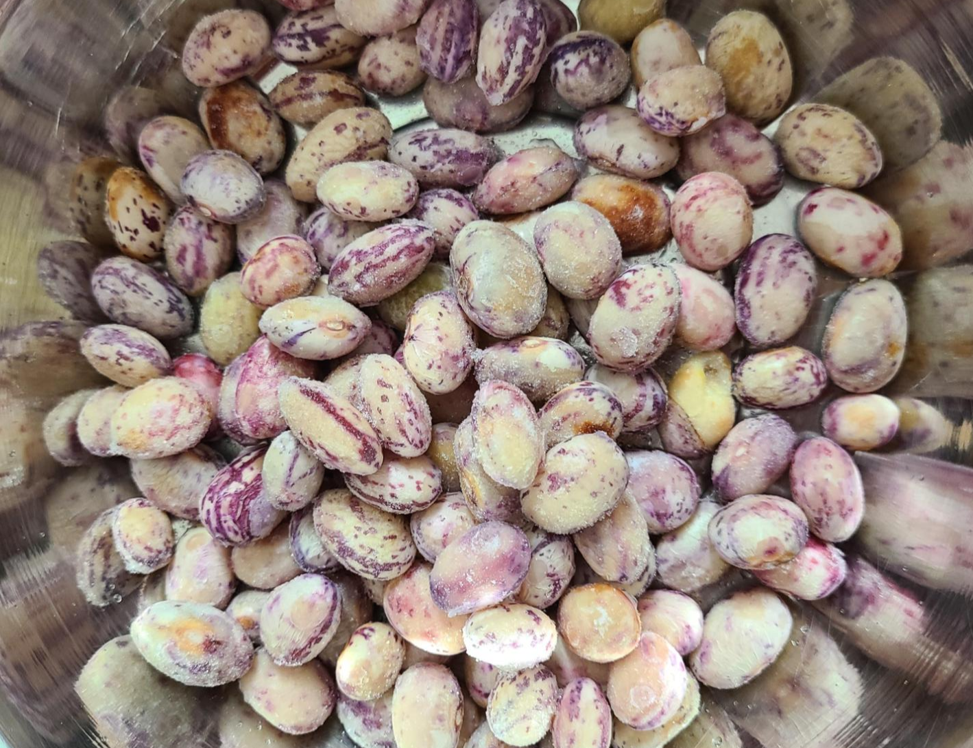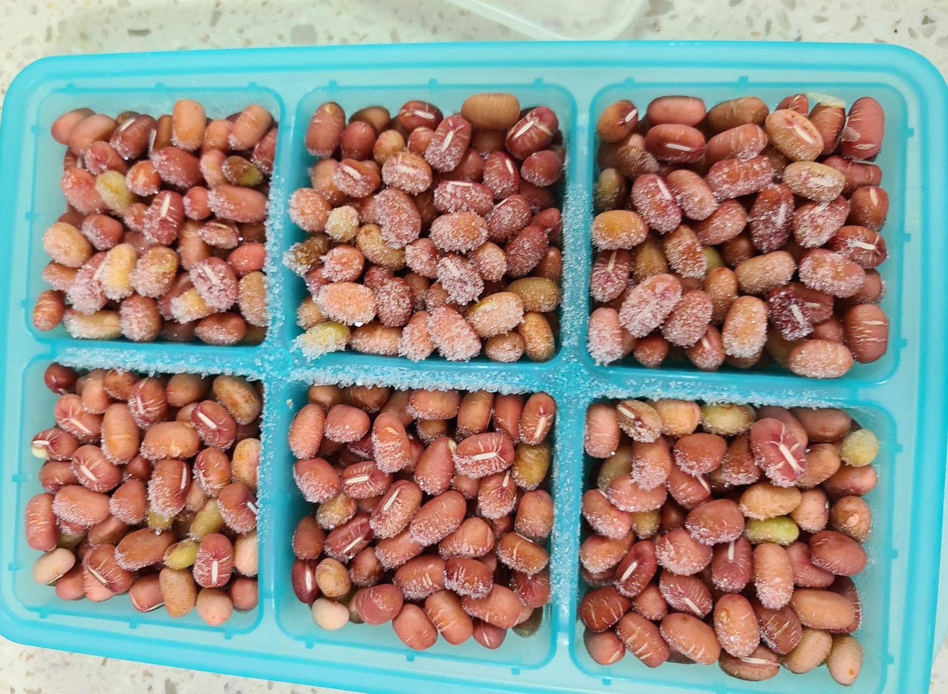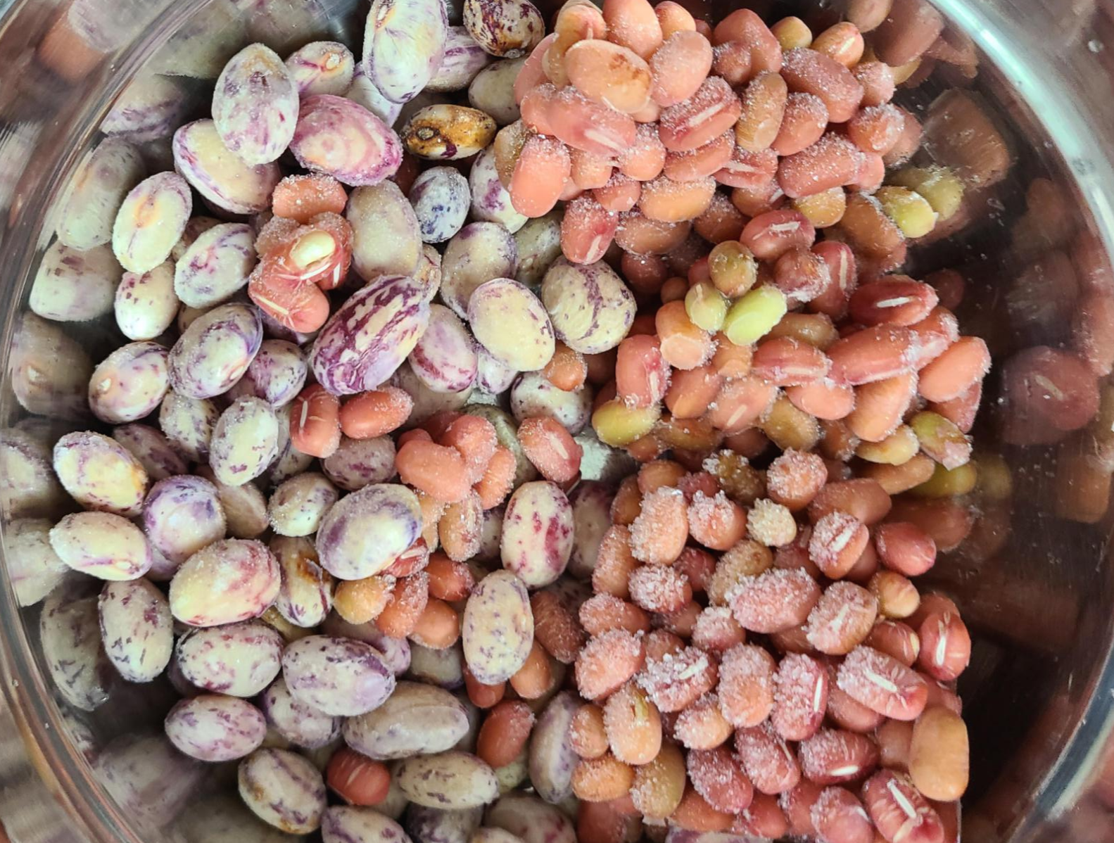 얼려 놓았던 팥과 호랑이콩을 물에 씻어 체에 밭쳐 놓는다.