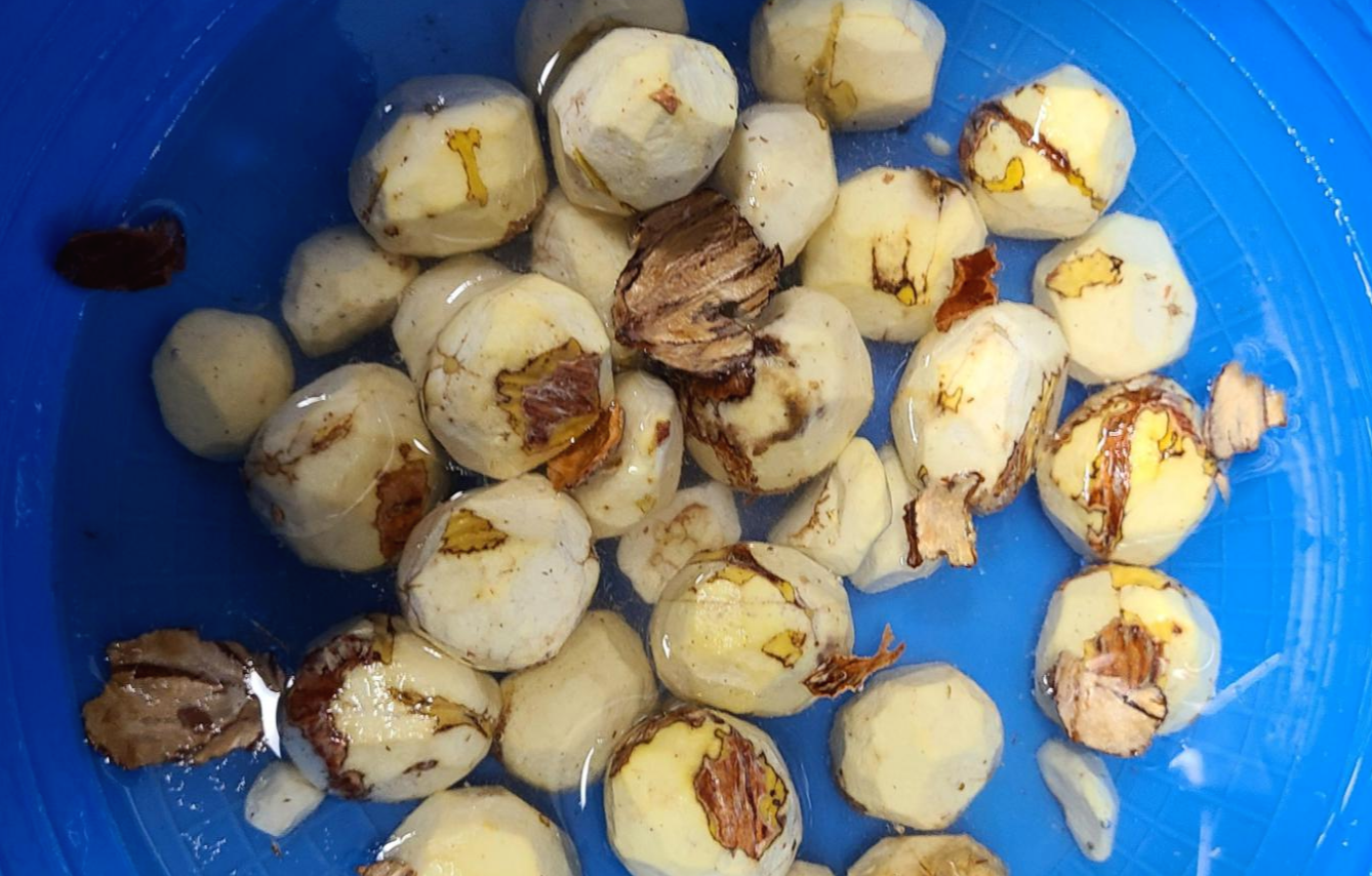 아파트 상가에서 밤을 사면 기계로 껍질을 벗겨주는데 덜까진 부분만 조금 다듬어 주면 된다.
