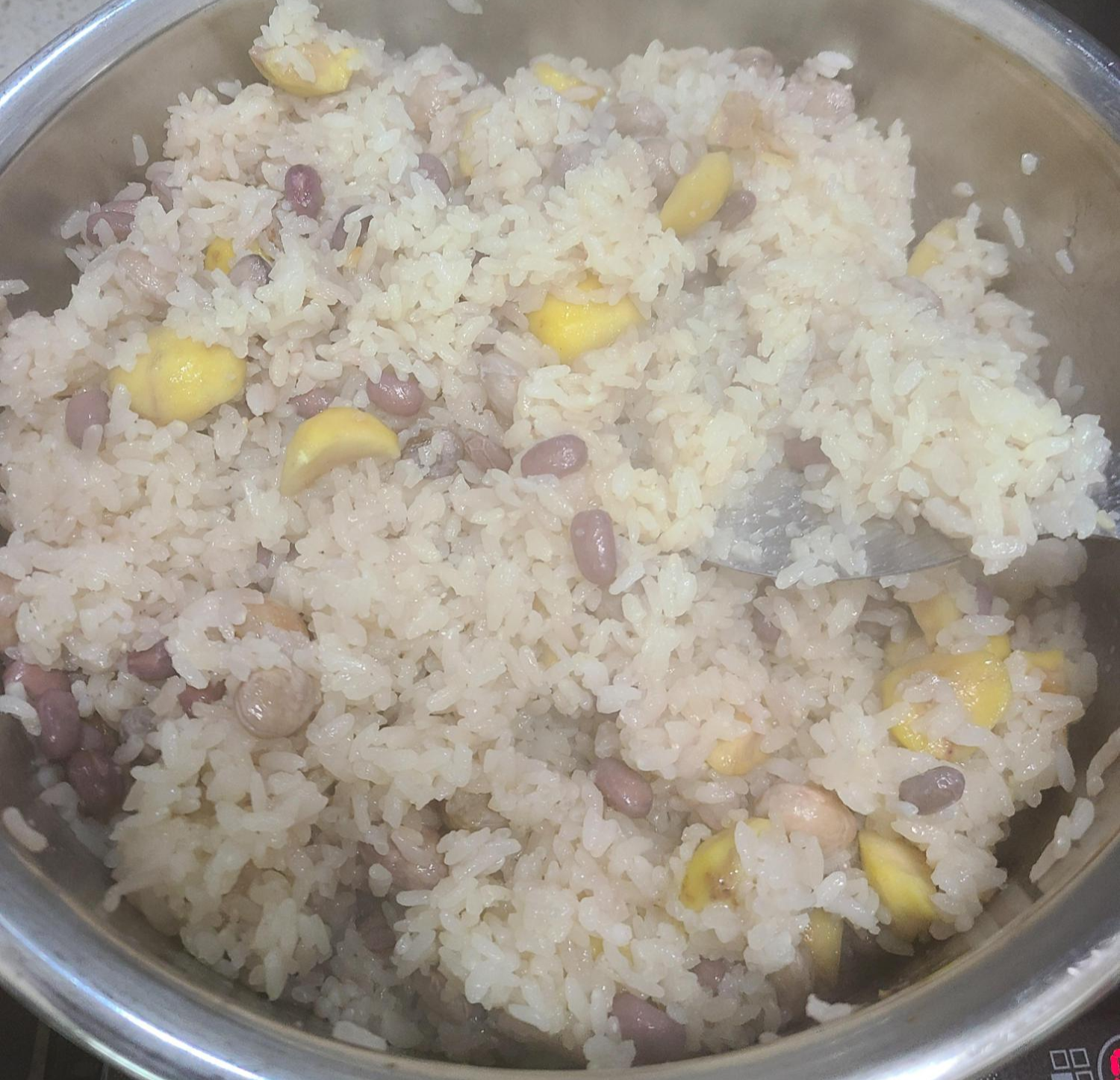 밤은 영양성분이 많은 식품이고 소화에도 도움을 주는 음식이지만 금양 체질인 나에게는 먹지 말아야 할 음식 중에 하나이다. 하지만 밤을 넣으면 찰밥의 달콤함이 상승되는 것을 알기에 나는 또 밤을 넣고야 만다.
