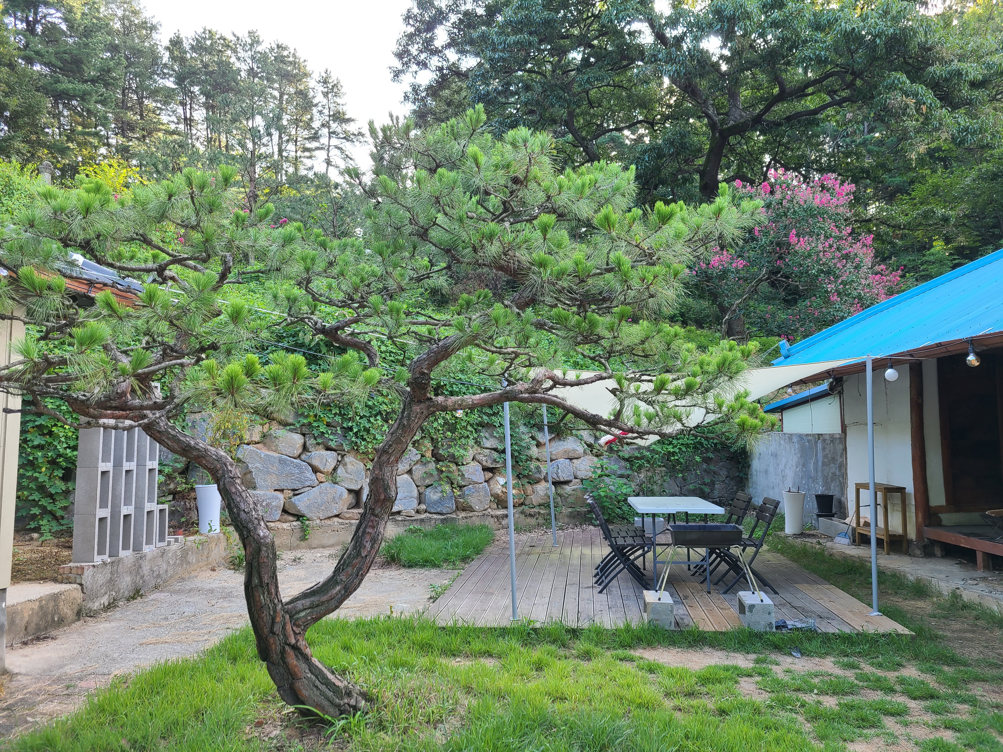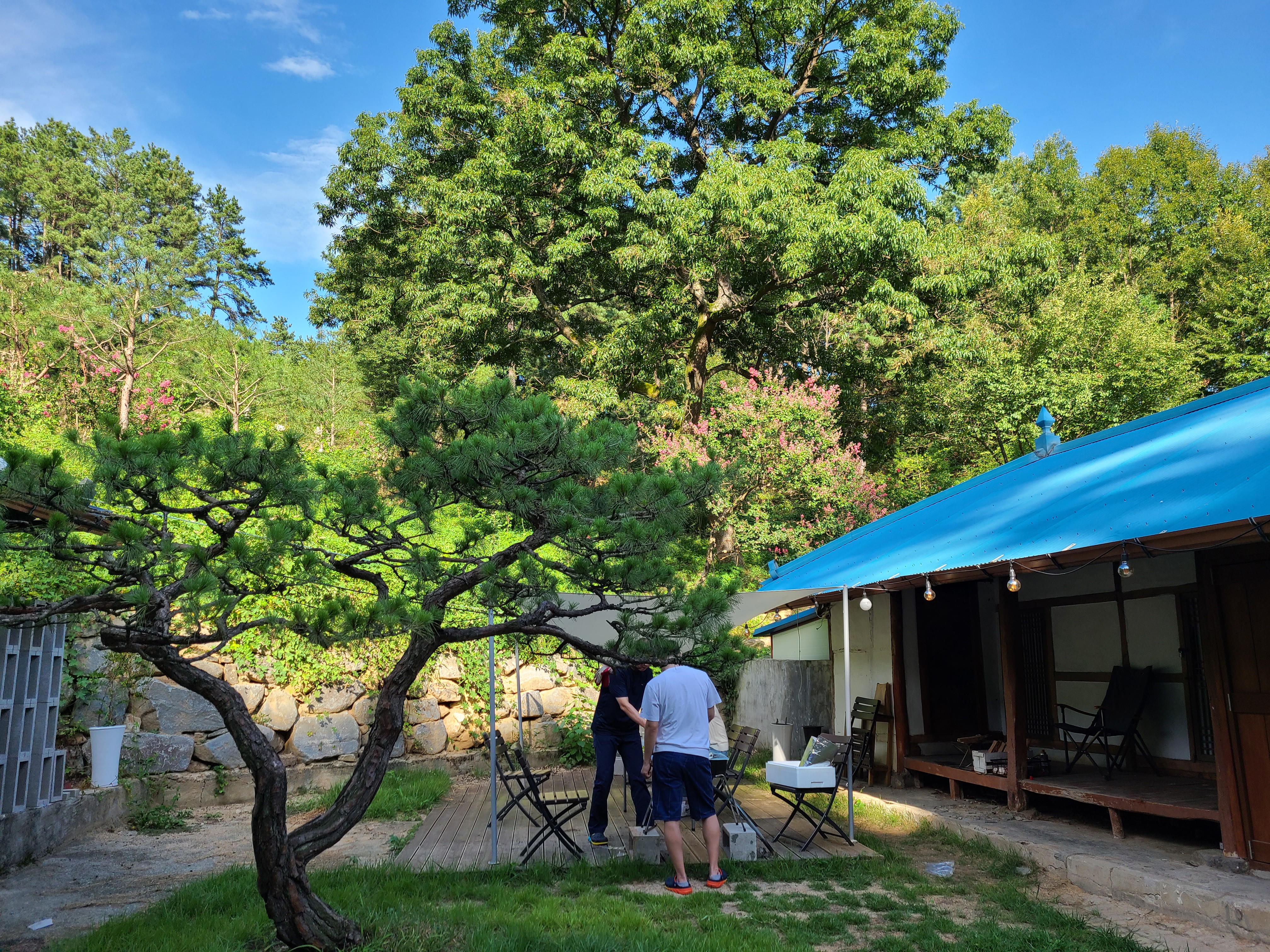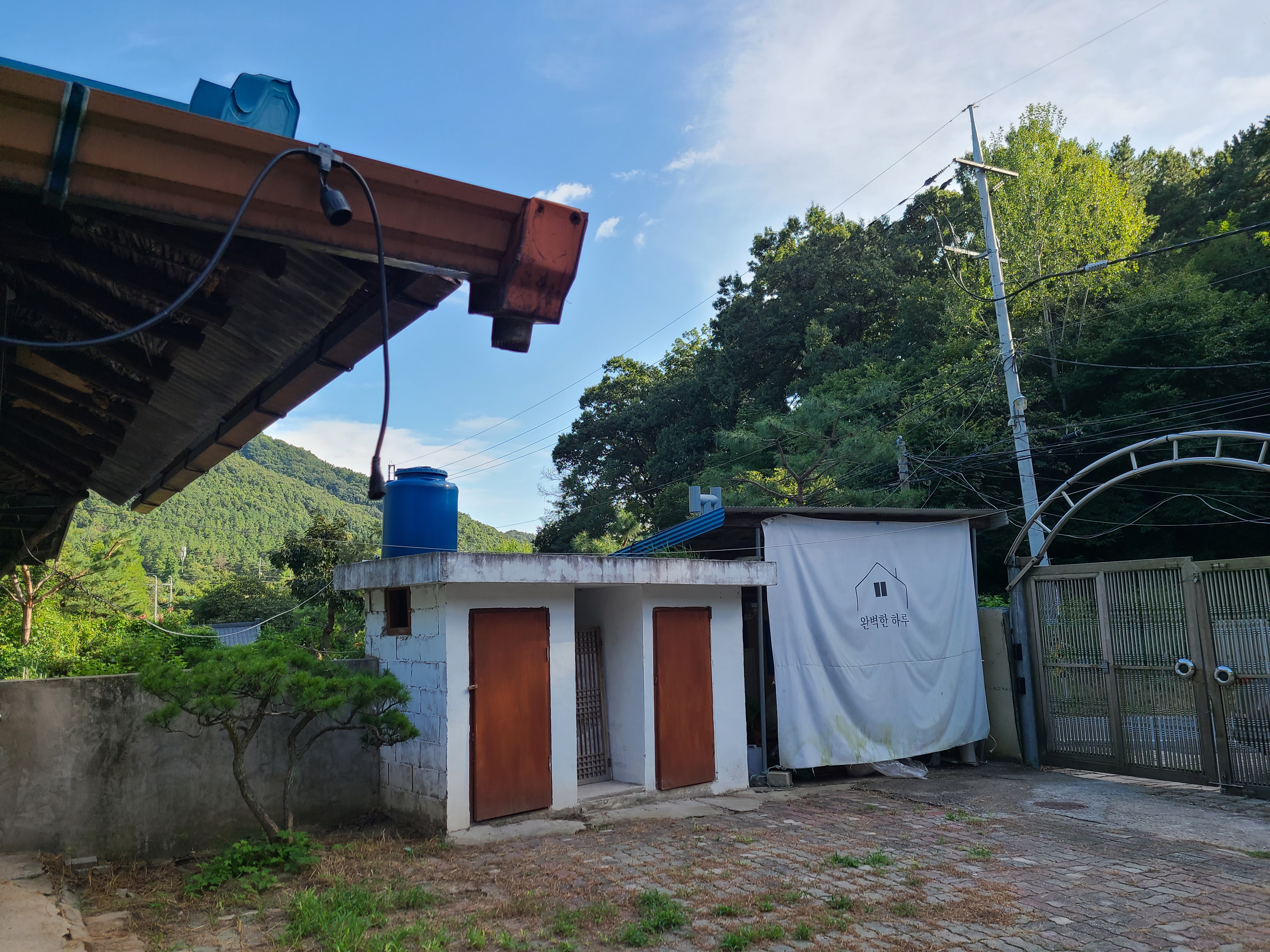 첫날 숙소인 완벽한 하루에 도착을 하였다. 대청호 주변의 시골마을이었는데 겉모습을 보니 멋들어진 한옥이 아닌 허름한 집이었다. 앞마당이 제법 넓었고 마당 한쪽에는 바베큐장이 있었다.
