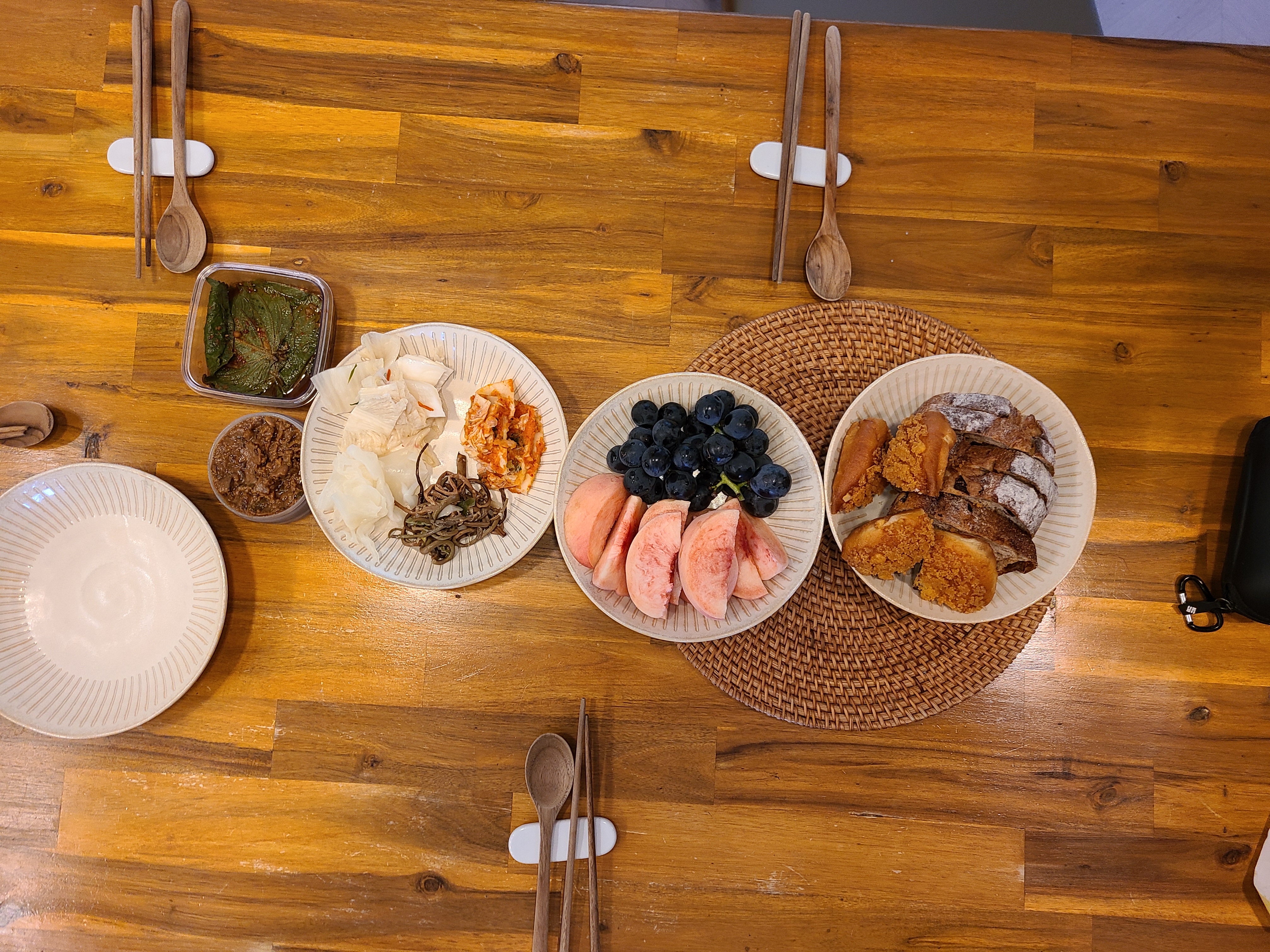 사위와 딸은 전날 대전 성심당 빵을 사 온 것과 과일이면 아침으로 충분하다고 한다. 하지만 집에서 미역국을 준비해온 나는 밥도 짓고 미역국도 다시 끓여서 준비해온 김치와 나물도 차려내었다.