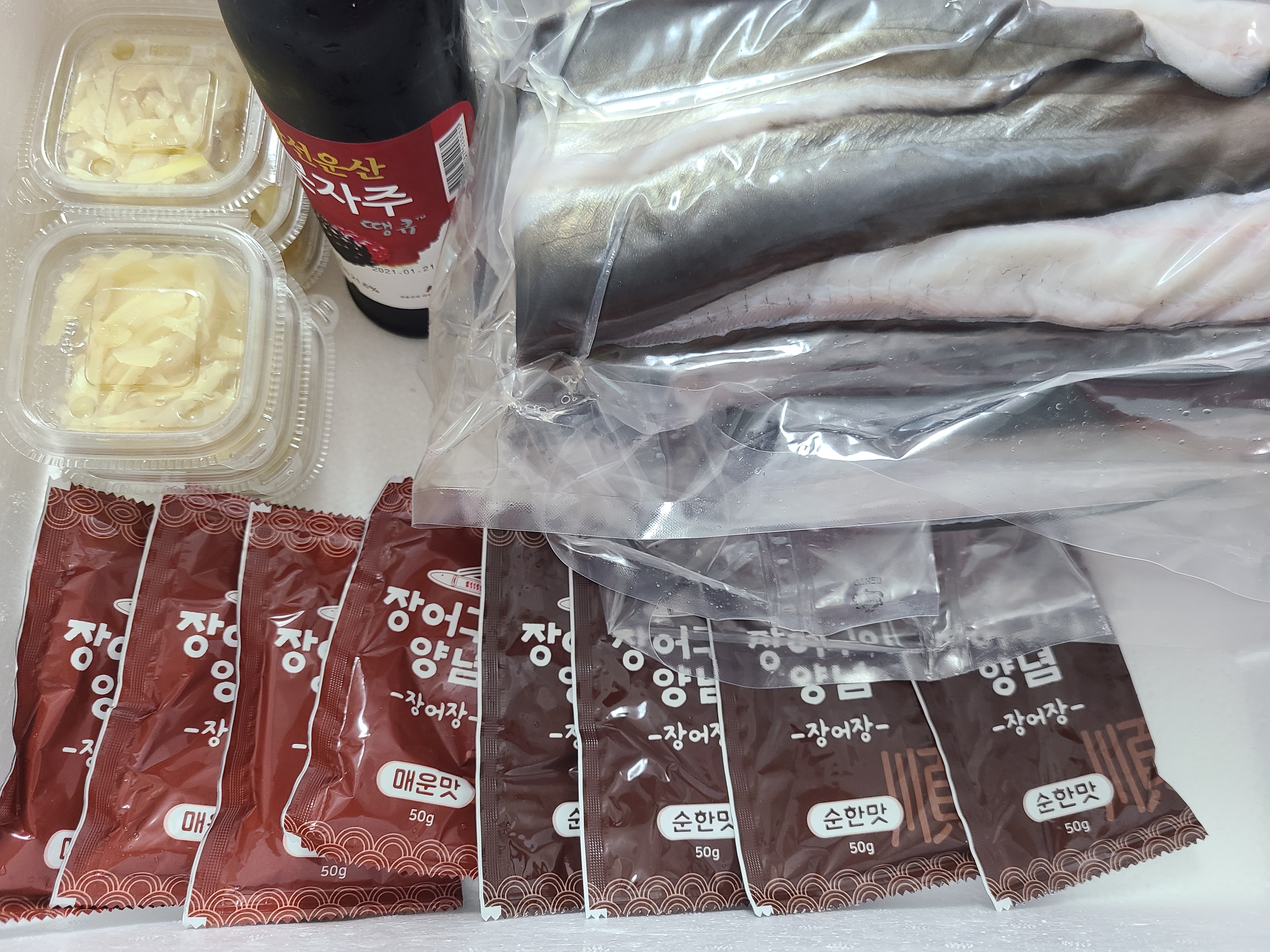 지인소개로 고창에서 민물장어를 3킬로 주문했는데 한 마리씩 포장해서 아이팩과 함께 은박지 봉투에 담은 후 스티로폼 박스에 다시 담아 보내왔는데 장어가 너무 좋아 보였다.