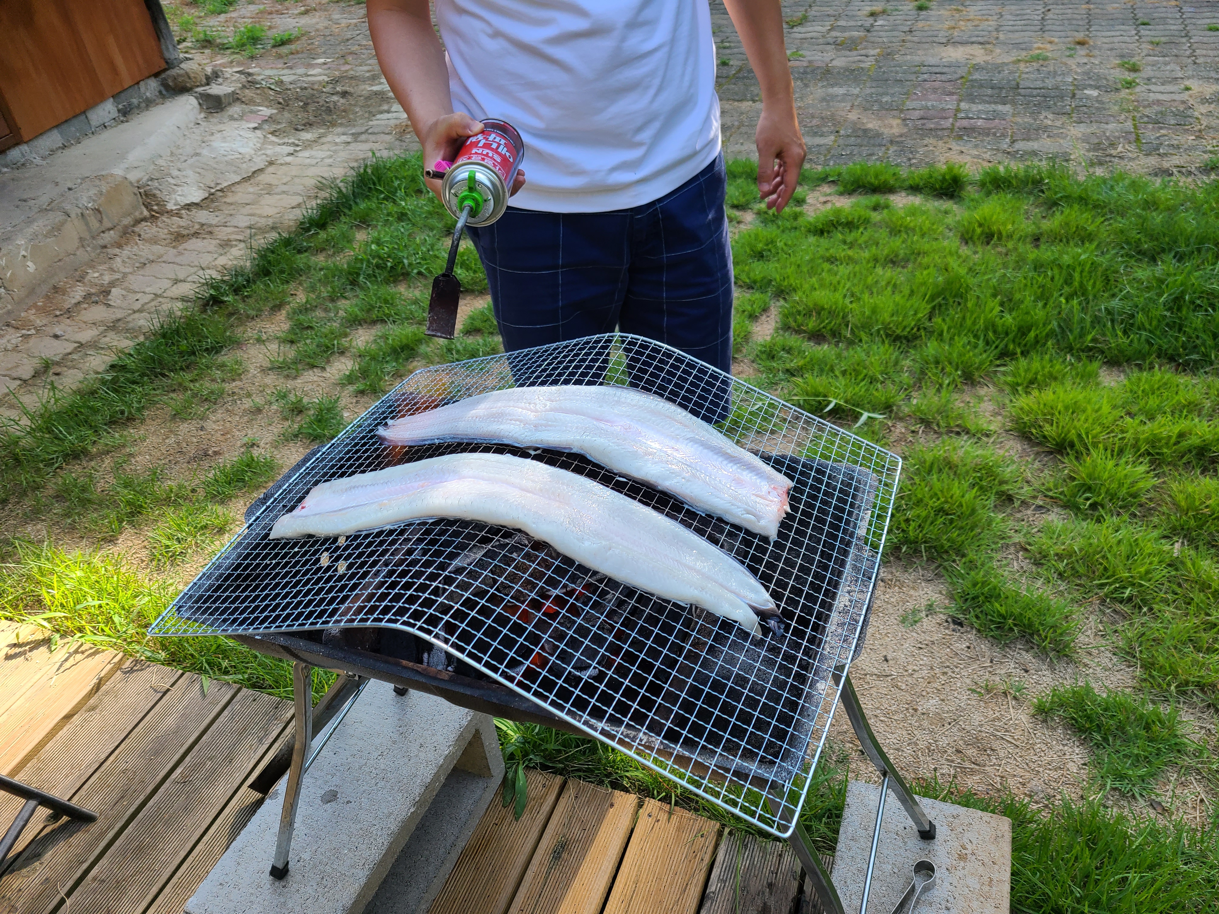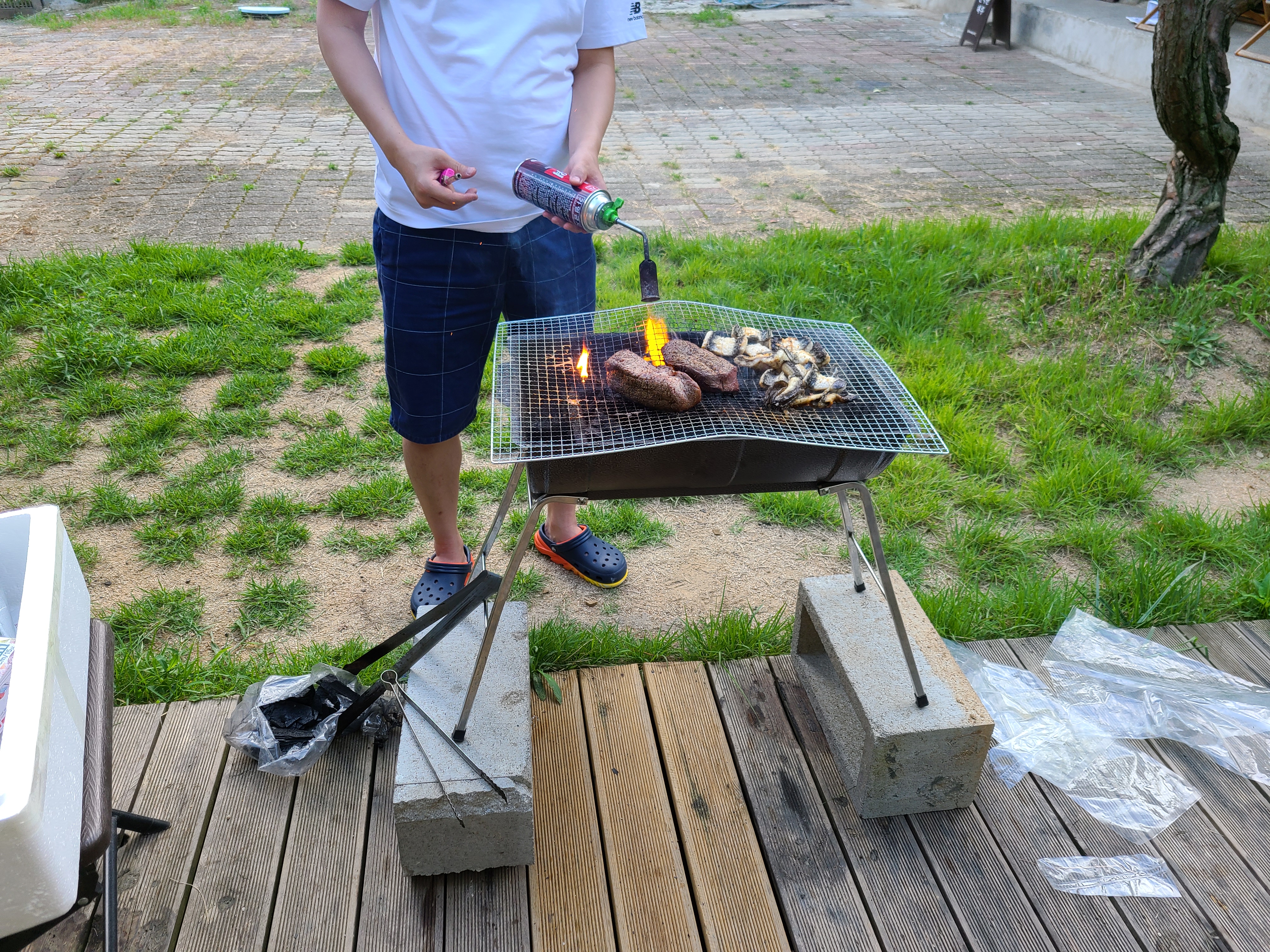 숯을 추가로 더 넣고 불까지 품어댄다. ㅎㅎㅎ