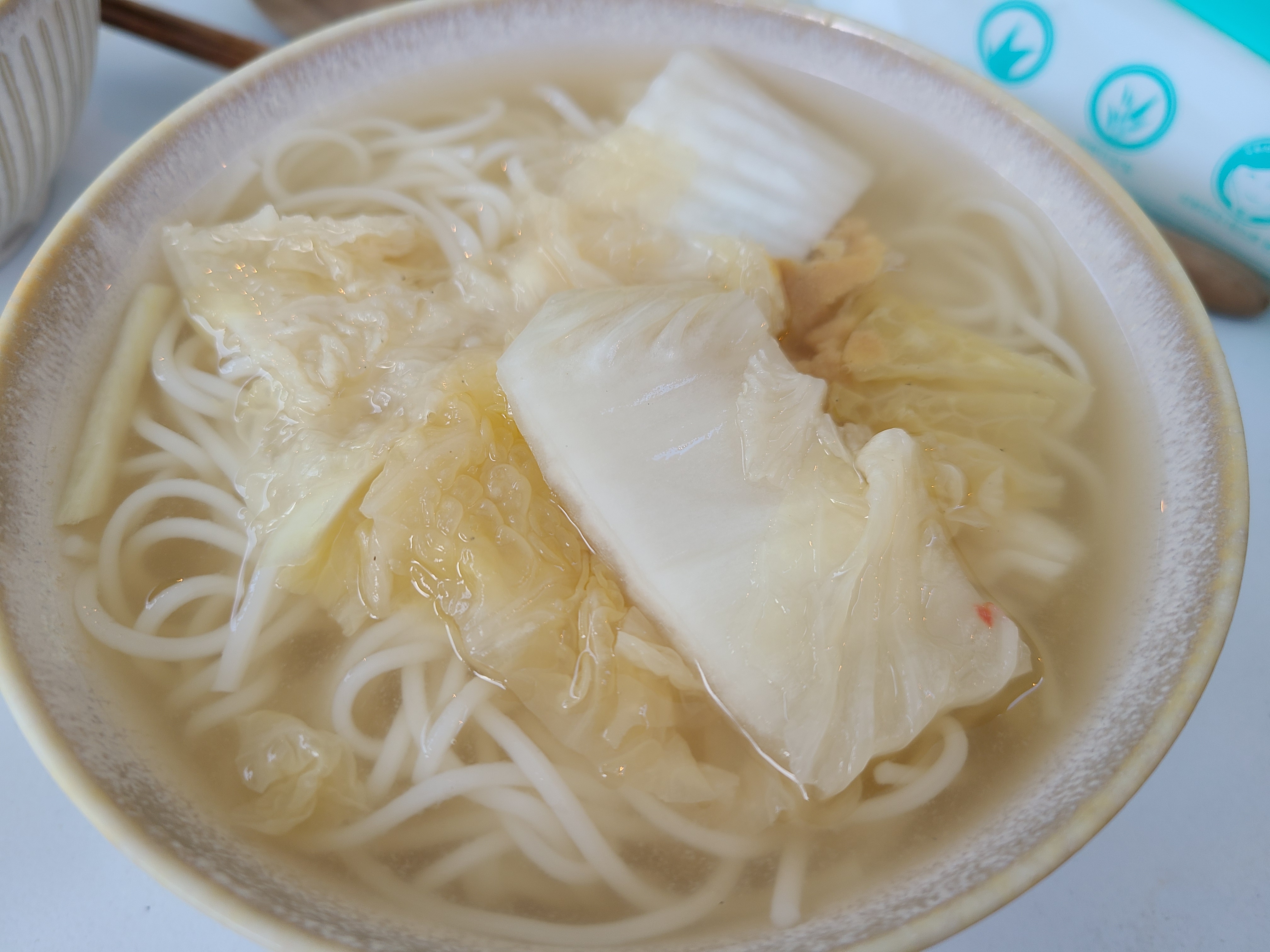 집에서 준비해온 배추 백김치 국물에 시판 동치미 냉면 육수를 1: 1로 섞어 국수를 말고 배추 백김치를 고명으로 얹어서 내어 주었다.
