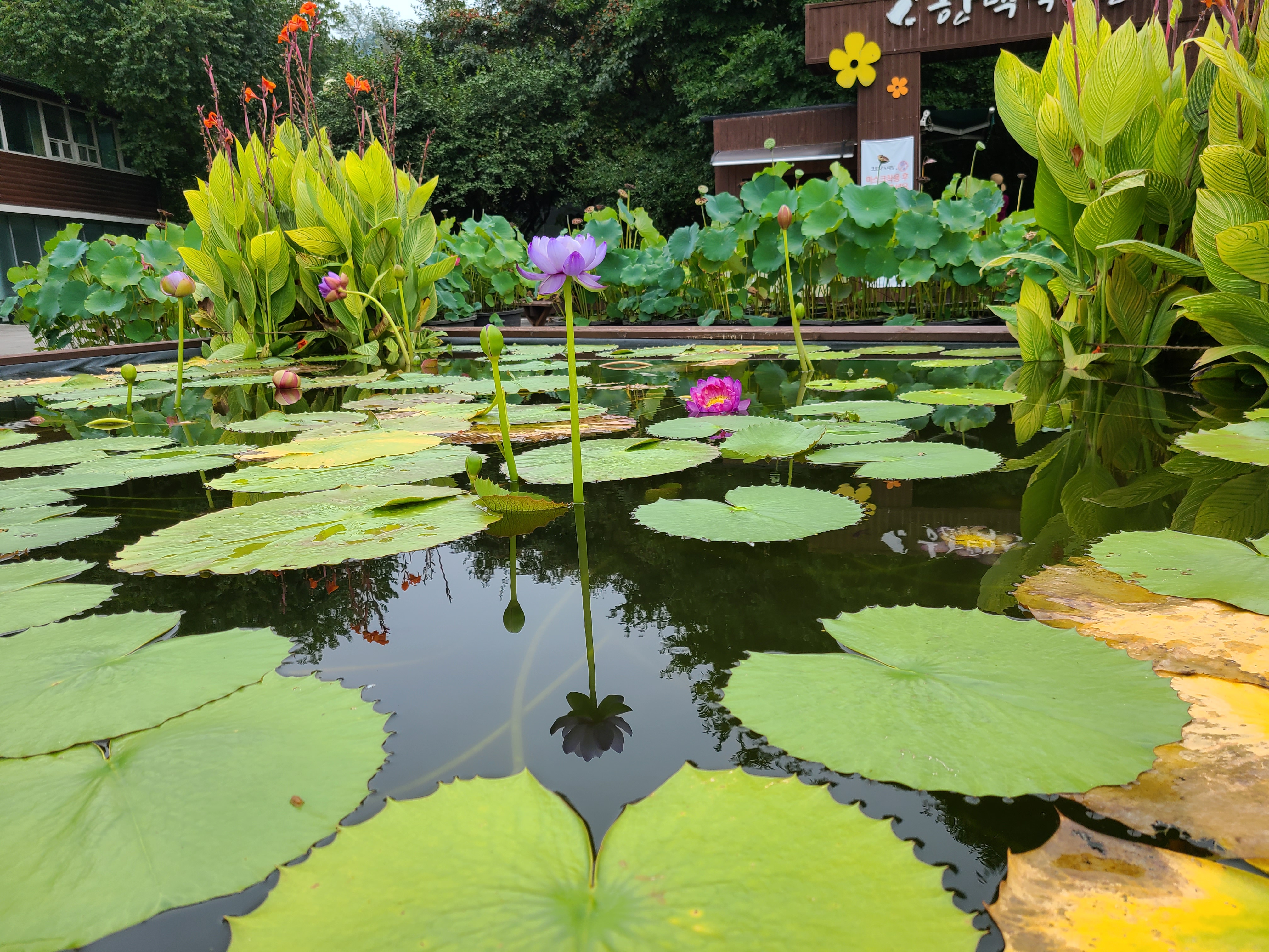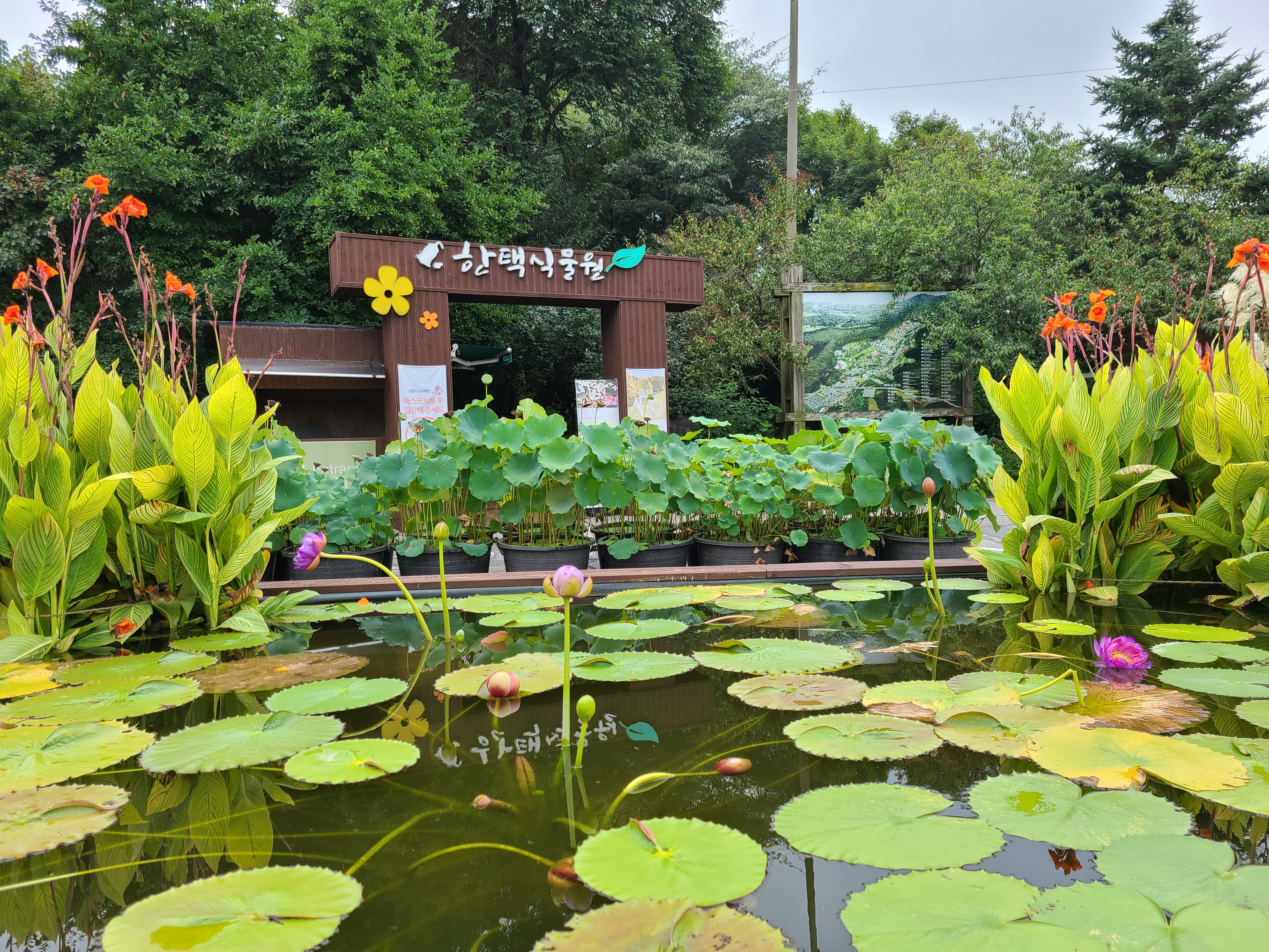 도착한 한택식물원 정문 앞에는 연꽃과 수련이 아름답게 놓여 있었다.