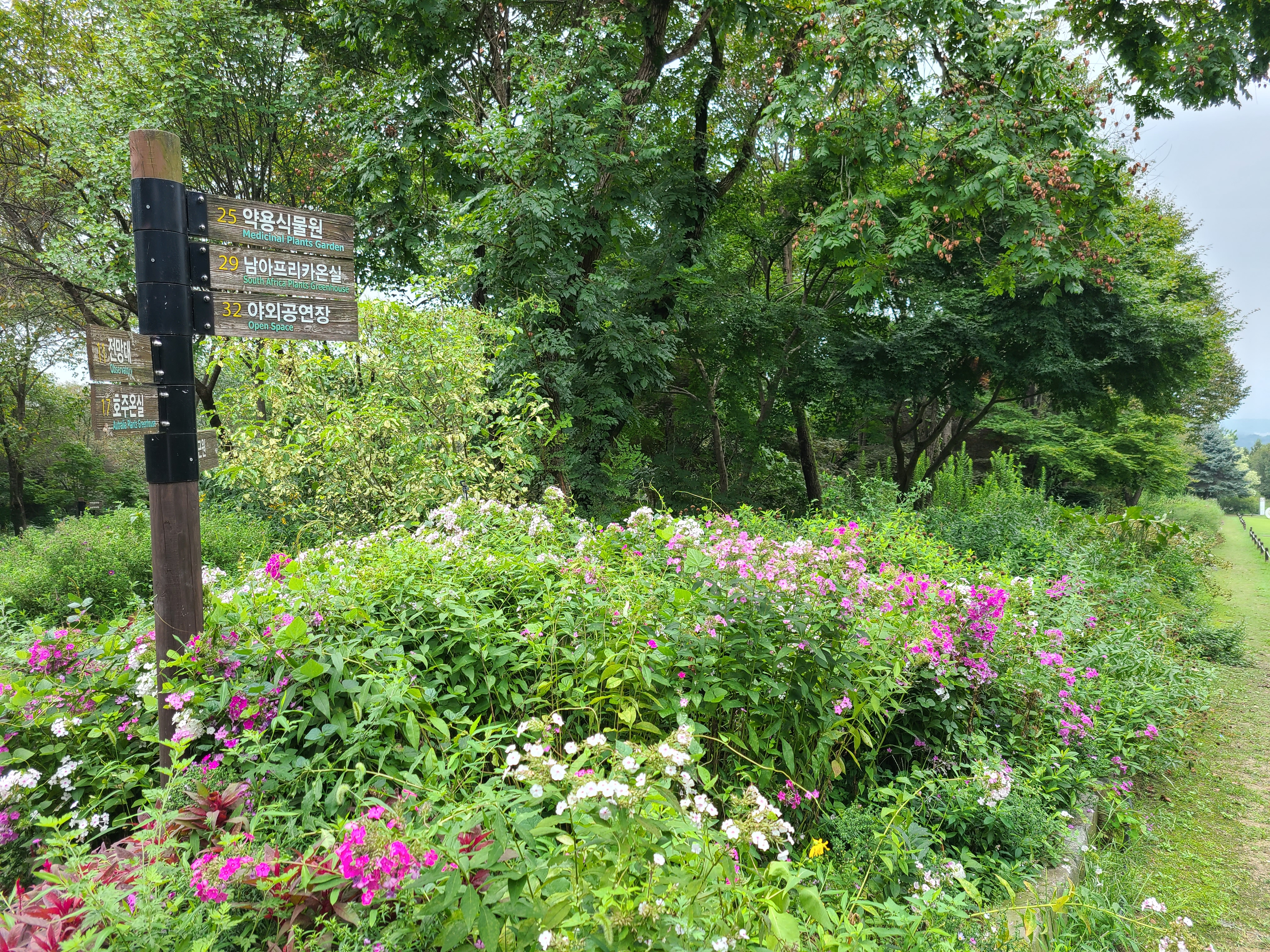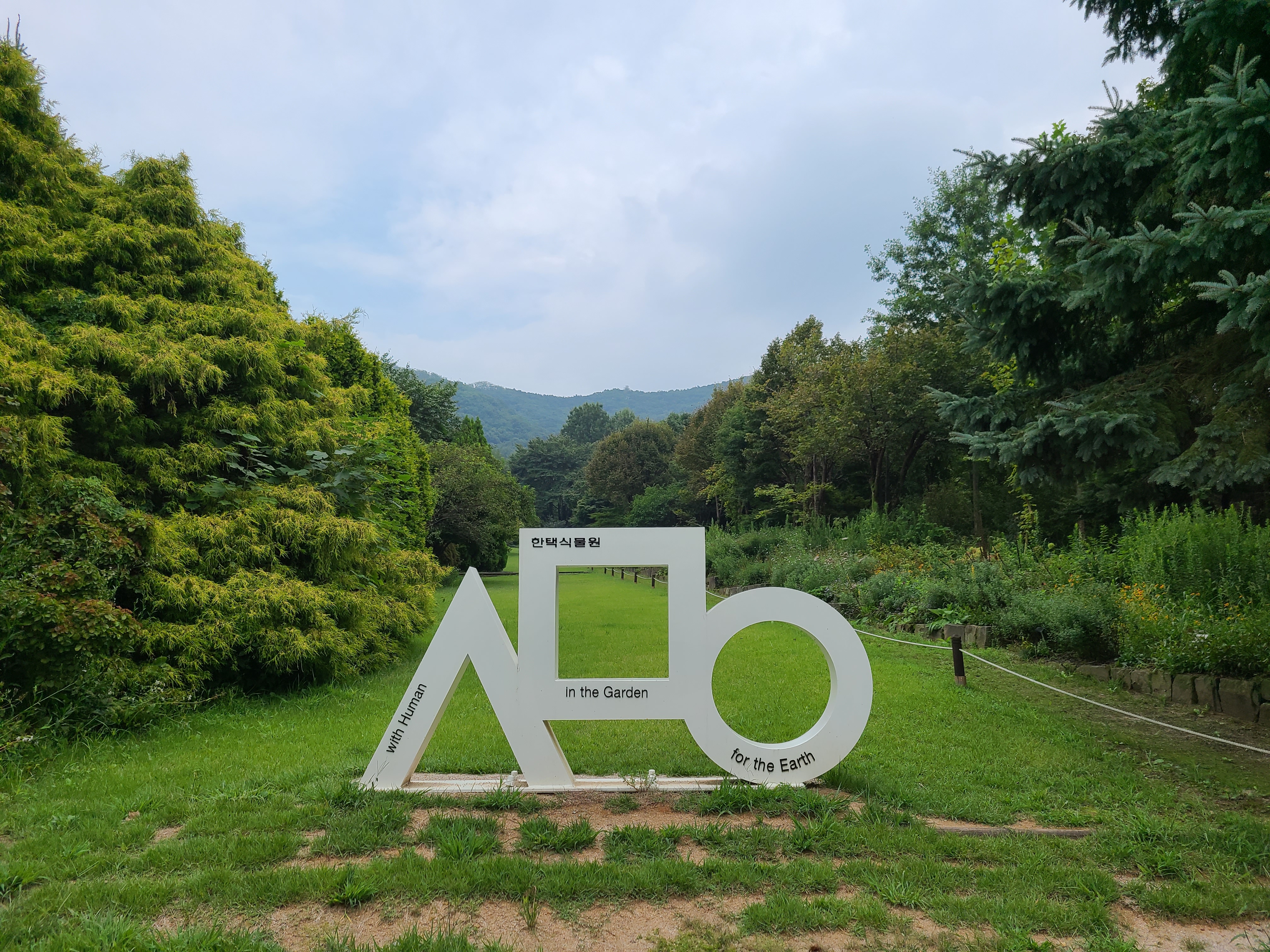 잔디화단이 시원스레 펼쳐져 있다. 한택식물원에서 ㅅㅁㅇ을찾아 사진과 #해시태그를 SNS에 올리고 야생화씨앗을 받아가라고 하는데 야생화씨앗을 받아가도 심을 곳이 없어 그냥 포기했다.