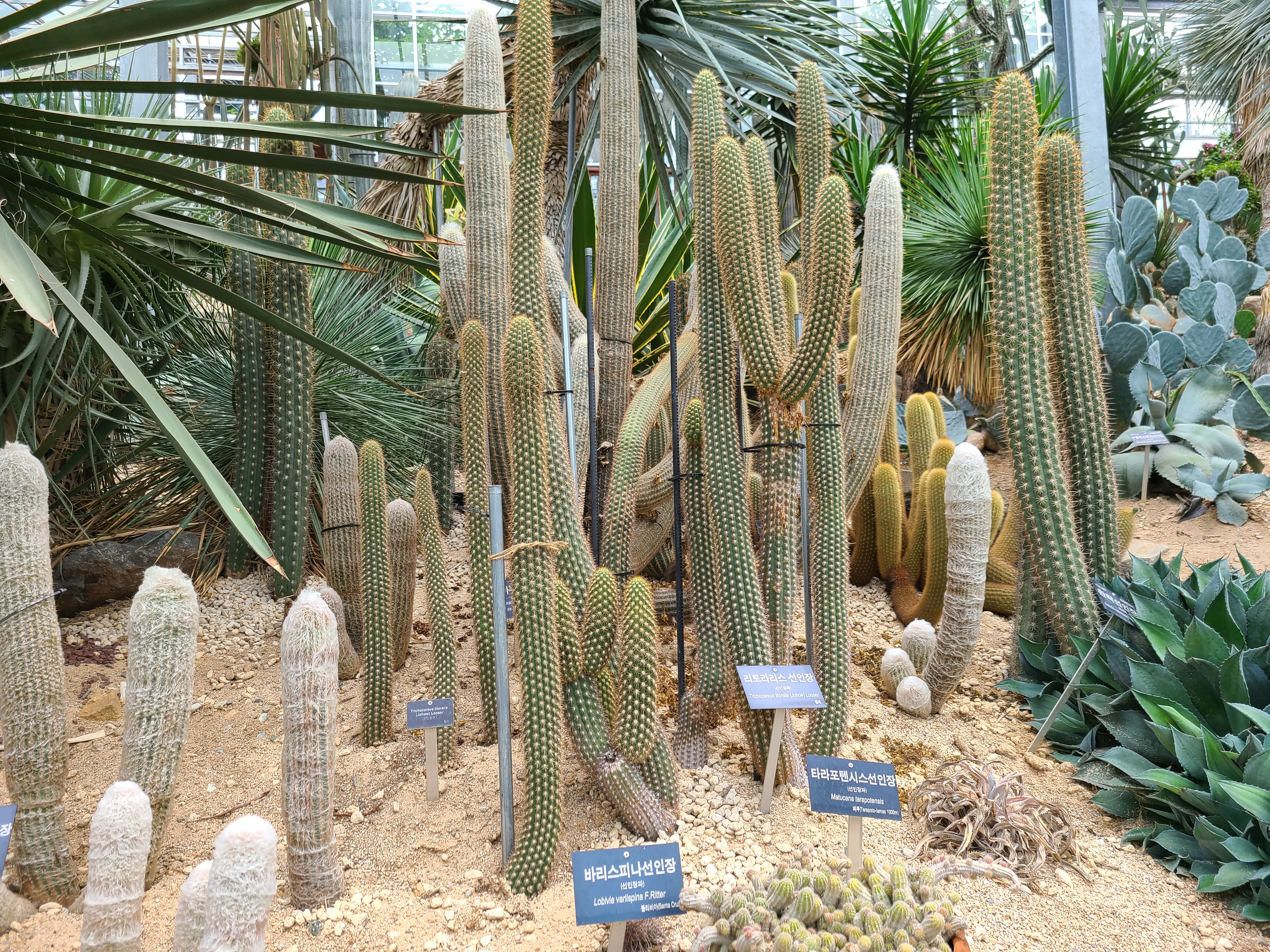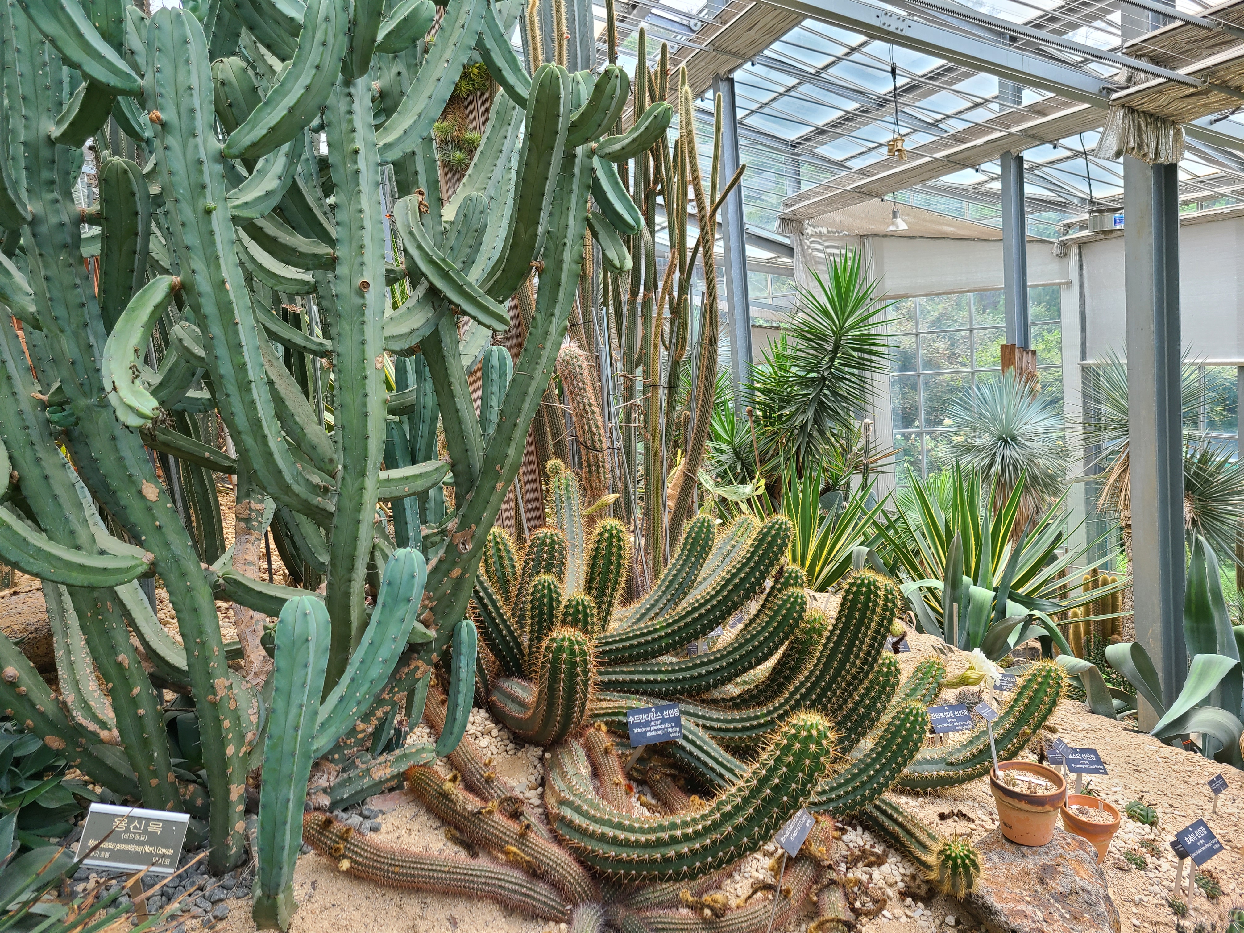 중남미 온실의 선인장과 식물