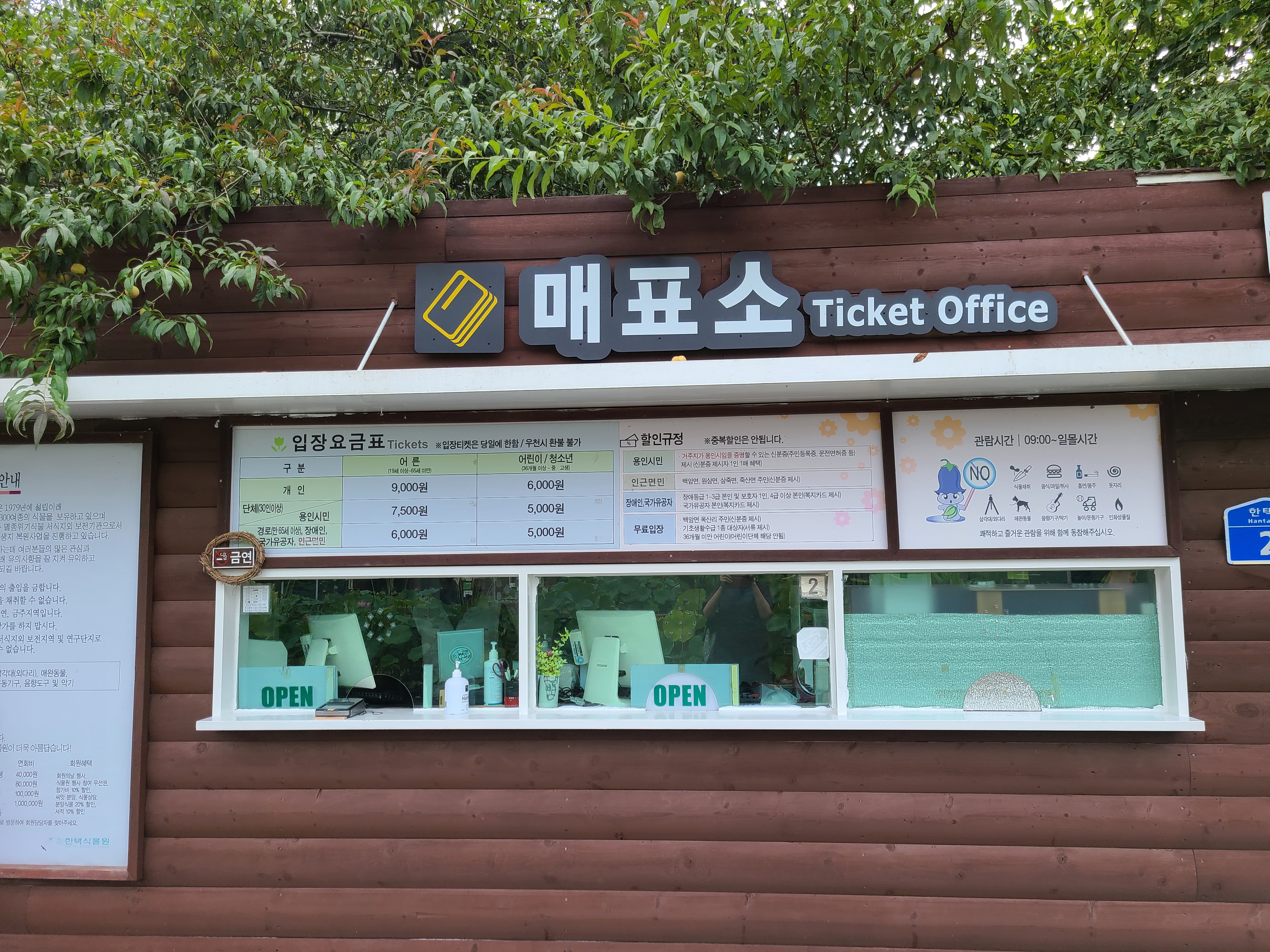 한택식물원 매표소에 갔는데 입장요금표를 보니 금액이 비싸다는 생각이 들었다.
