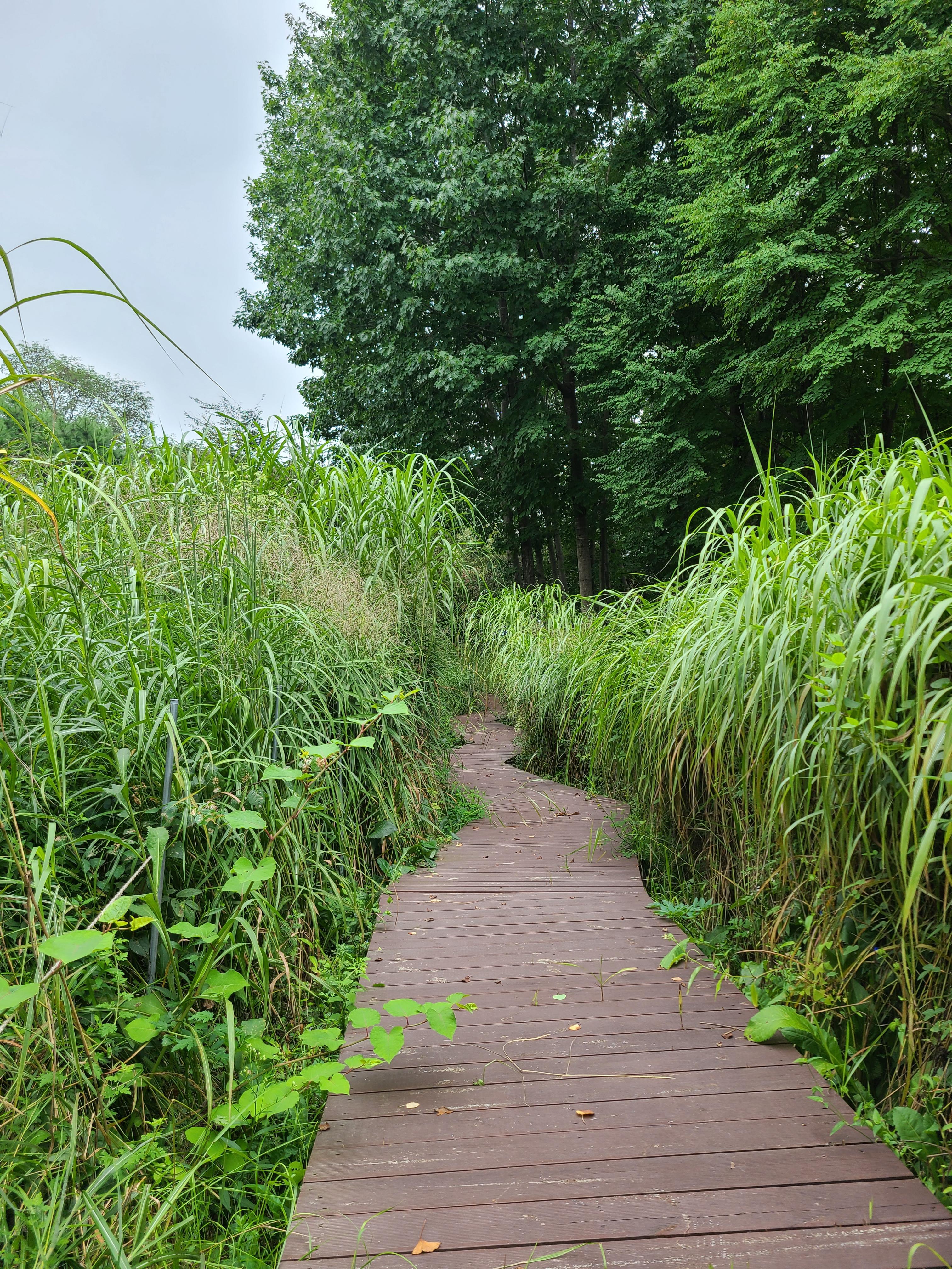 지난 주말 용인 원삼에 있는 용담저수지 맞은편에 있는 용담 생태습지원을 다시 찾았다. 그런데 가을장마로 갈대가 쓰러져 있고 풀이 무성하게 자라 걸음을 걷기에 너무 불편했다.