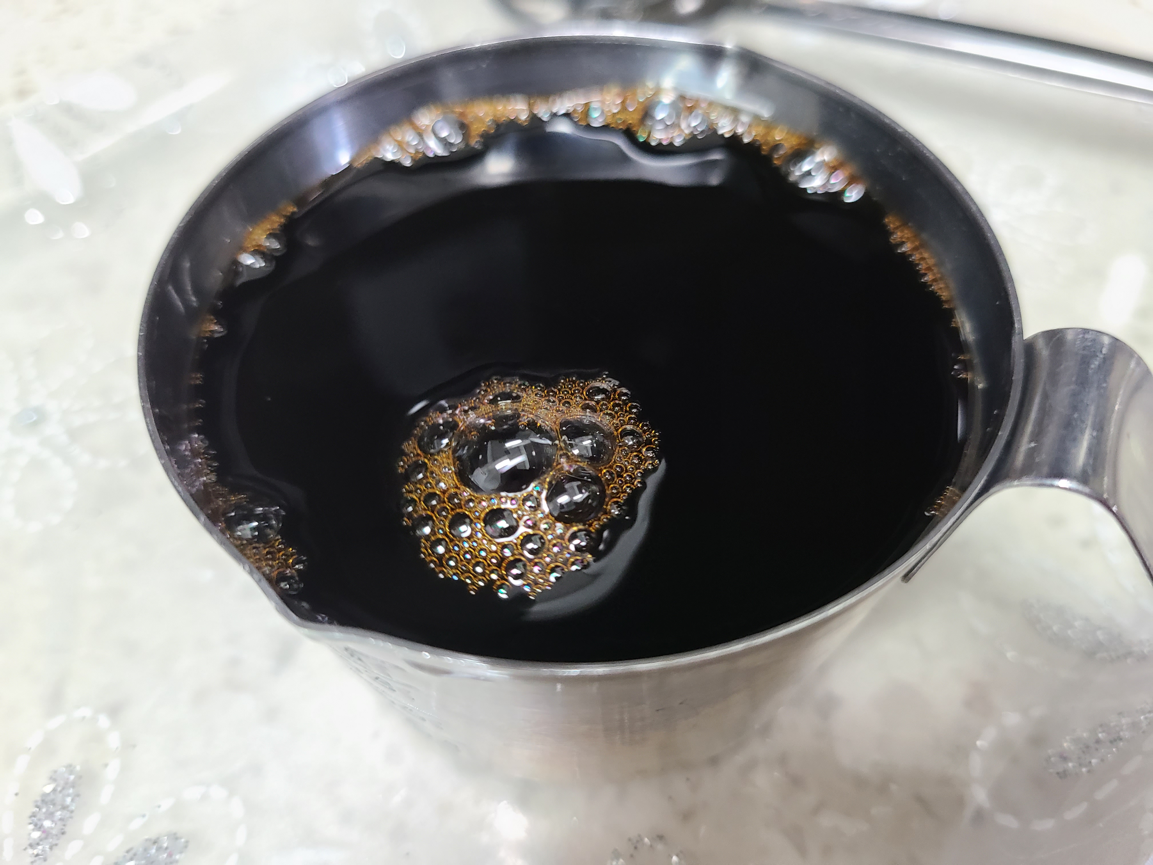 양파를 갈았더니 거품이 생겨 마치 라테 같다.
