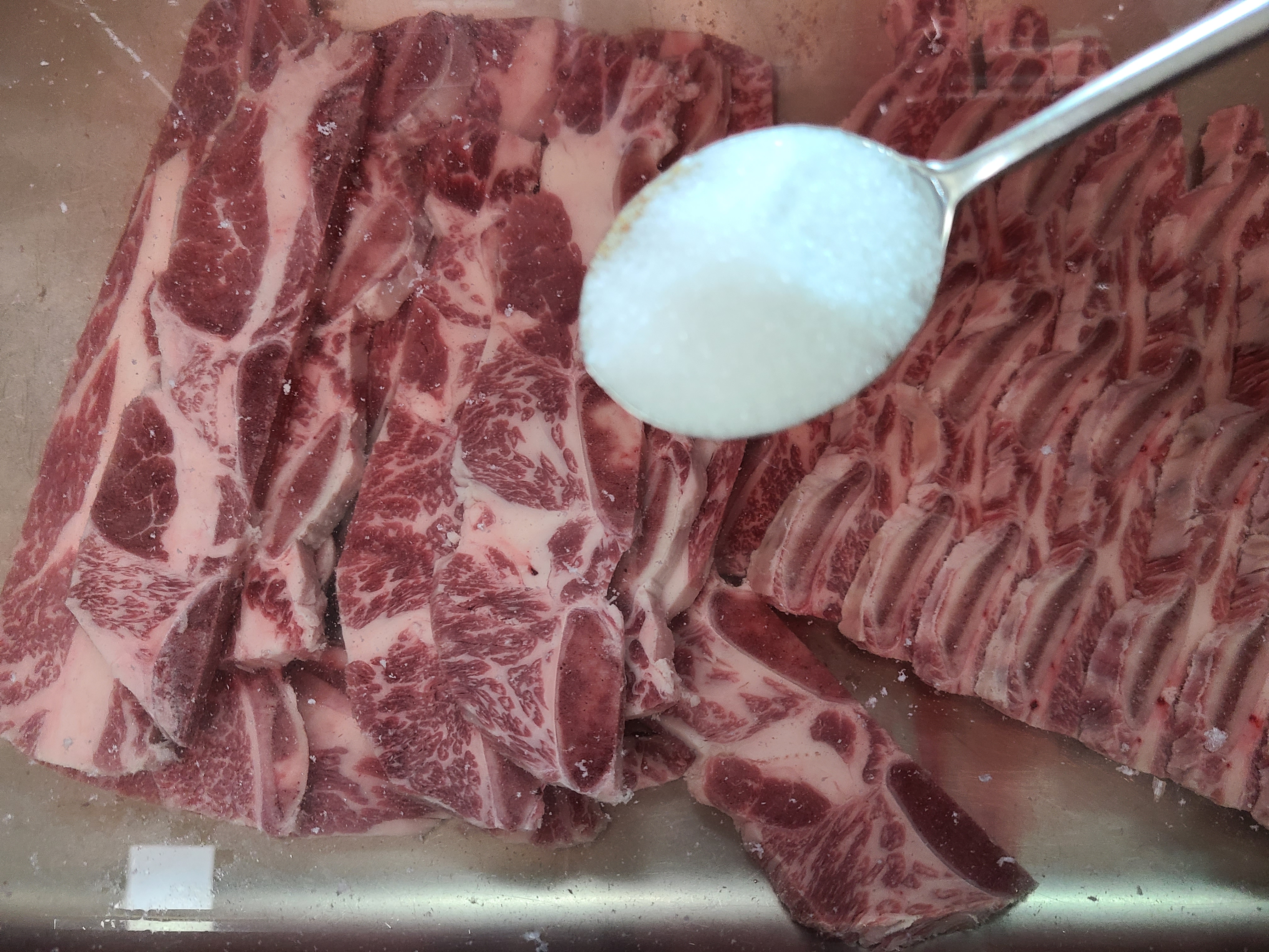 갈비를 씻으면서 숫자를 세어보았다. LA갈비 2.2kg에 갈비가 21개 들어 있었다.