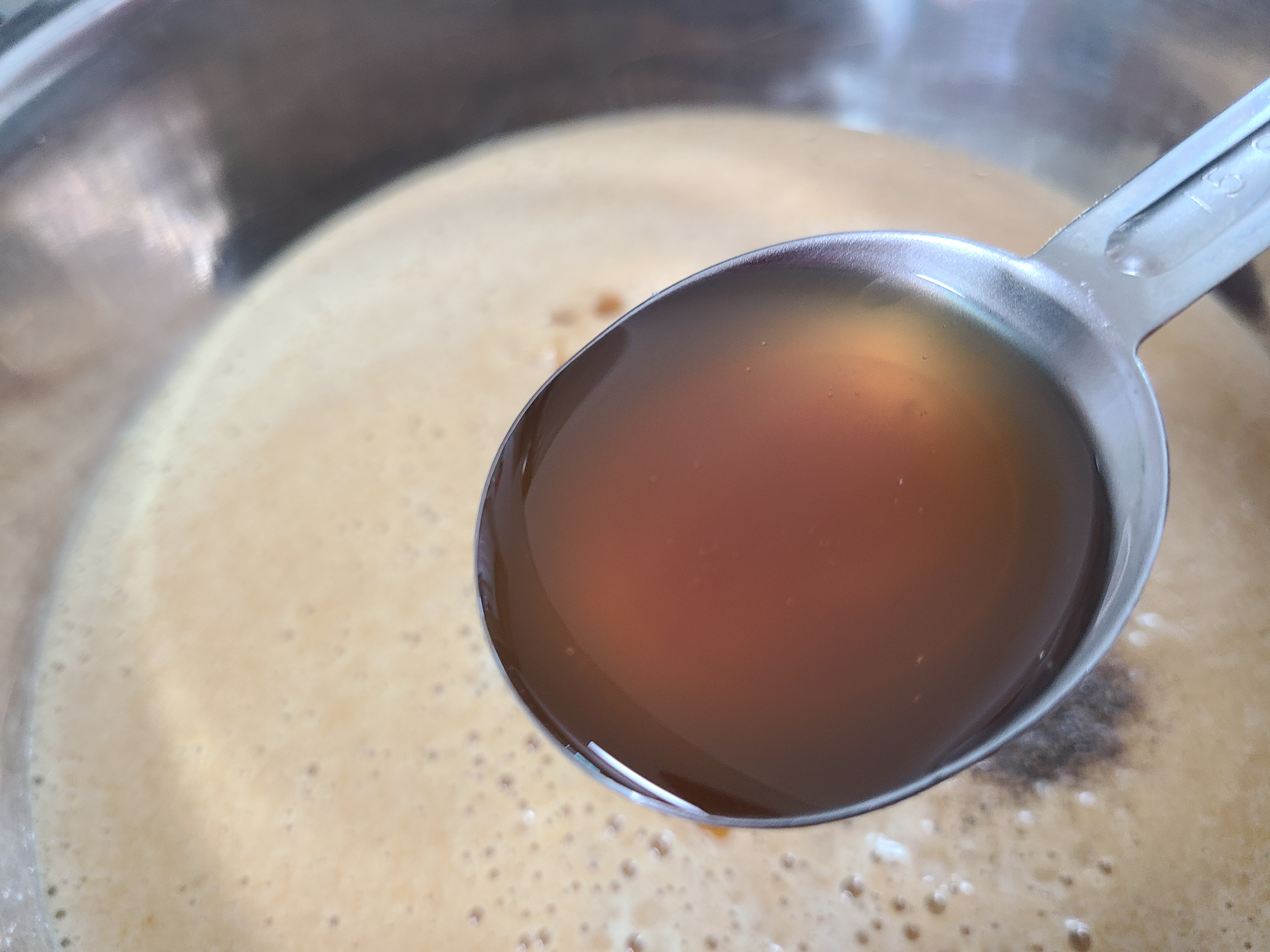4. 갈비 양념장을 넓은 그릇에 담은 후 간을 본다. 후 개인에 식성에 따라 가감하면 된다. 쇠갈비 양념은 짜지 않게 하는 것이 좋다. 마무리로 참기름을 넣어주면 된다.