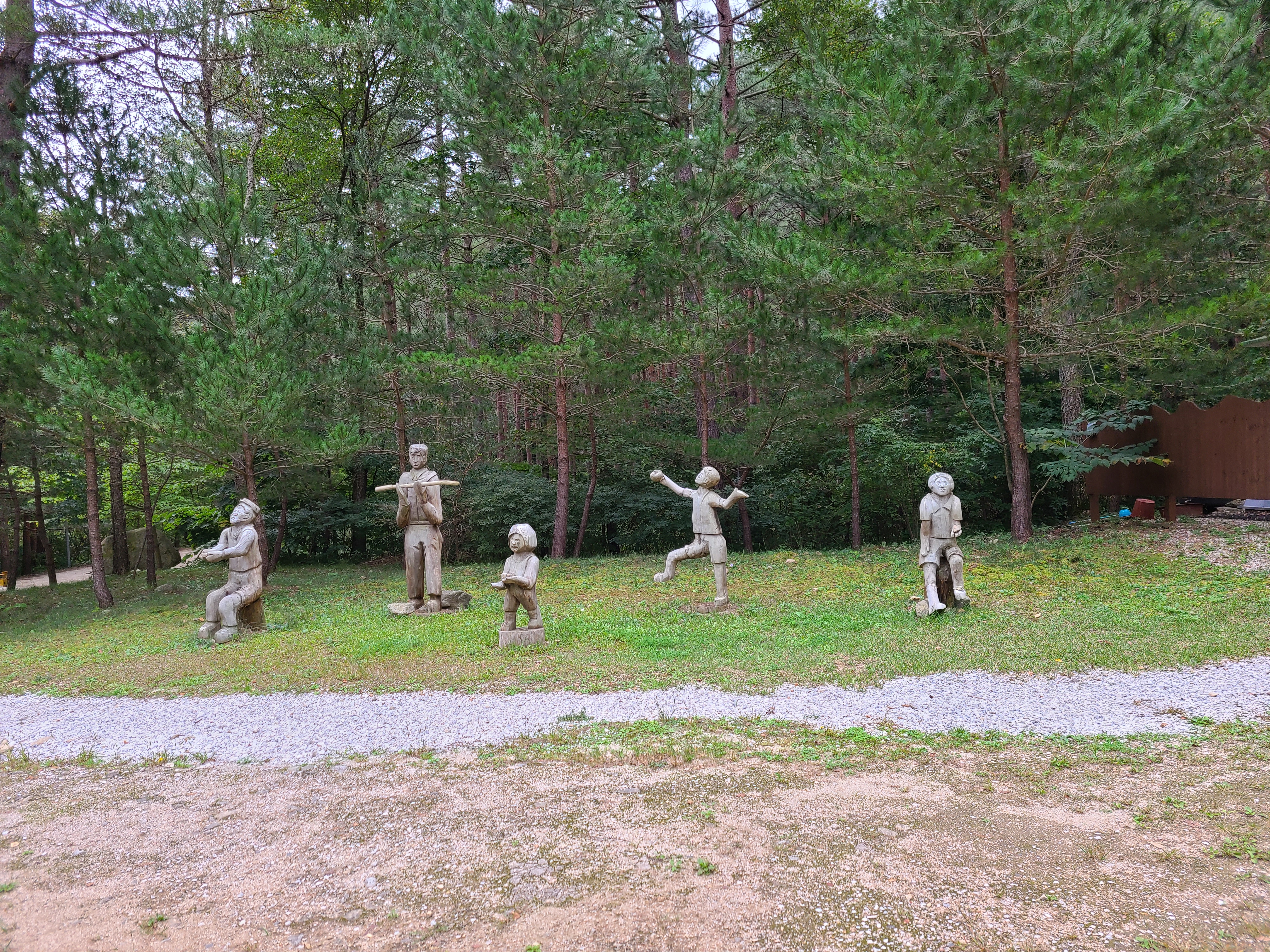 금강송 군락지에서 내려야 계곡에 놓인 다리를 건너지 산딸나무 열매를 따먹던 곳이 나왔다. 다시 금강송 숲길을 25분 정도 걸어서 내려오니 송락쉼터가 나온다.
