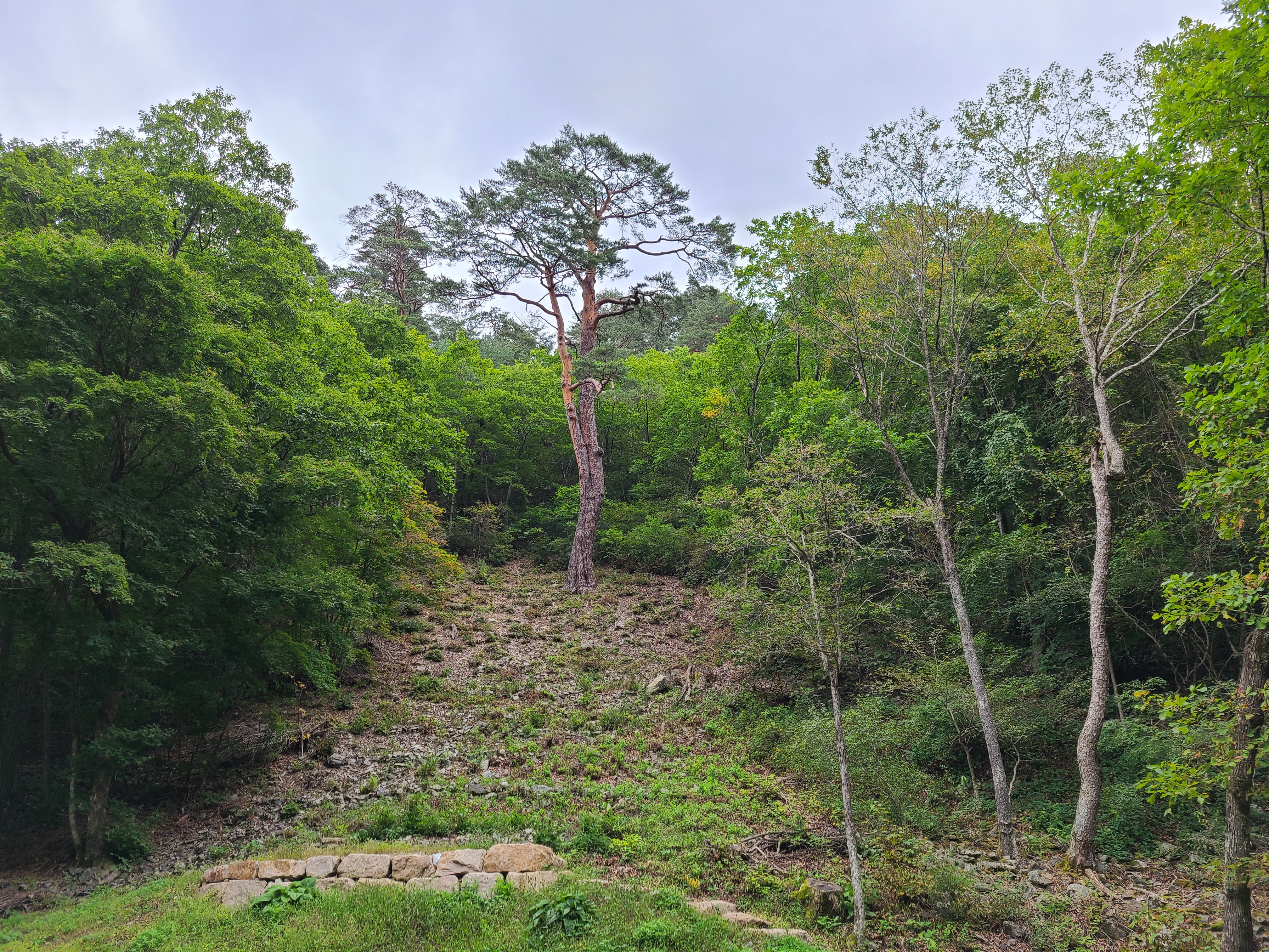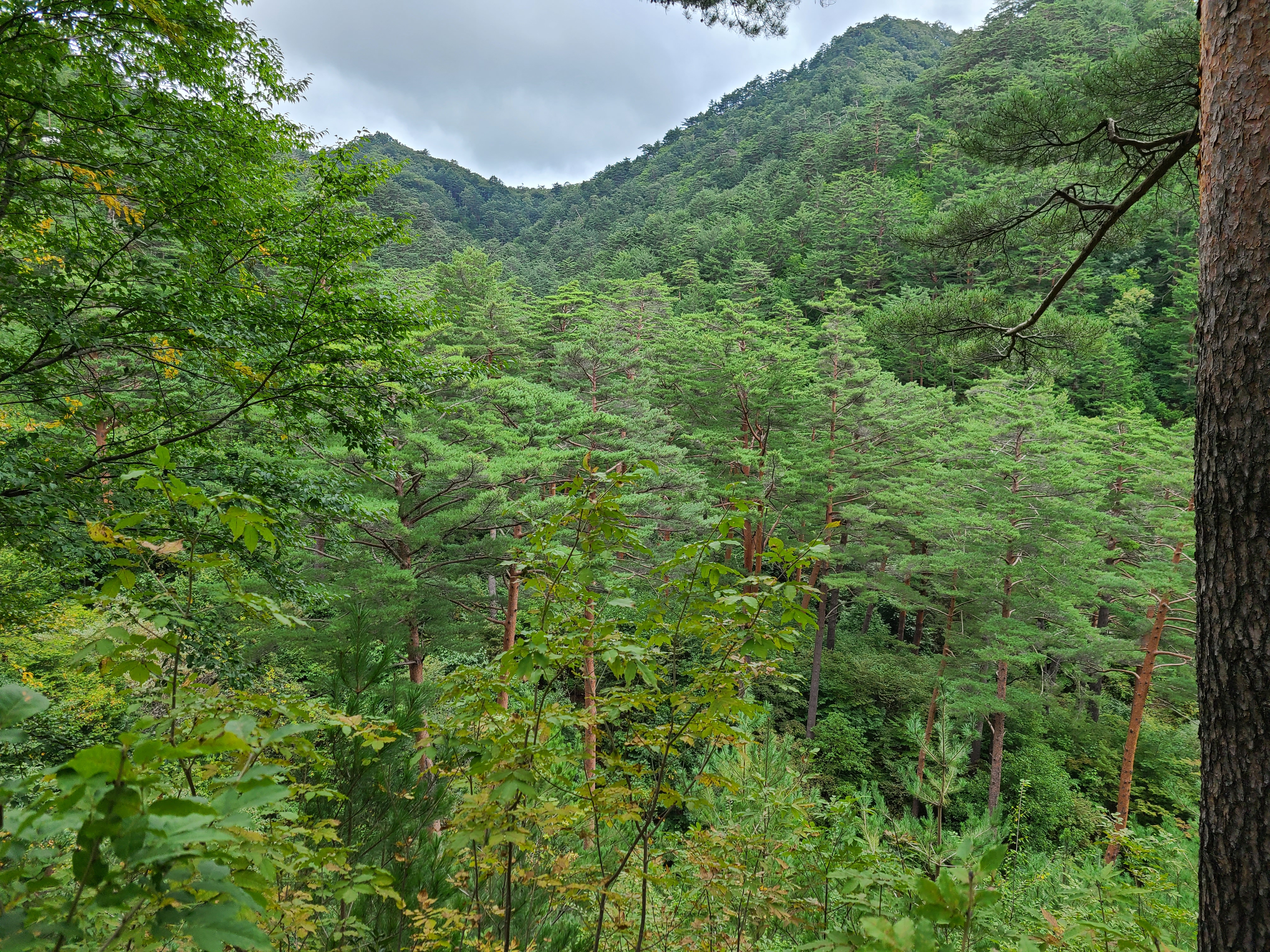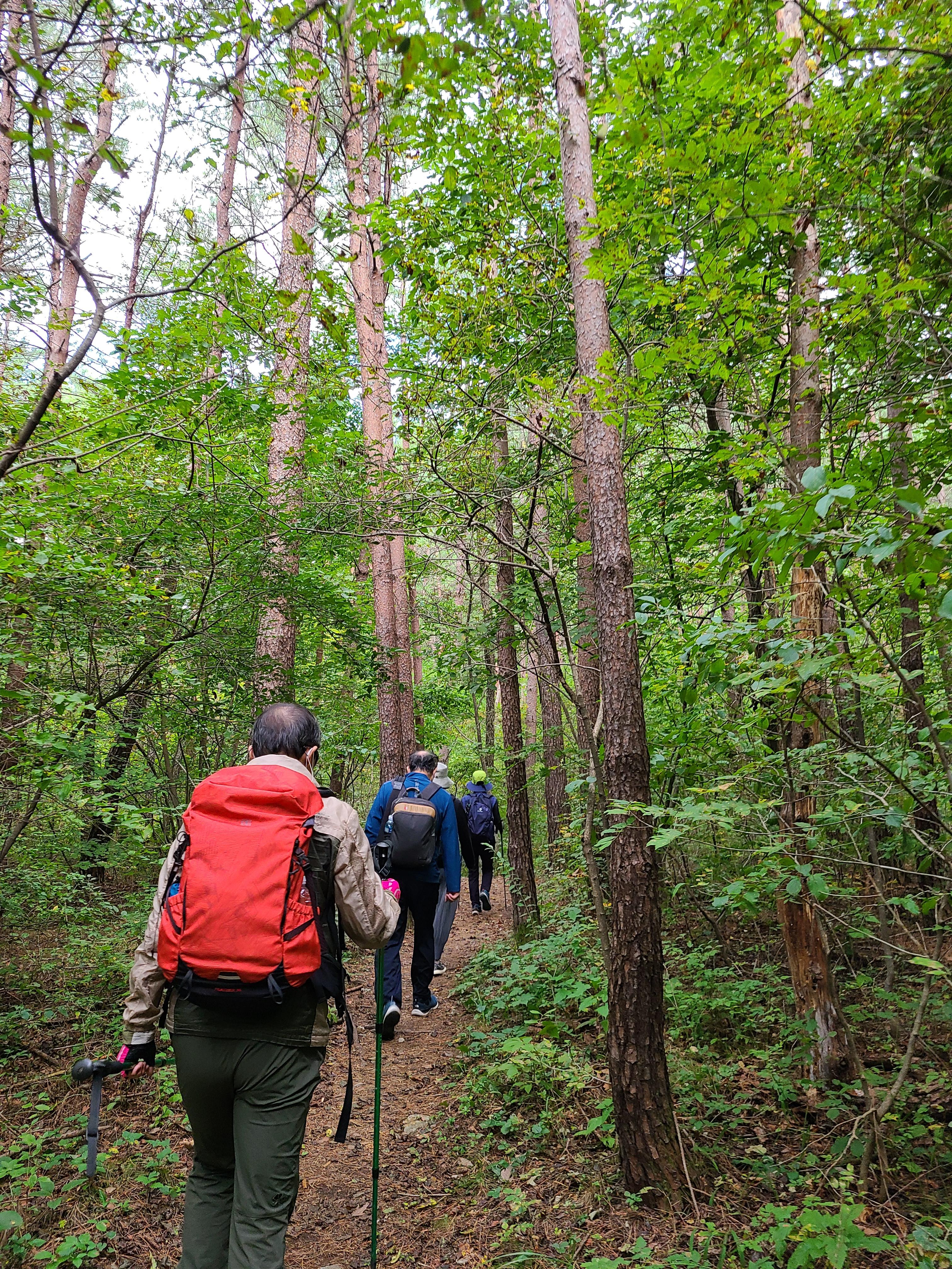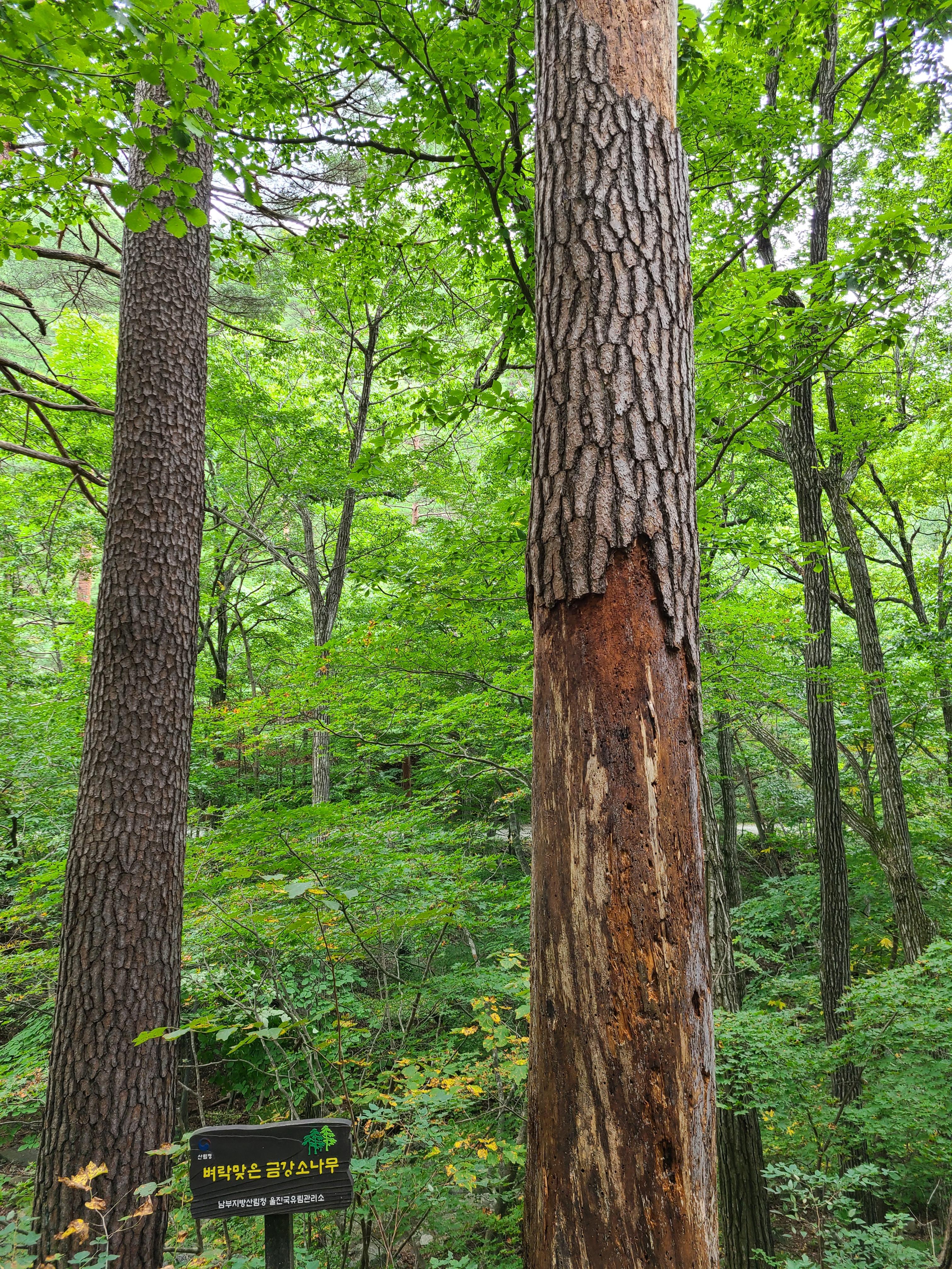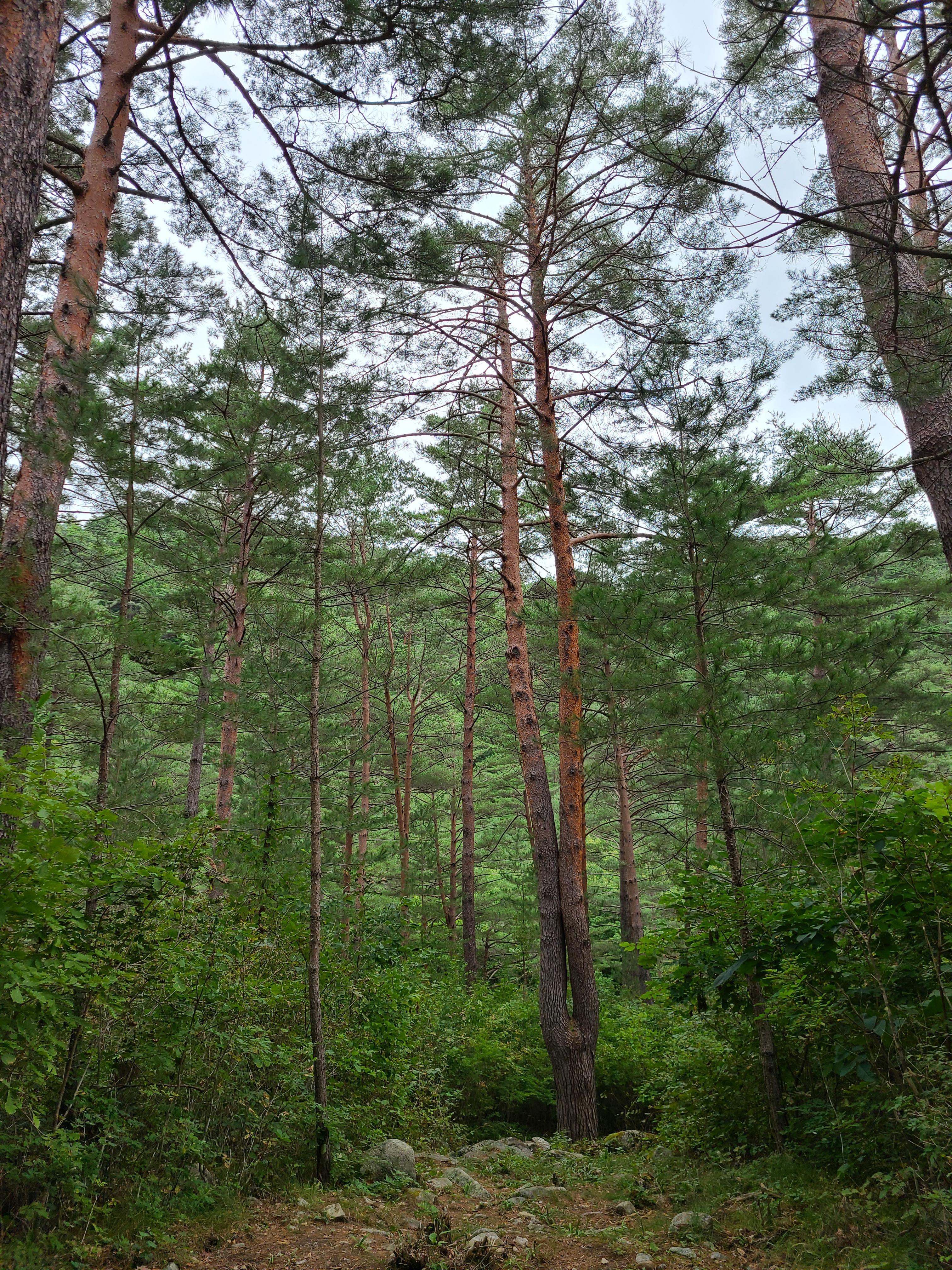 계곡을 건너고 좁은 숲길을 걷는데 양쪽으로 금강소나무가 하늘을 향해 쭉쭉 뻗어있다.