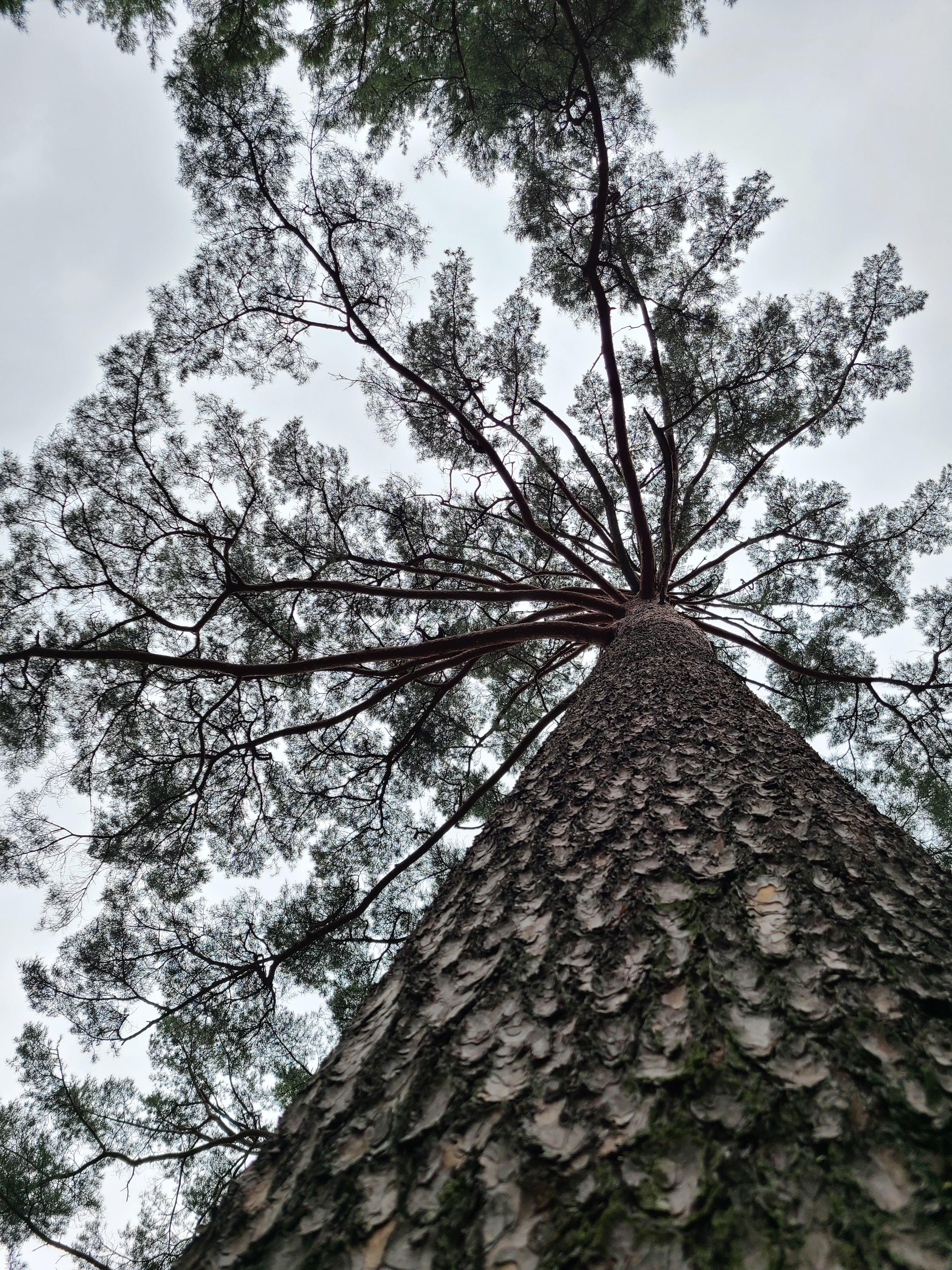 미인송을 두 팔로 감싸 안고 올려다 보니 숲 해설가의 설명대로 가지가 부챗살처럼 펼쳐져 있다.