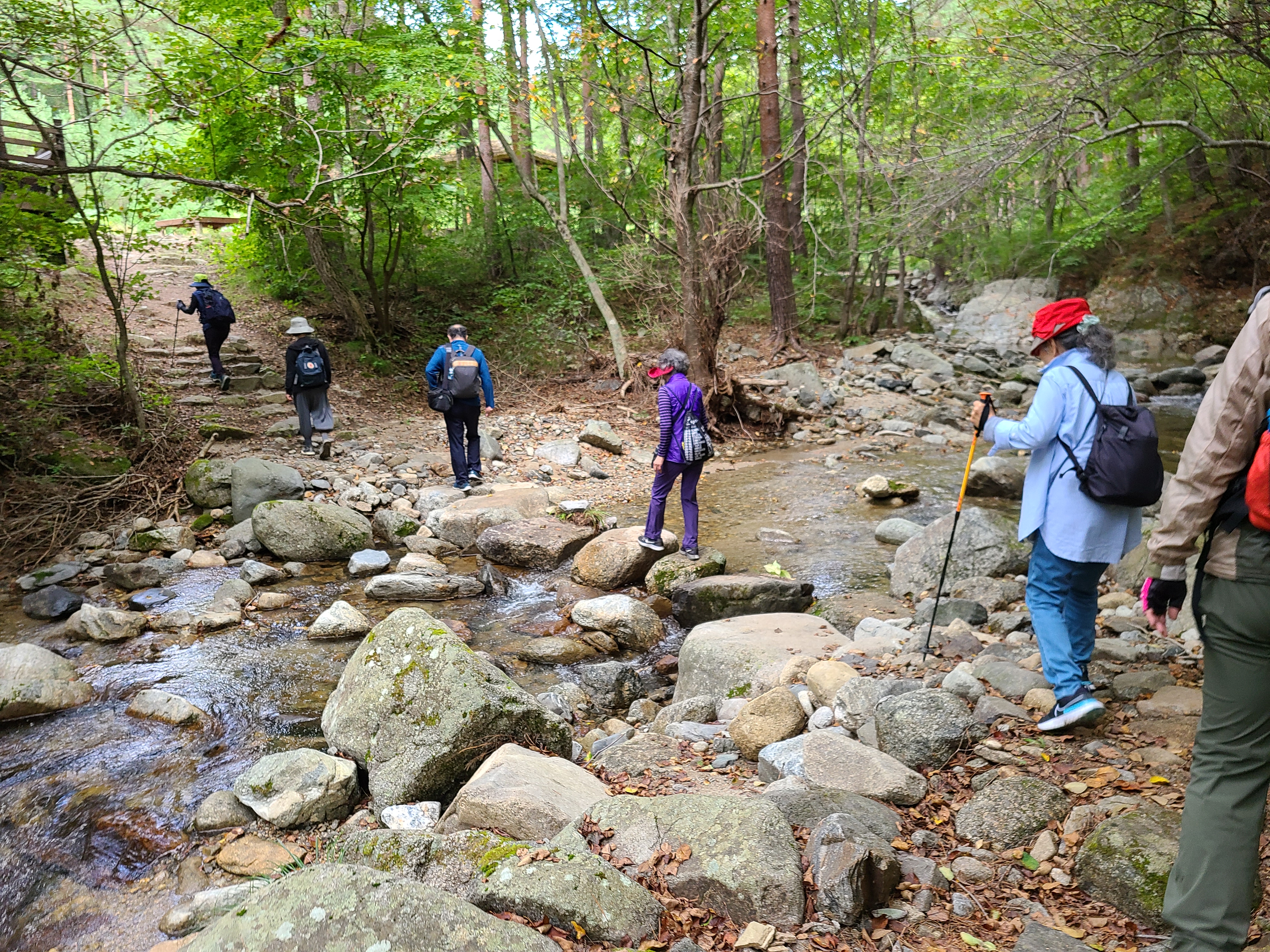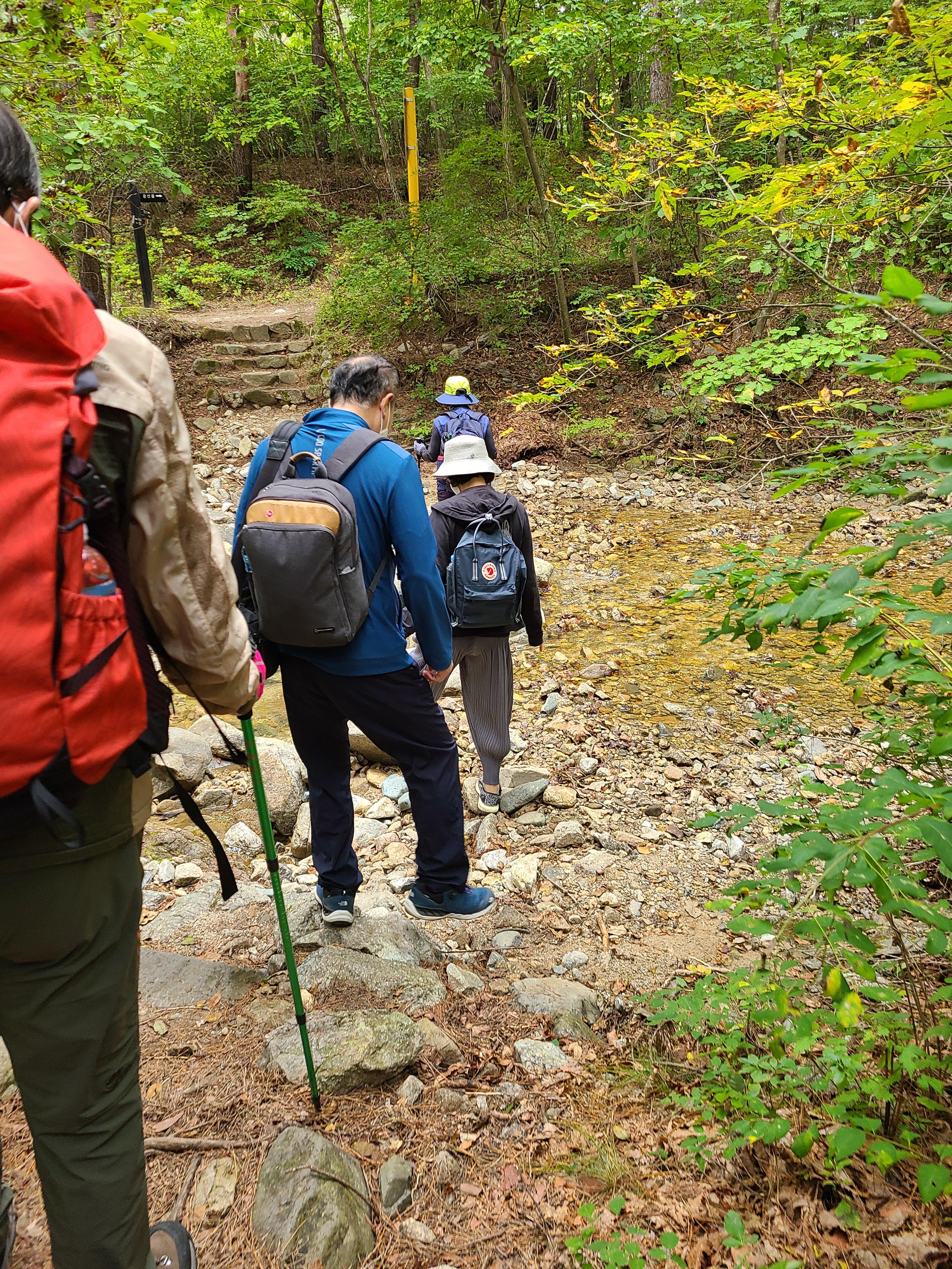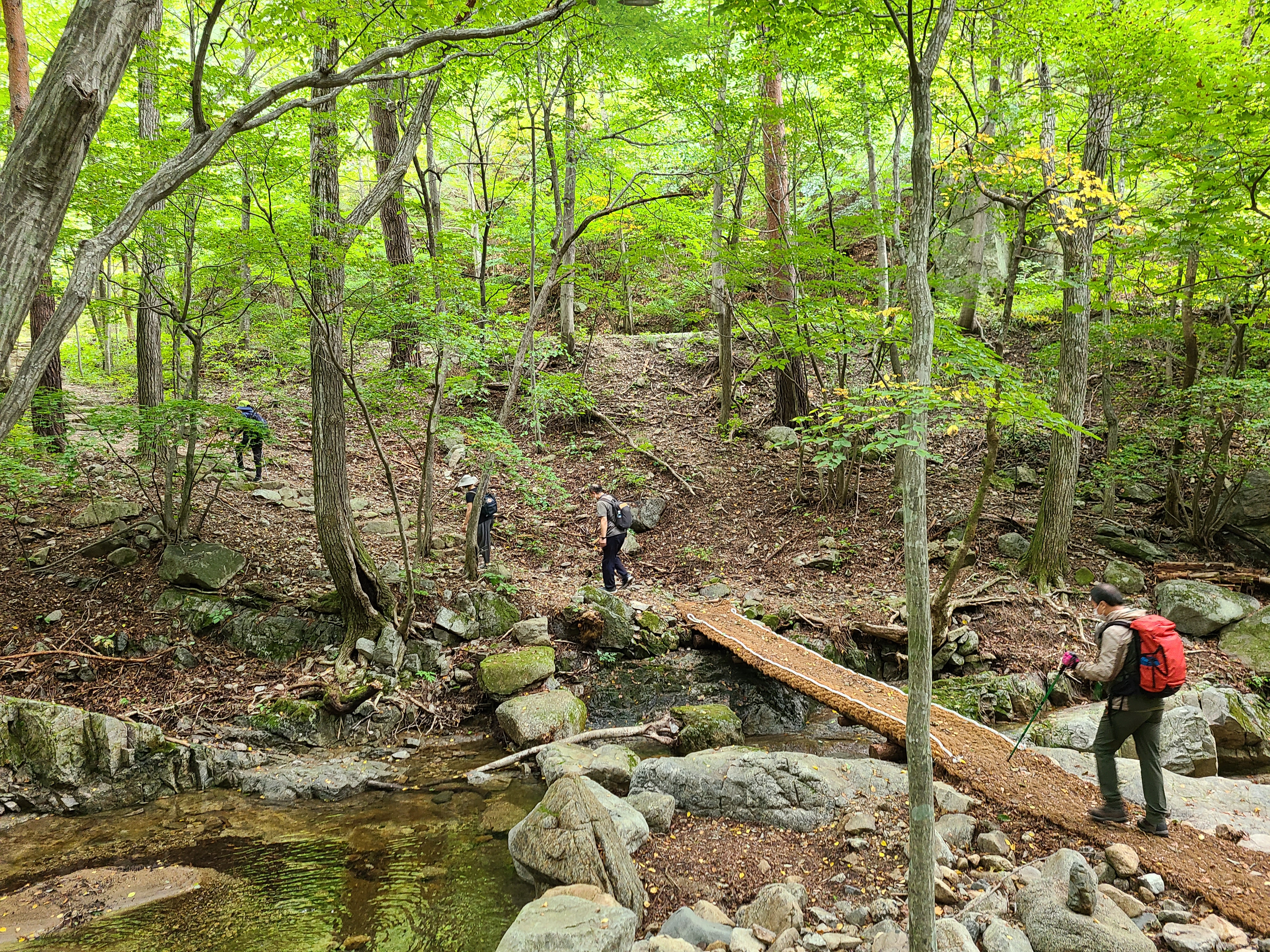 계곡과 숲길을 건너 임도로 접어들었다.