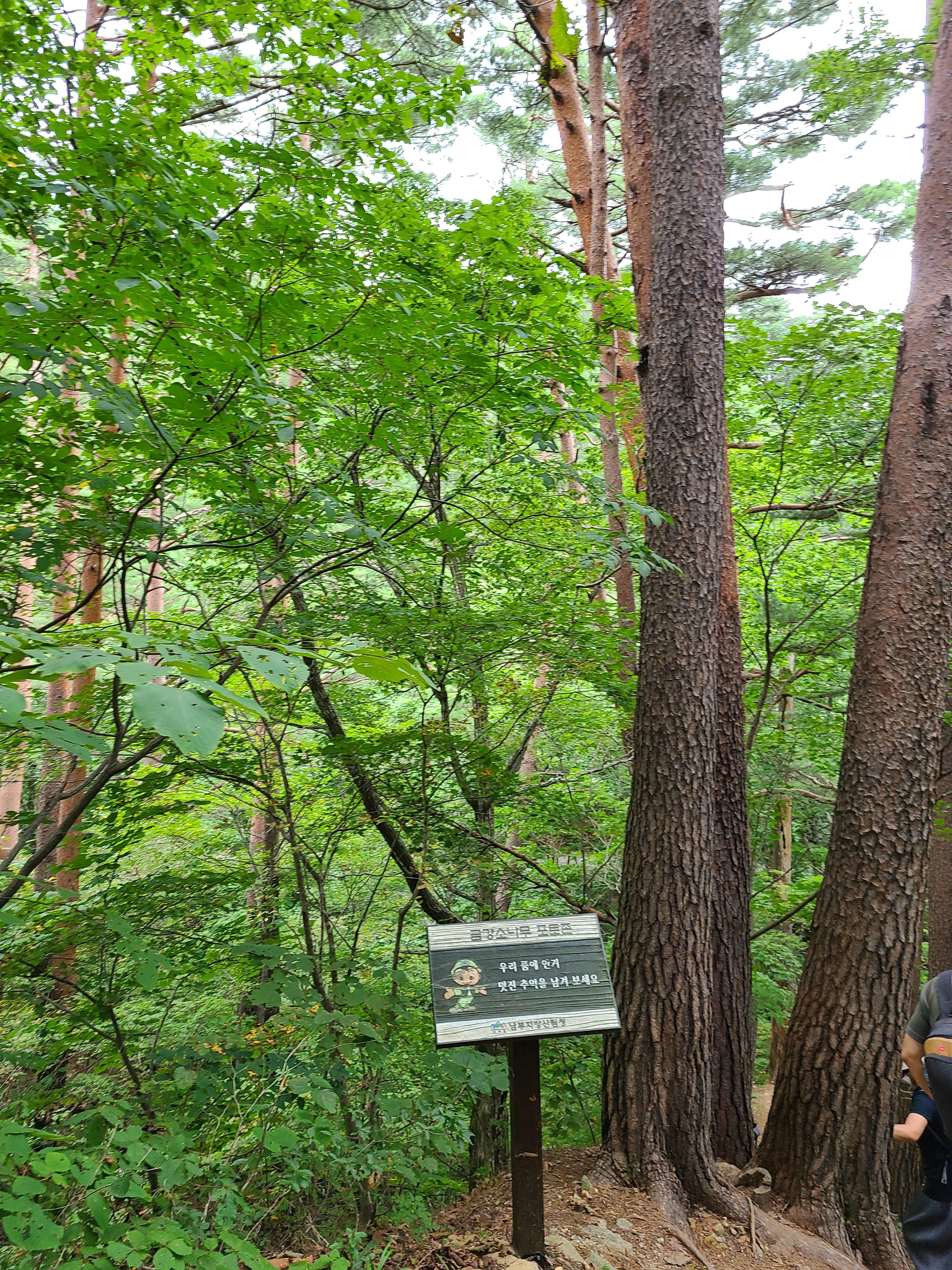 금강소나무숲길을 걸어 내려오는데 2시간 10분 정도가 소요되었다. 중간에 숲해설가의 설명을 들어가며 걸었고 길이 험하지 않아 힘들지가 않았다.