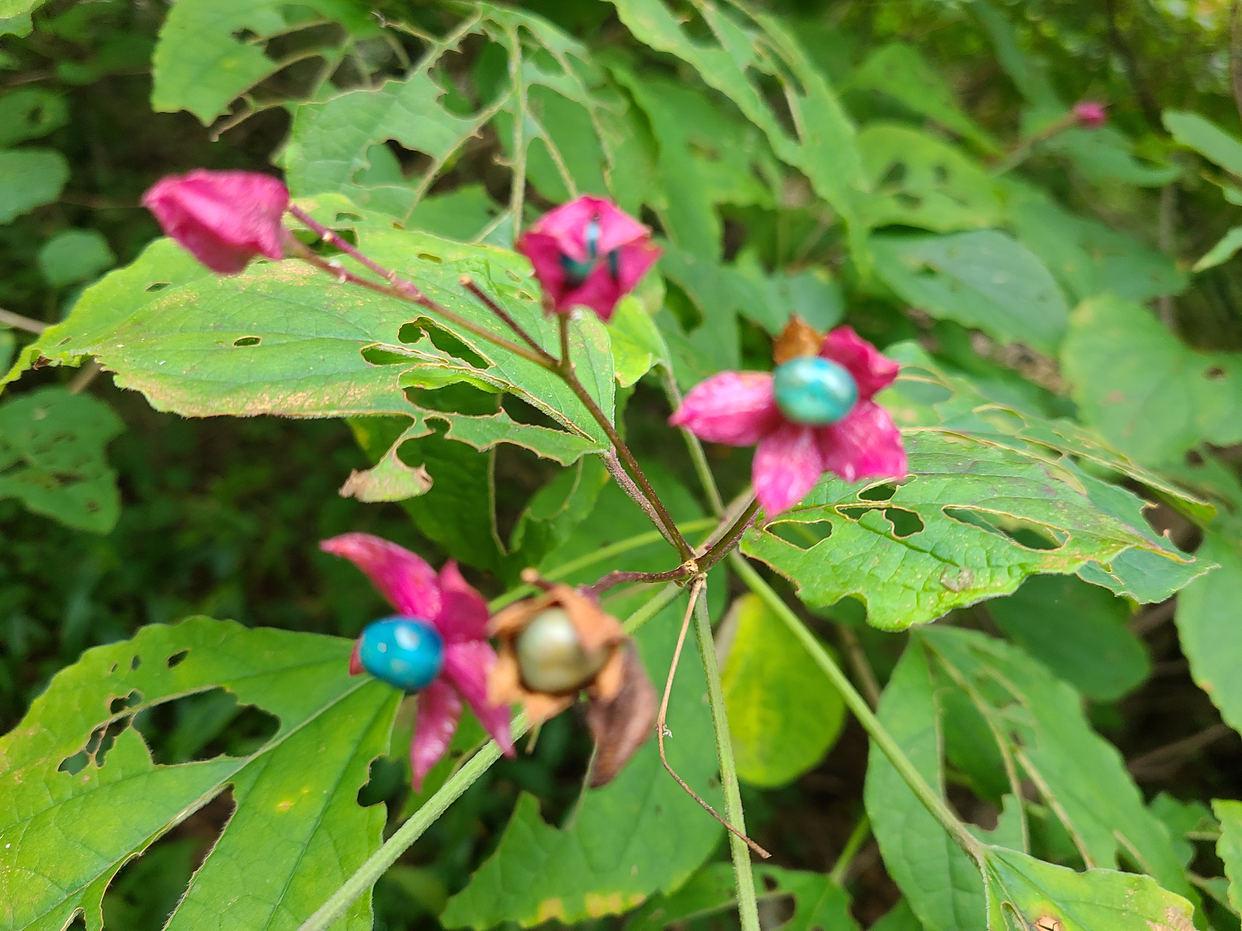 6월 말에 하얗게 피어있던 산딸나무 꽃이 떨어진 자리에 열매가 빨갛게 익어가고 있다. 숲해설가의 안내로 빨갛게 익은 열매를 따서 맛을 보았는데 먹을 만했다.