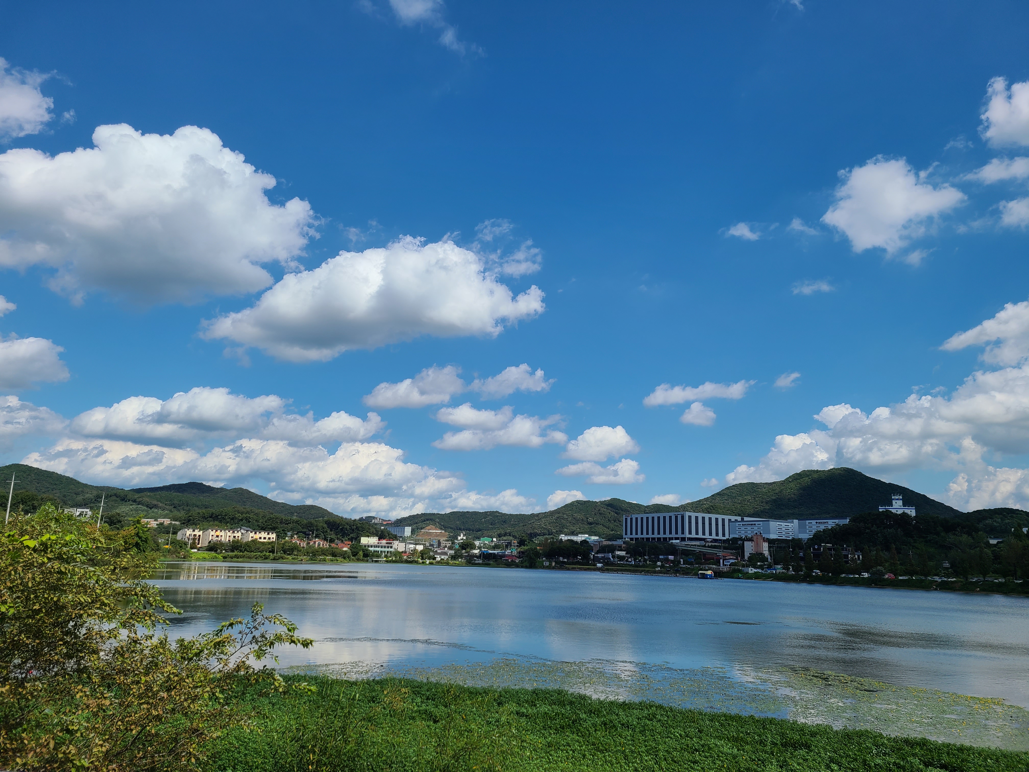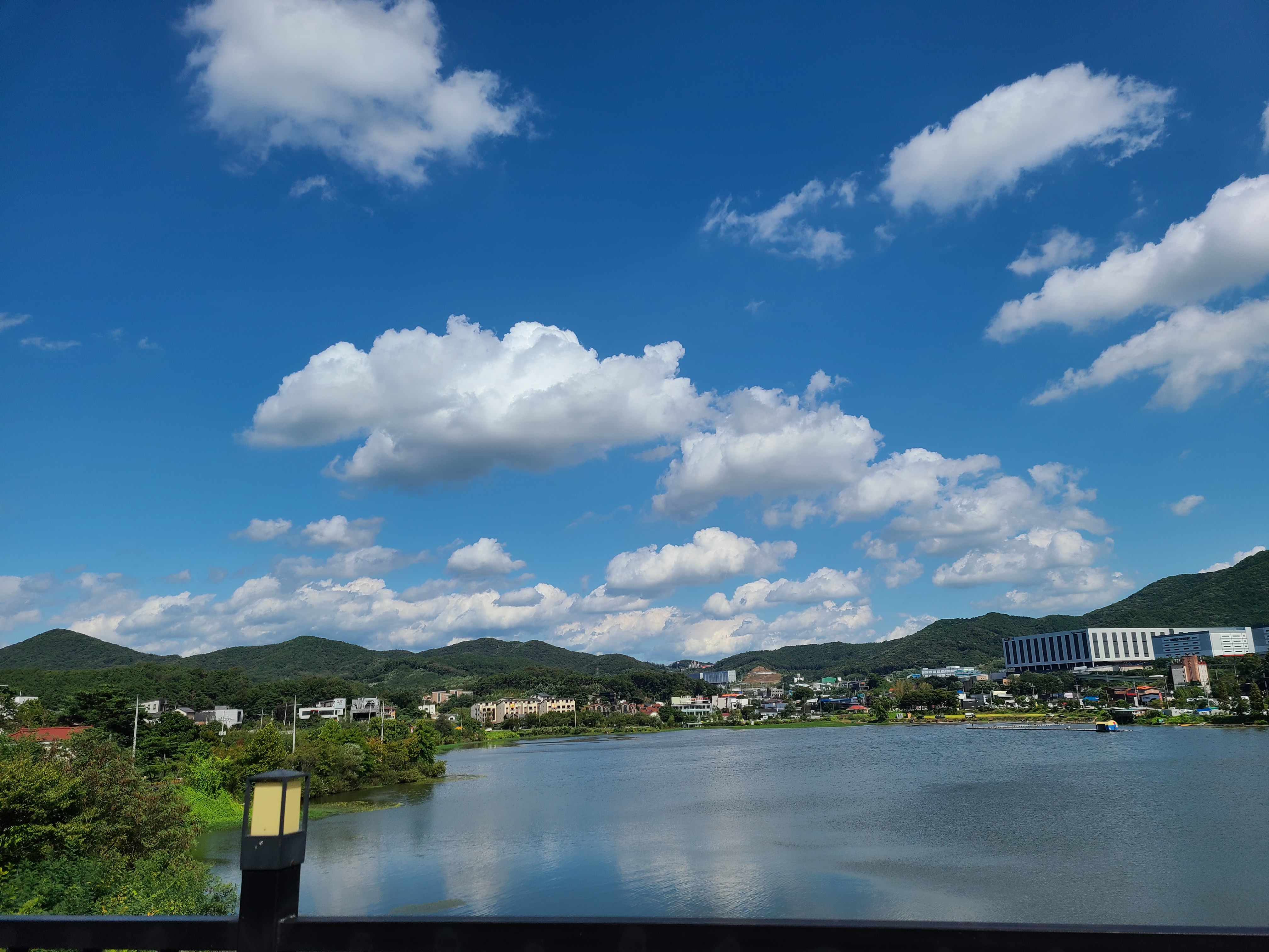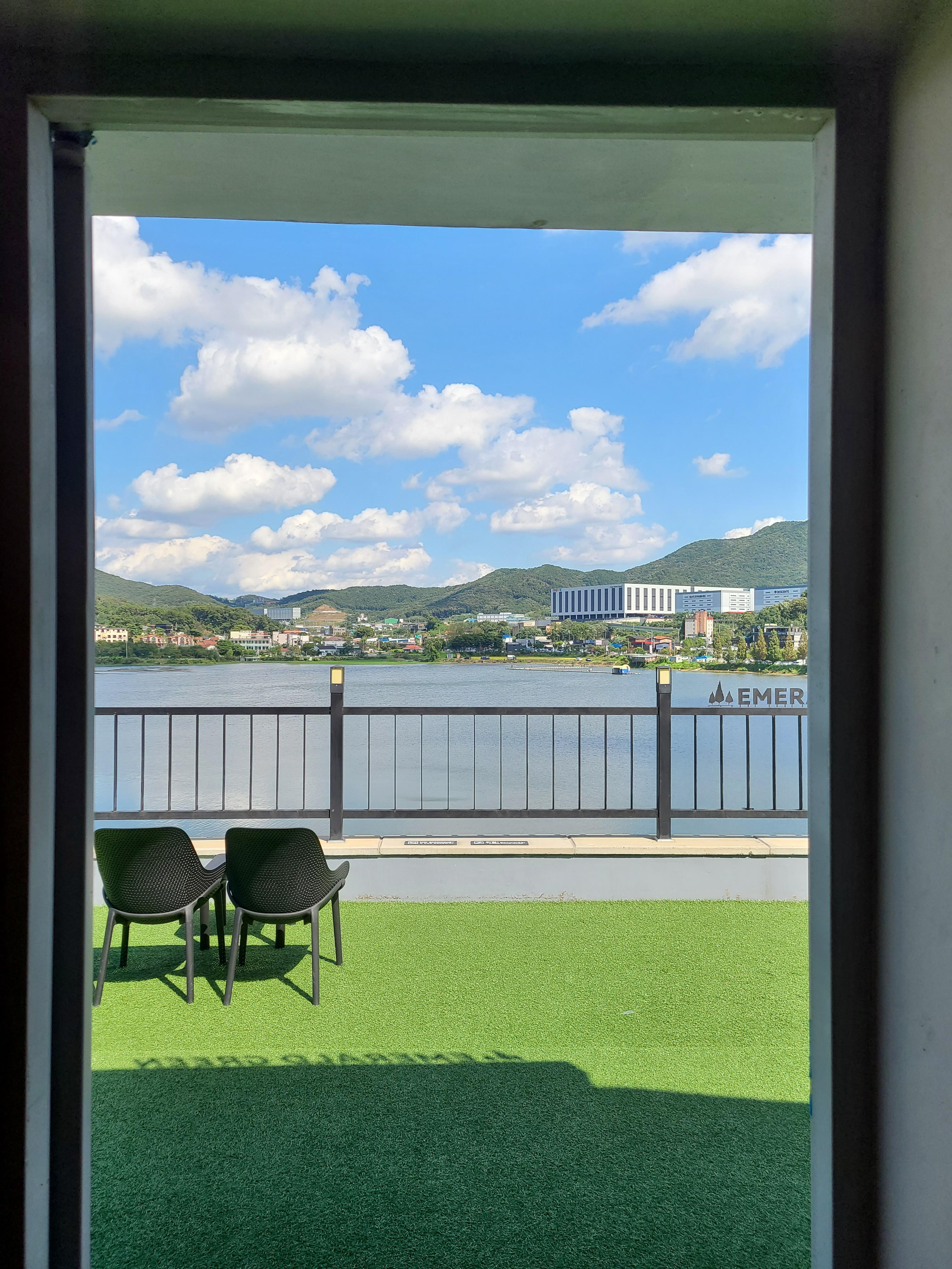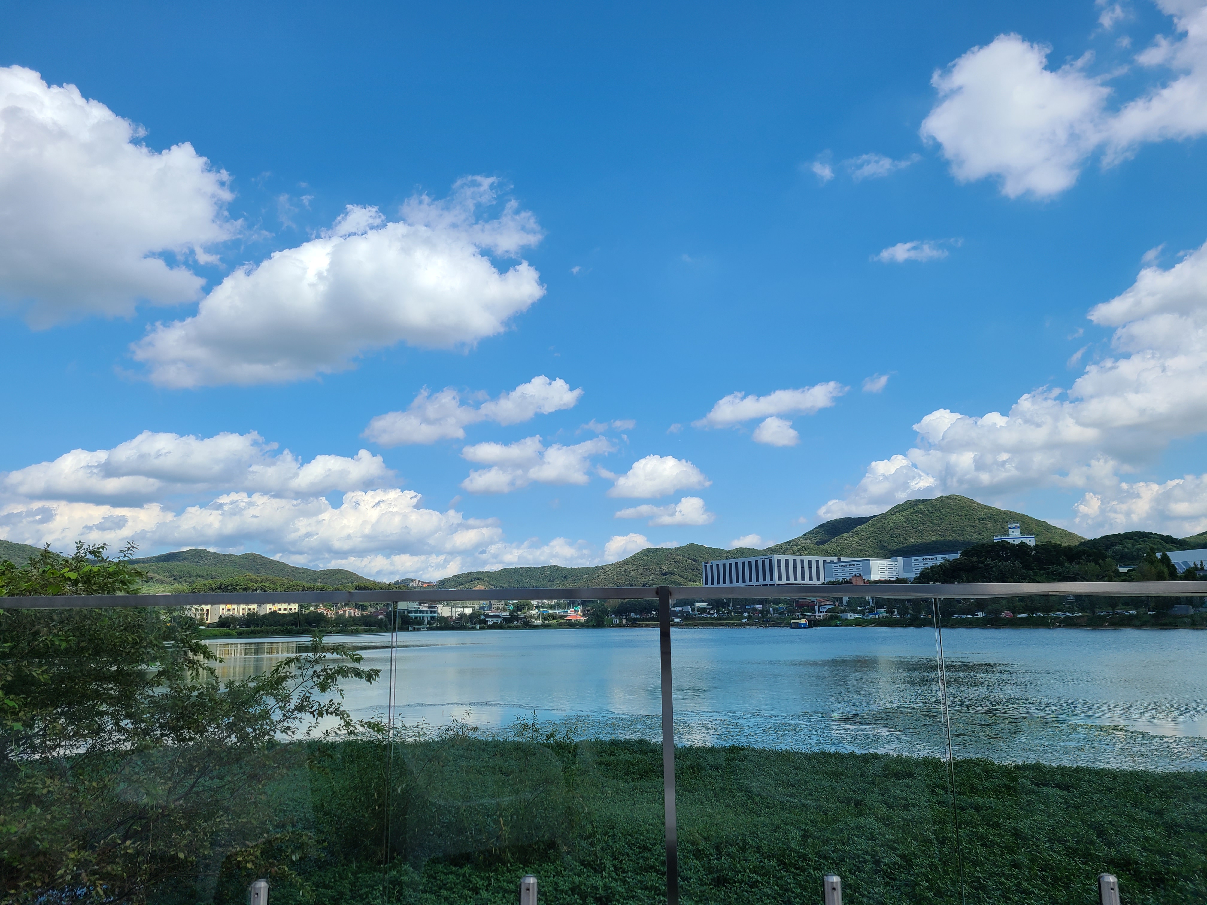 와~ 2층에서 내려다보는 하늘과 저수지의 모습이 너무 아름답다.