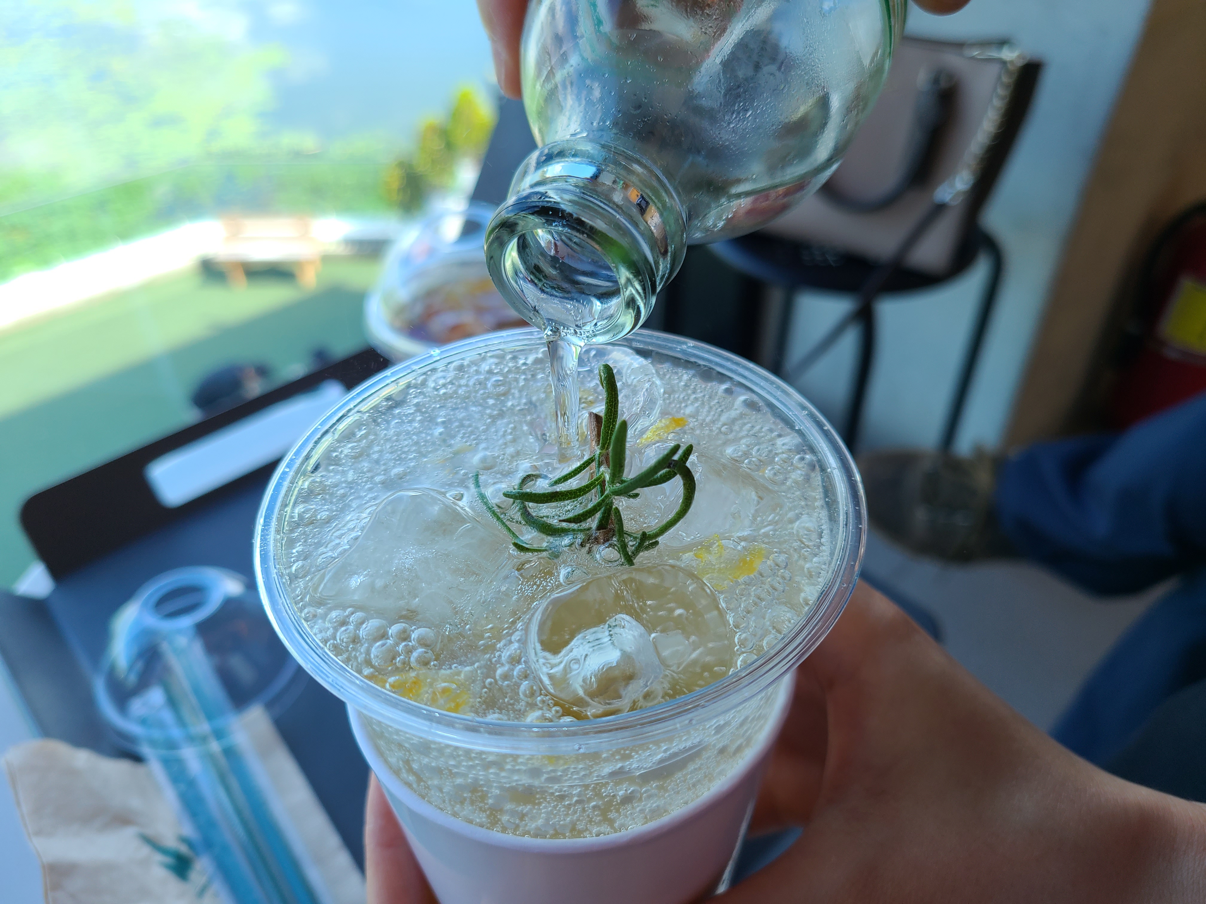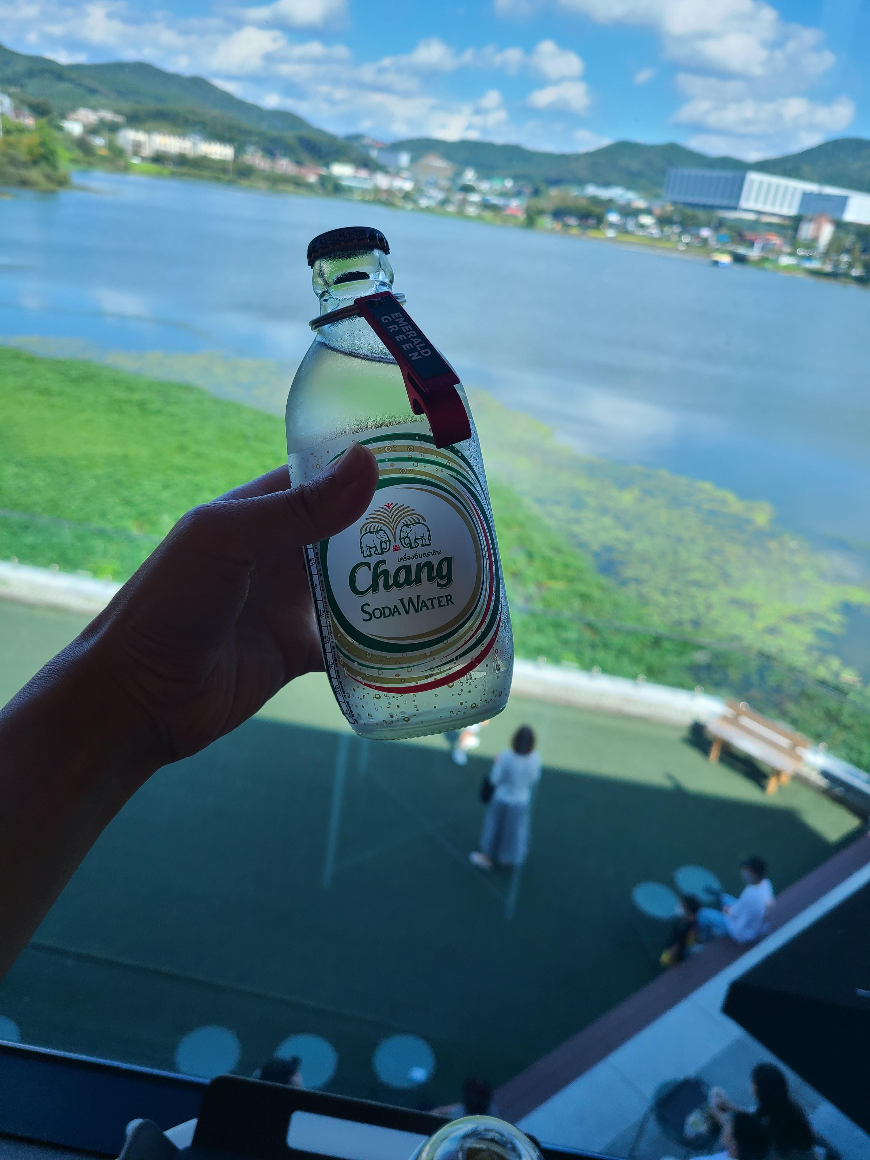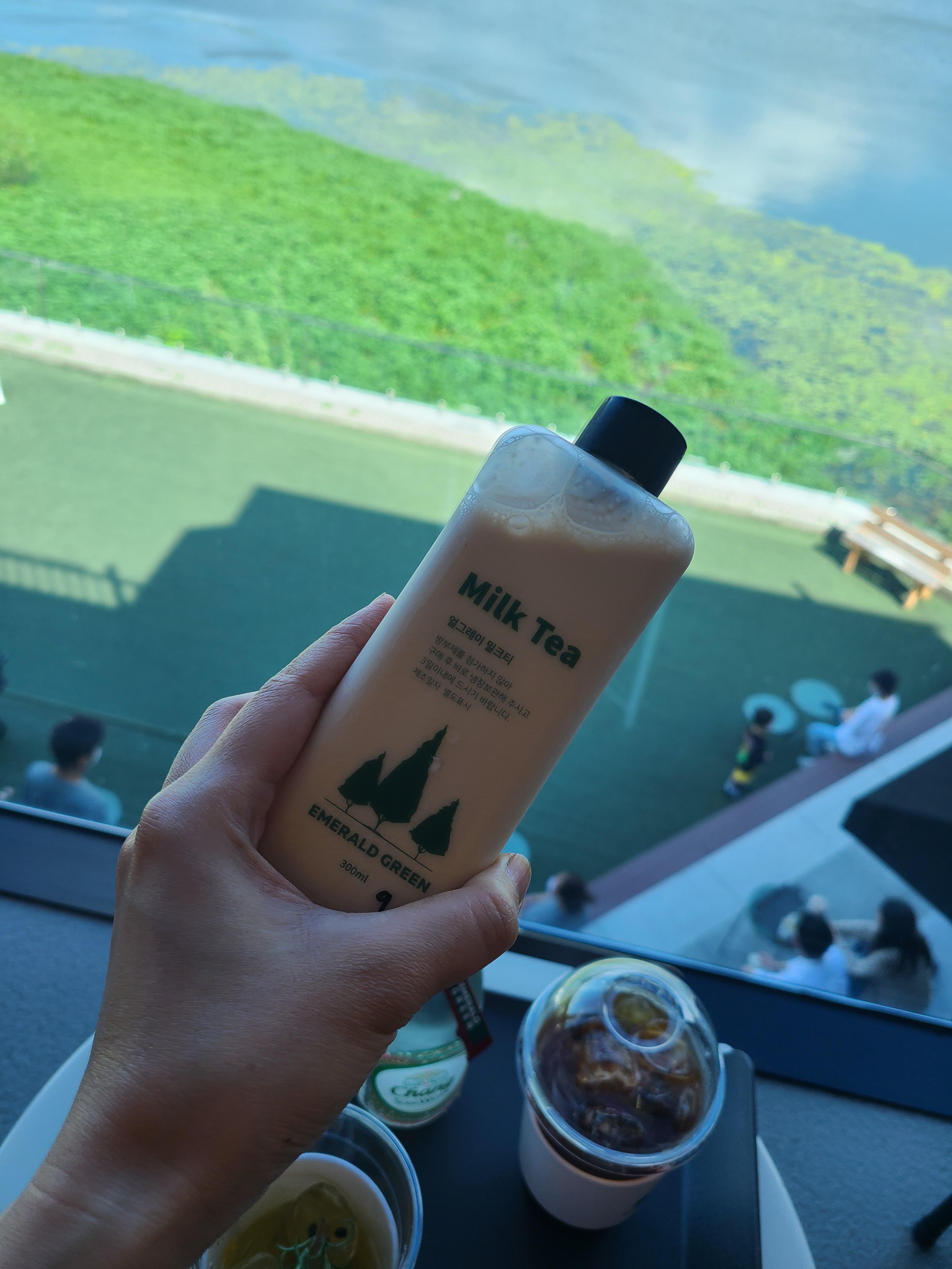 주문한 음료가 나왔는데 아이스 아메리카노를 제외하고는 밀크티와 탄산수가 병에 담긴 채 나왔다.
