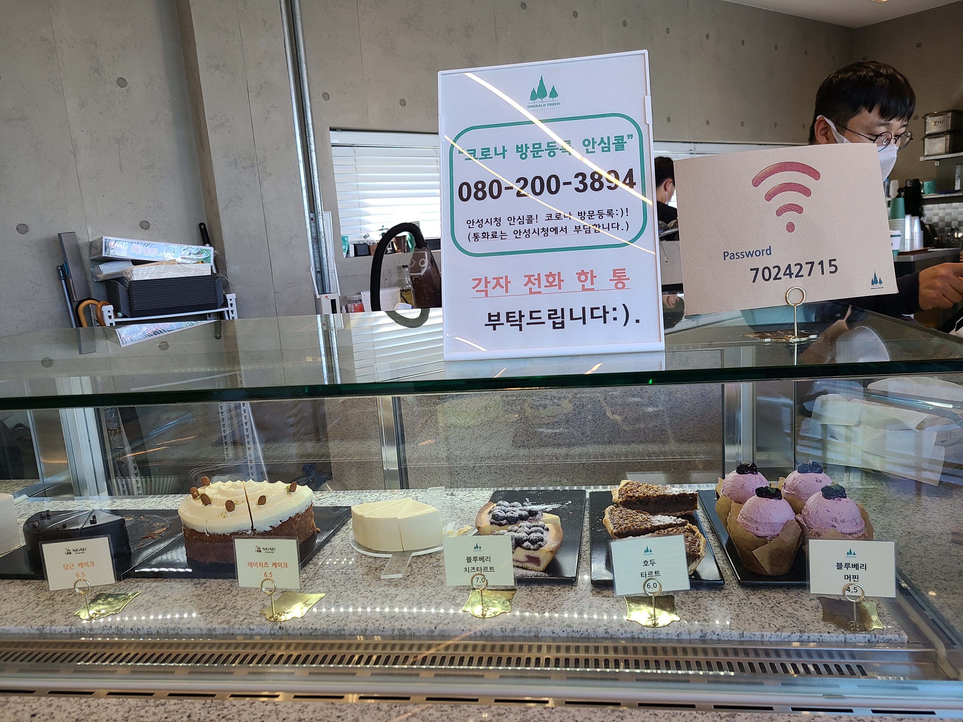 뷰가 좋은 카페여서 인지 가격이 착한 편은 아닌 듯하다. 코로나 방문등록 안심콜을 먼저 한 후 디저트를 돌아보았다.