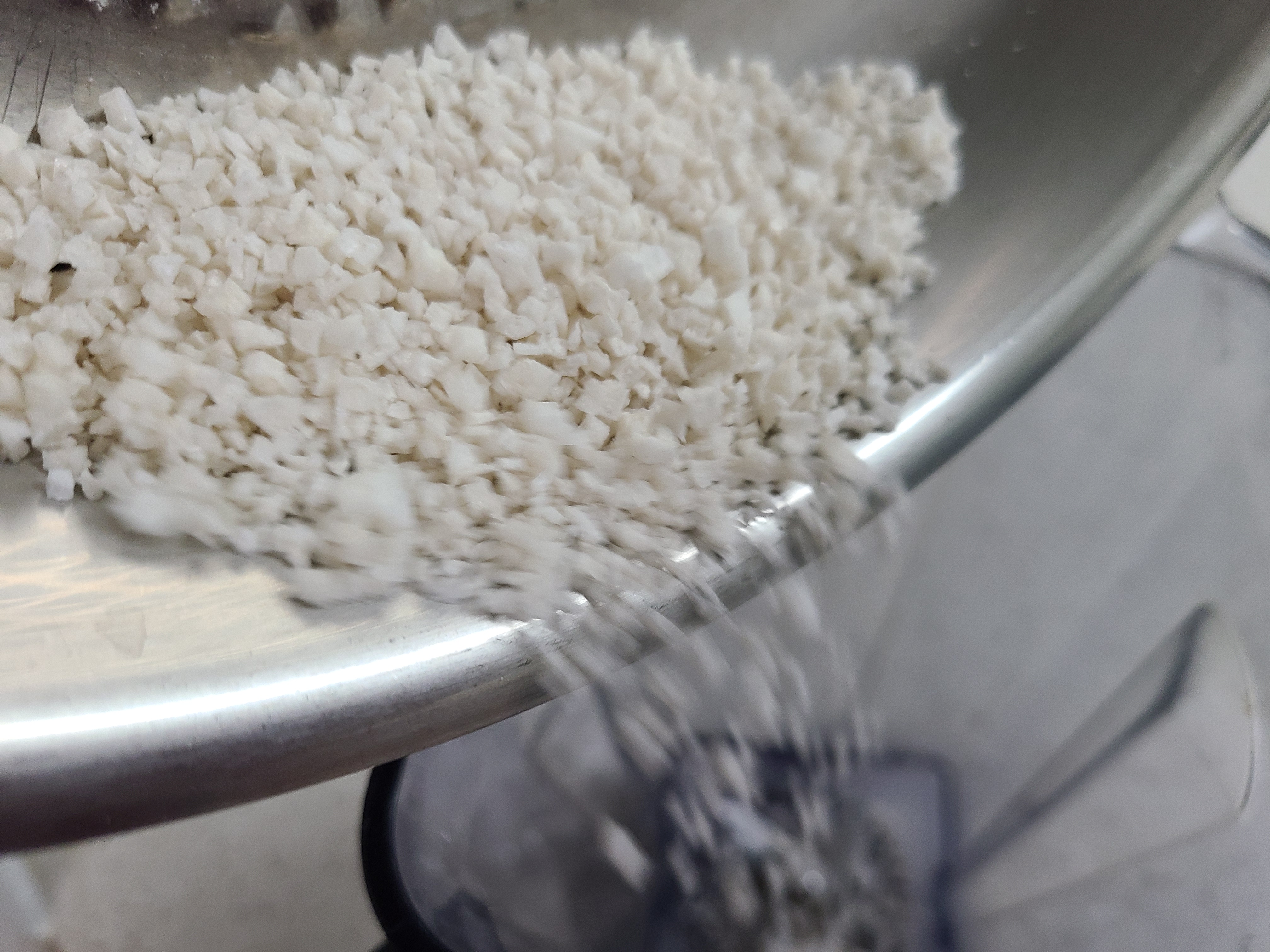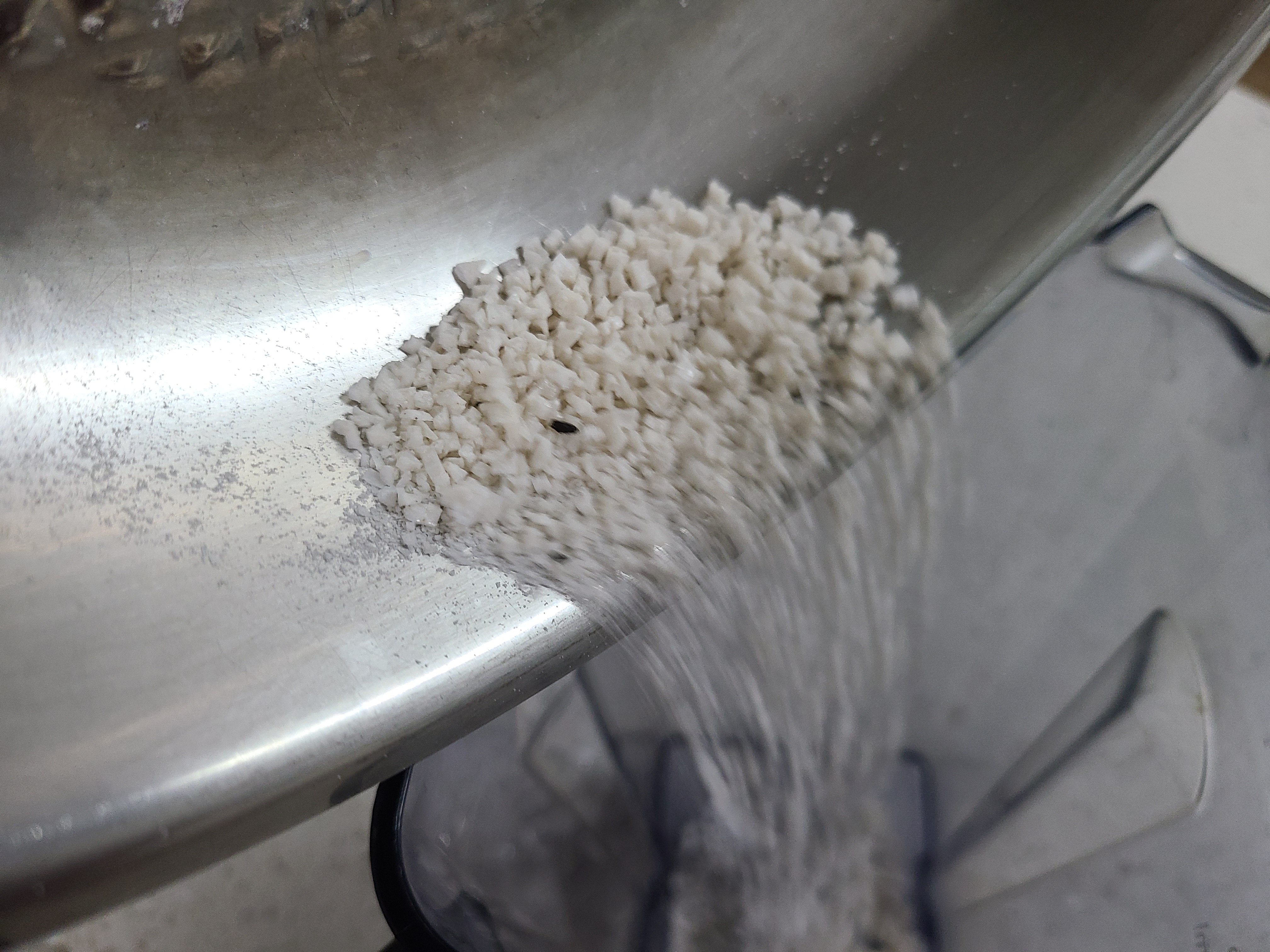 4. 볶은 소금의 열기가 식으면 믹서기에 담아준다.