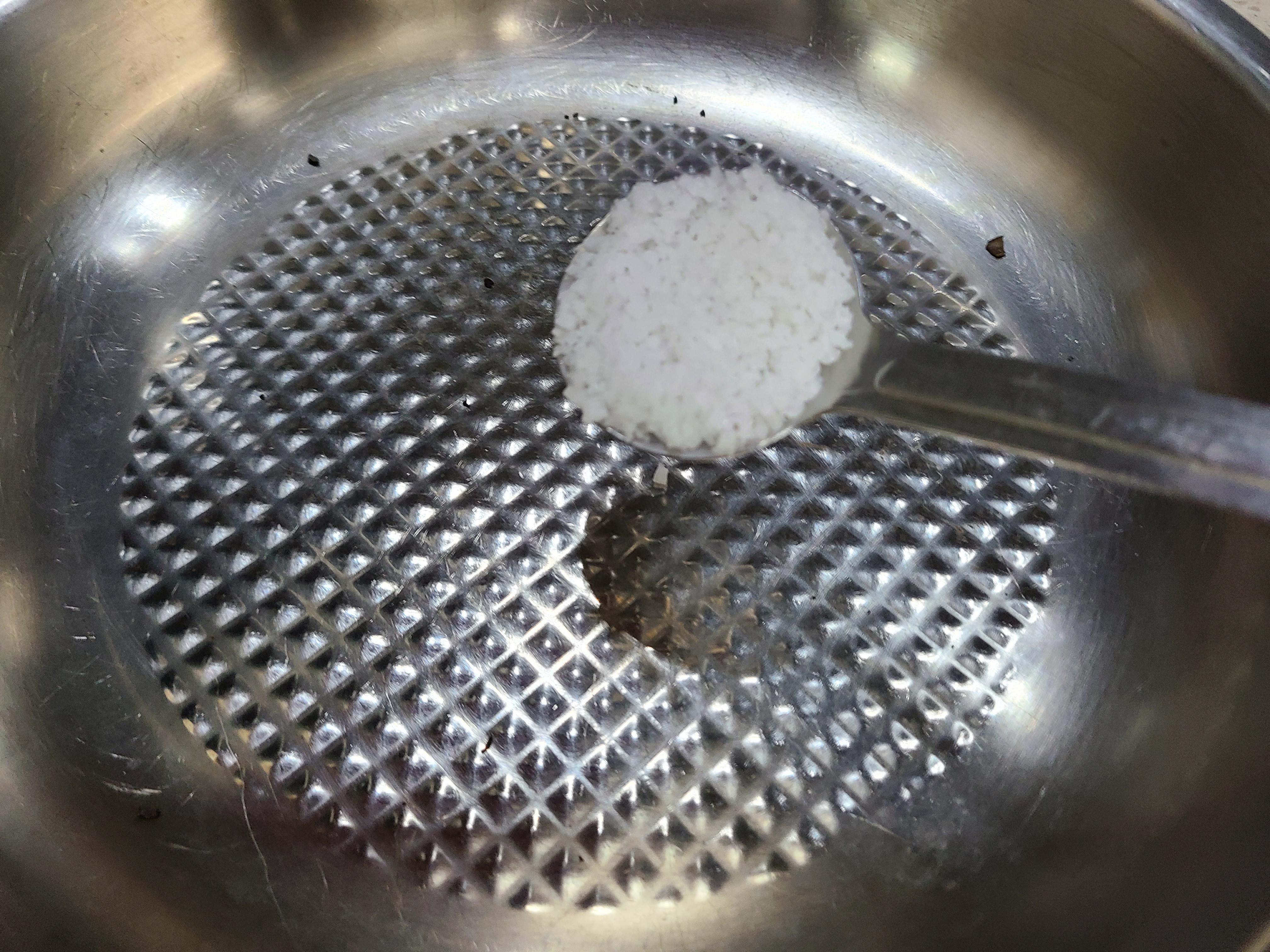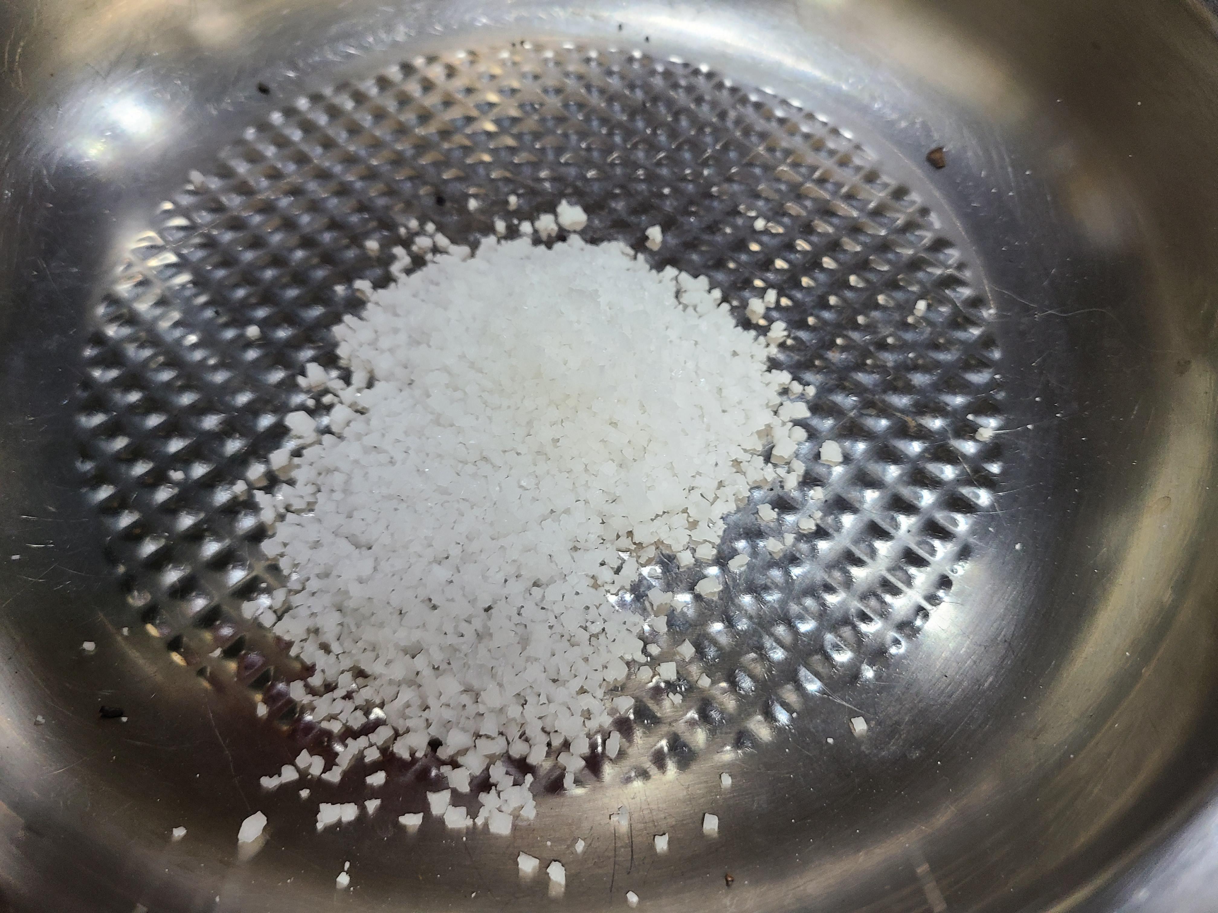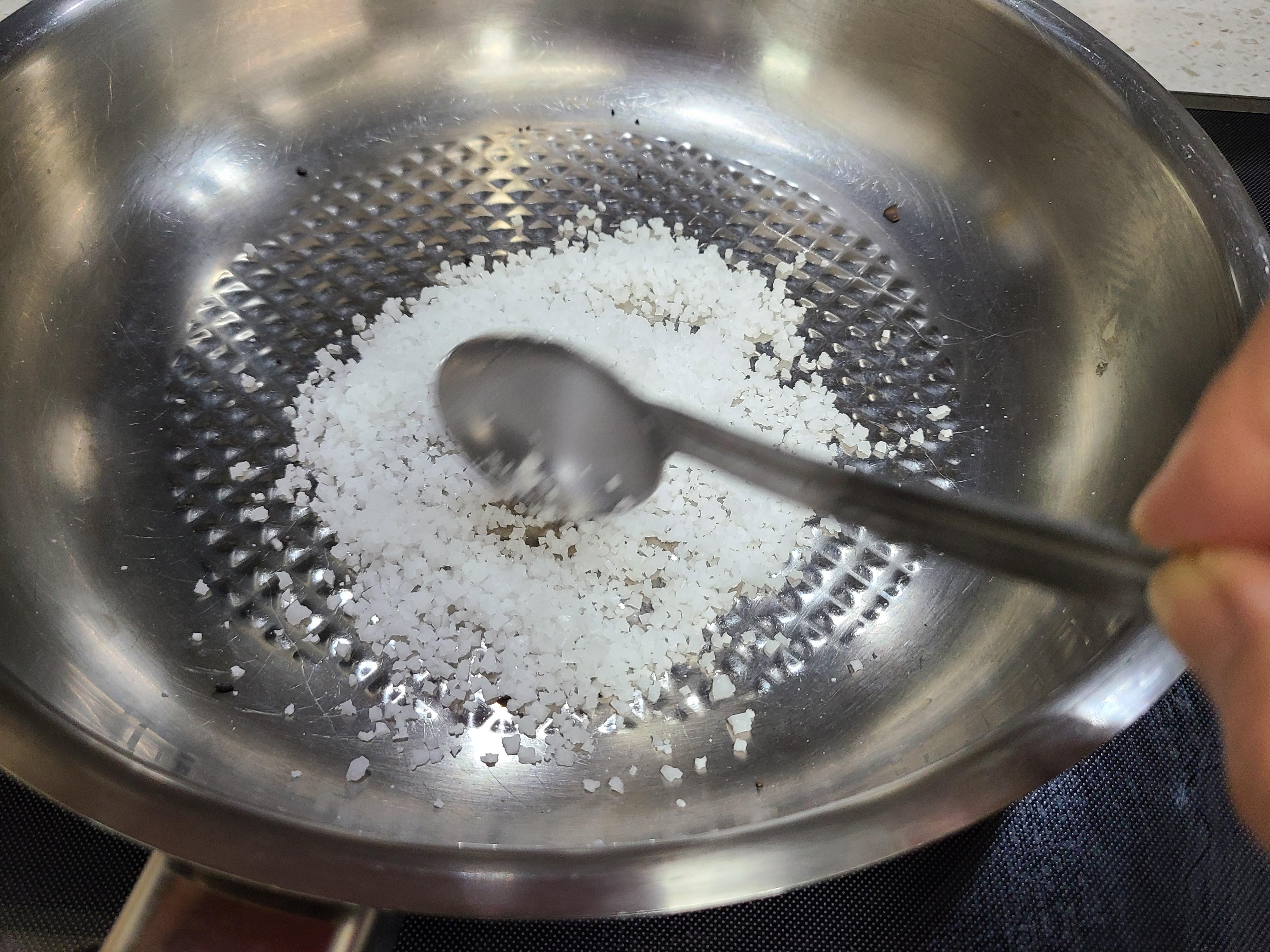 3. 천일염을 볶아주면 소금의 쓴맛이 줄어들고 단맛이 올라간다고 한다. 불에 볶은 천일염의 열기를 식혀준다.