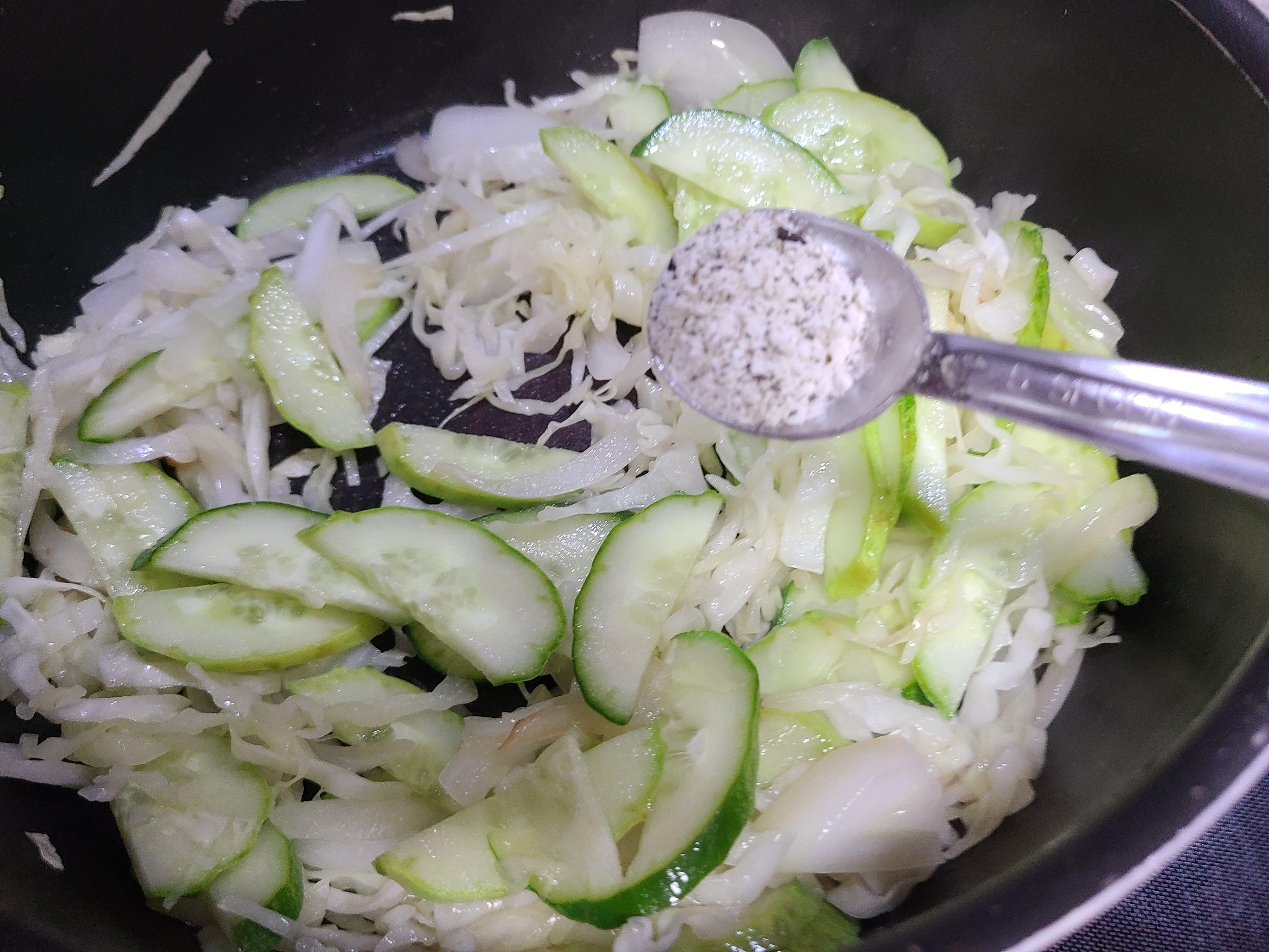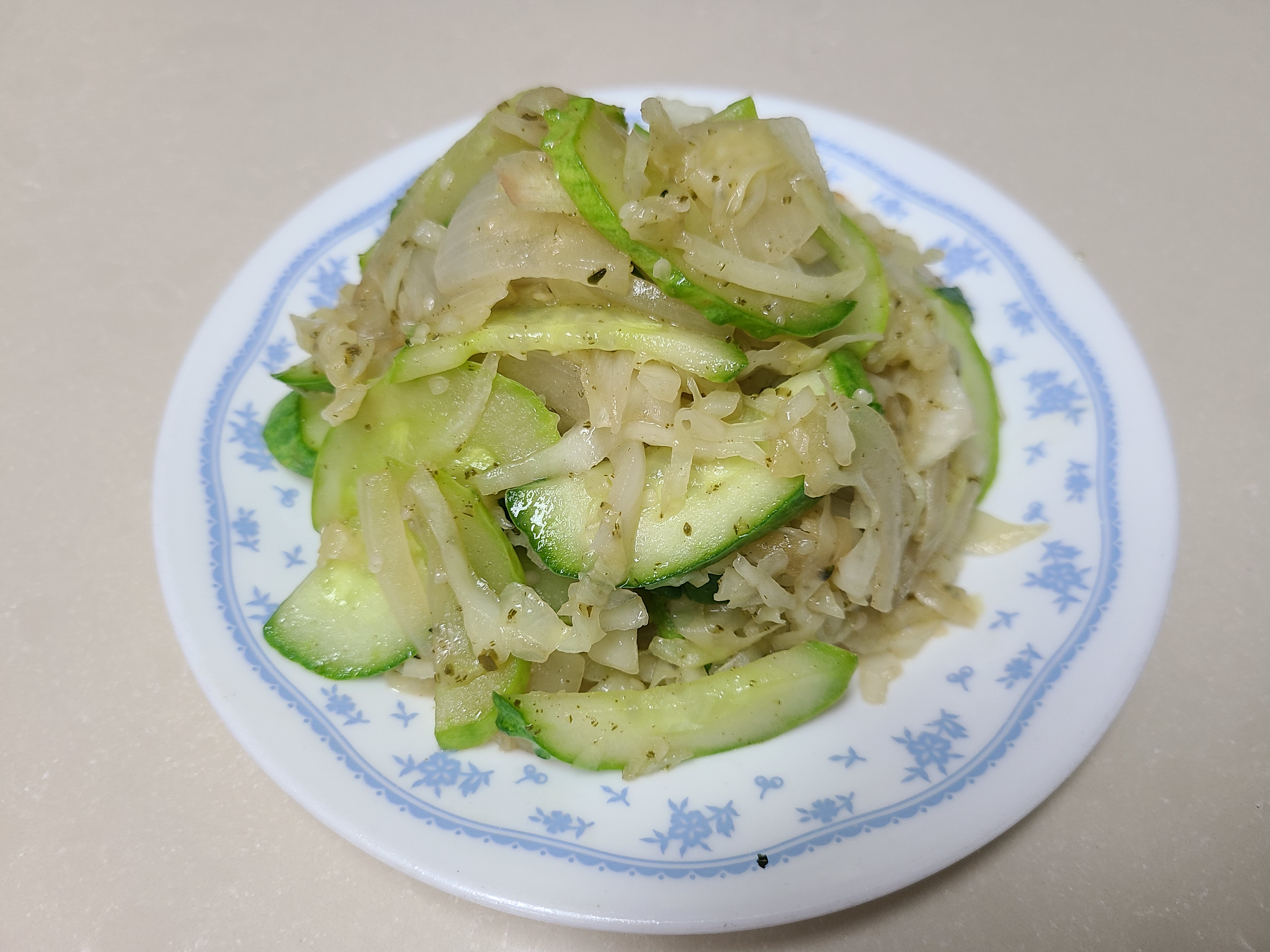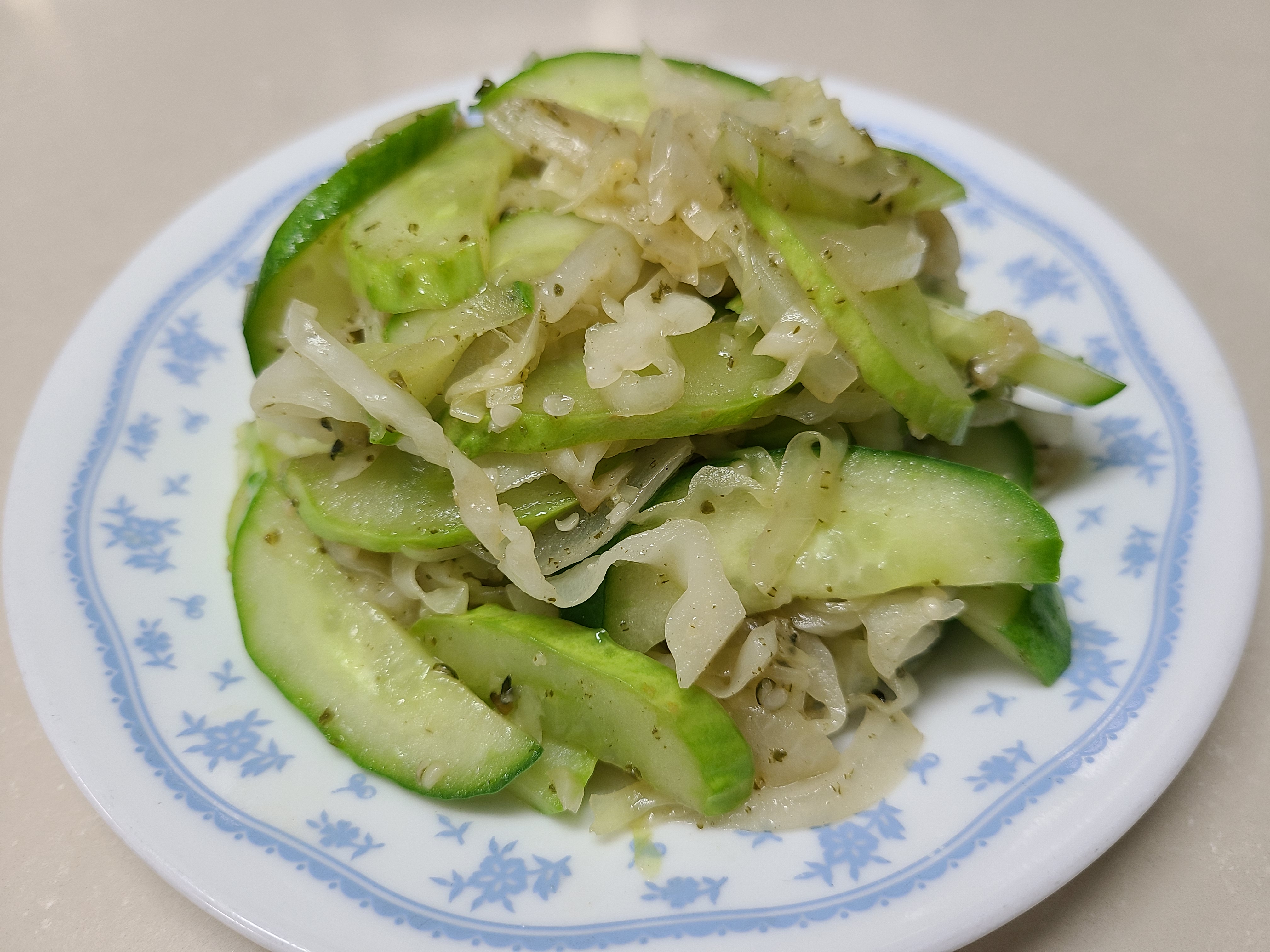 바로 만든 다시마 소금으로 오이 양배추 볶음을 만들어 보았다.