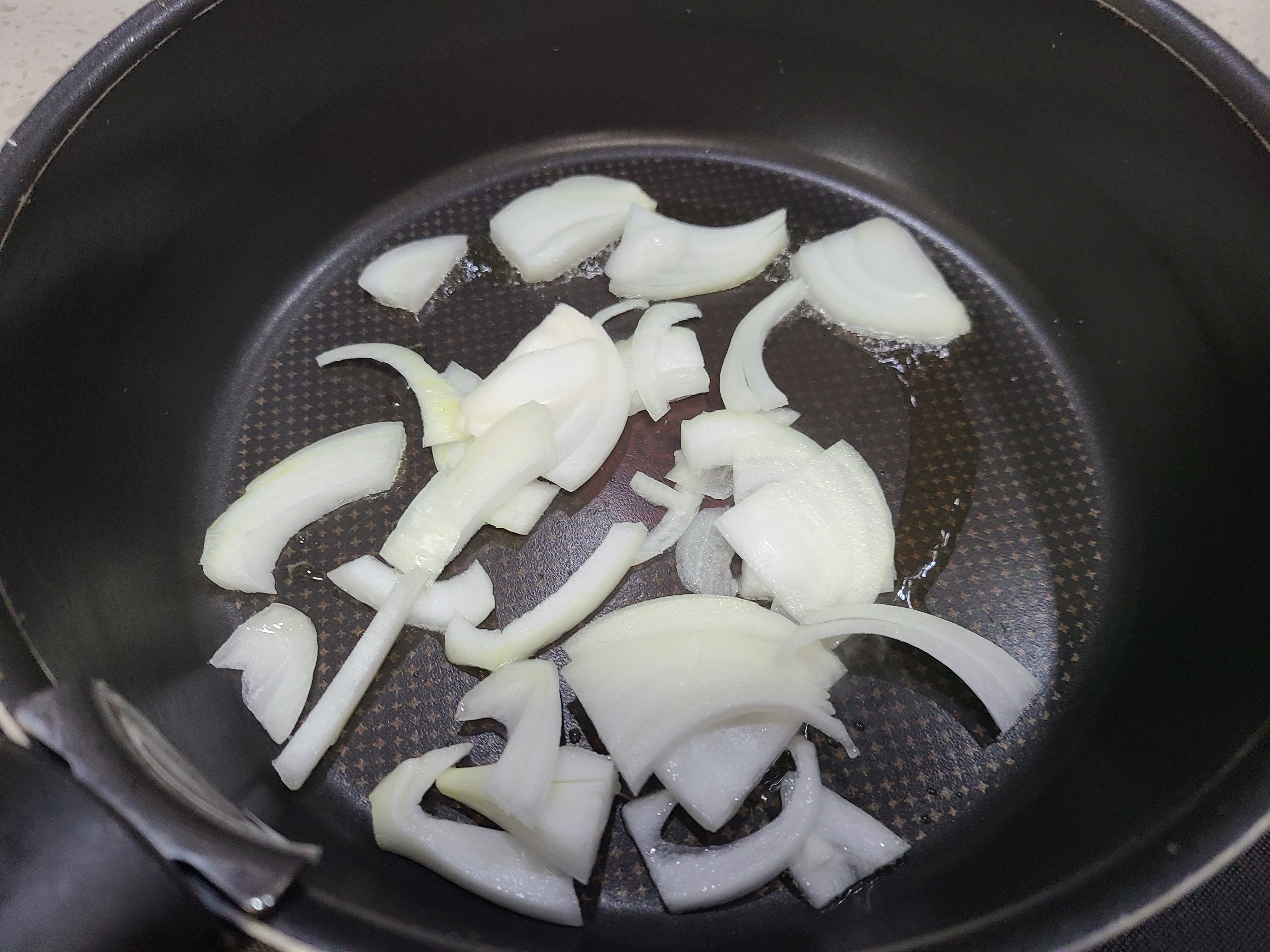 2. 프라이팬에 올리브유를 1큰술 넣어준 후 양파를 먼저 볶아주기 시작했다.