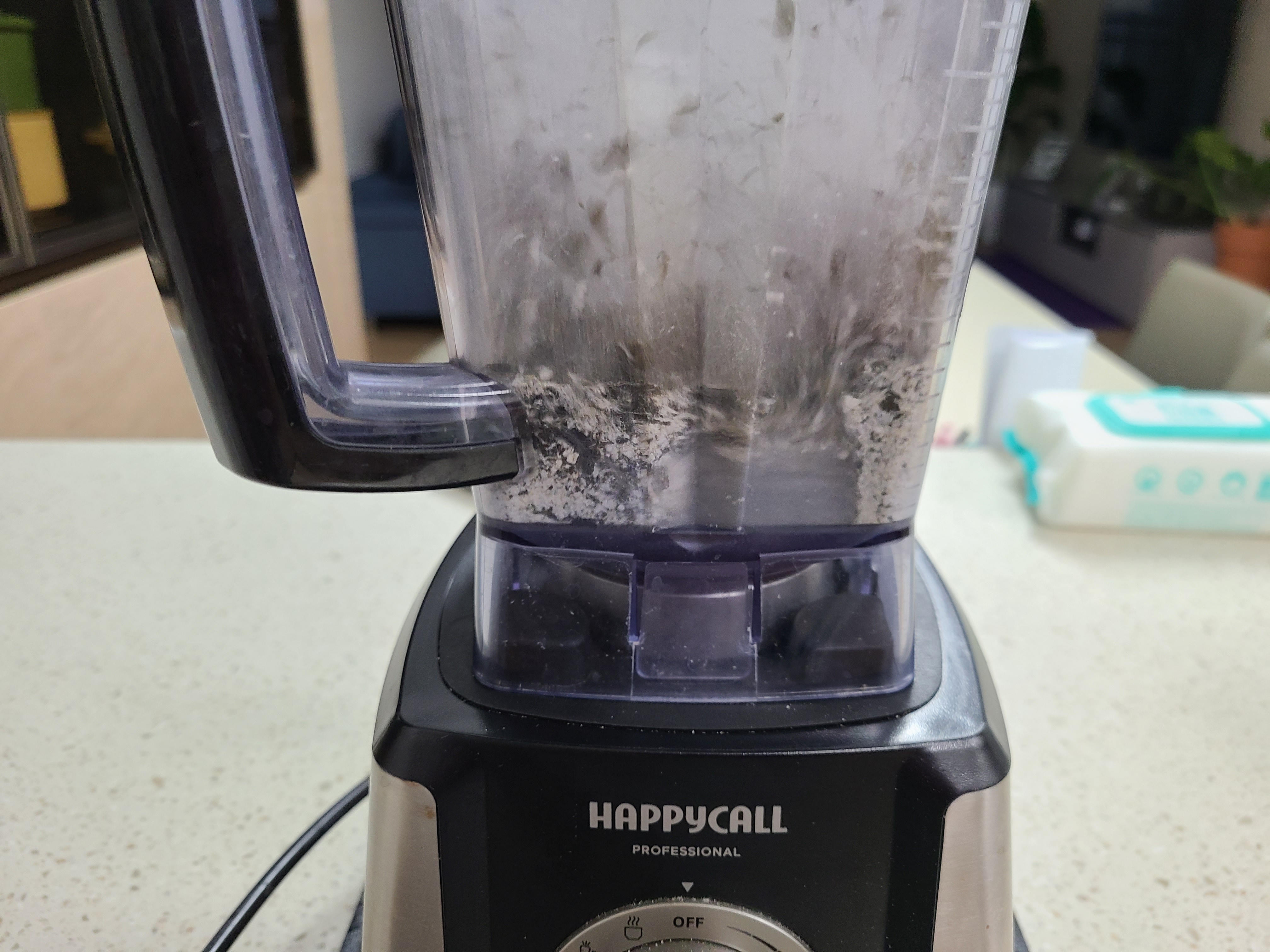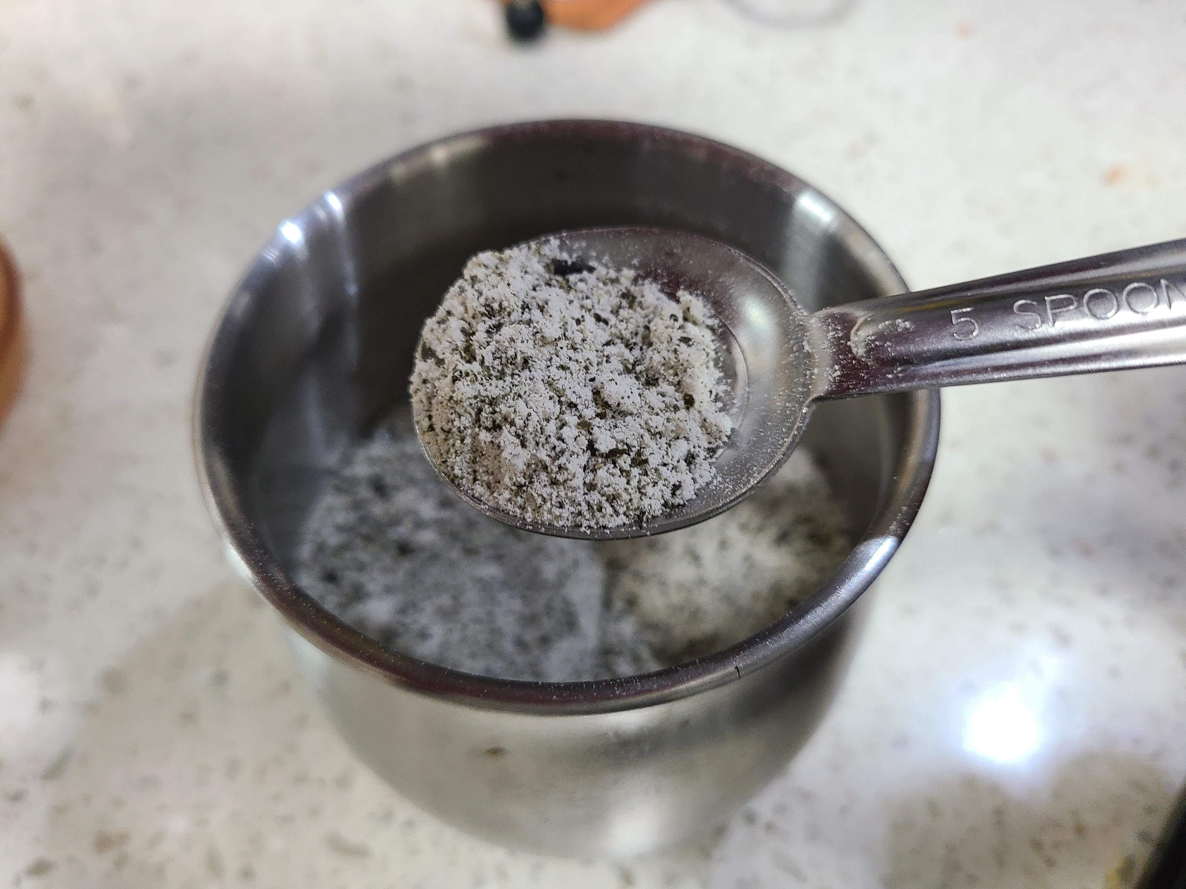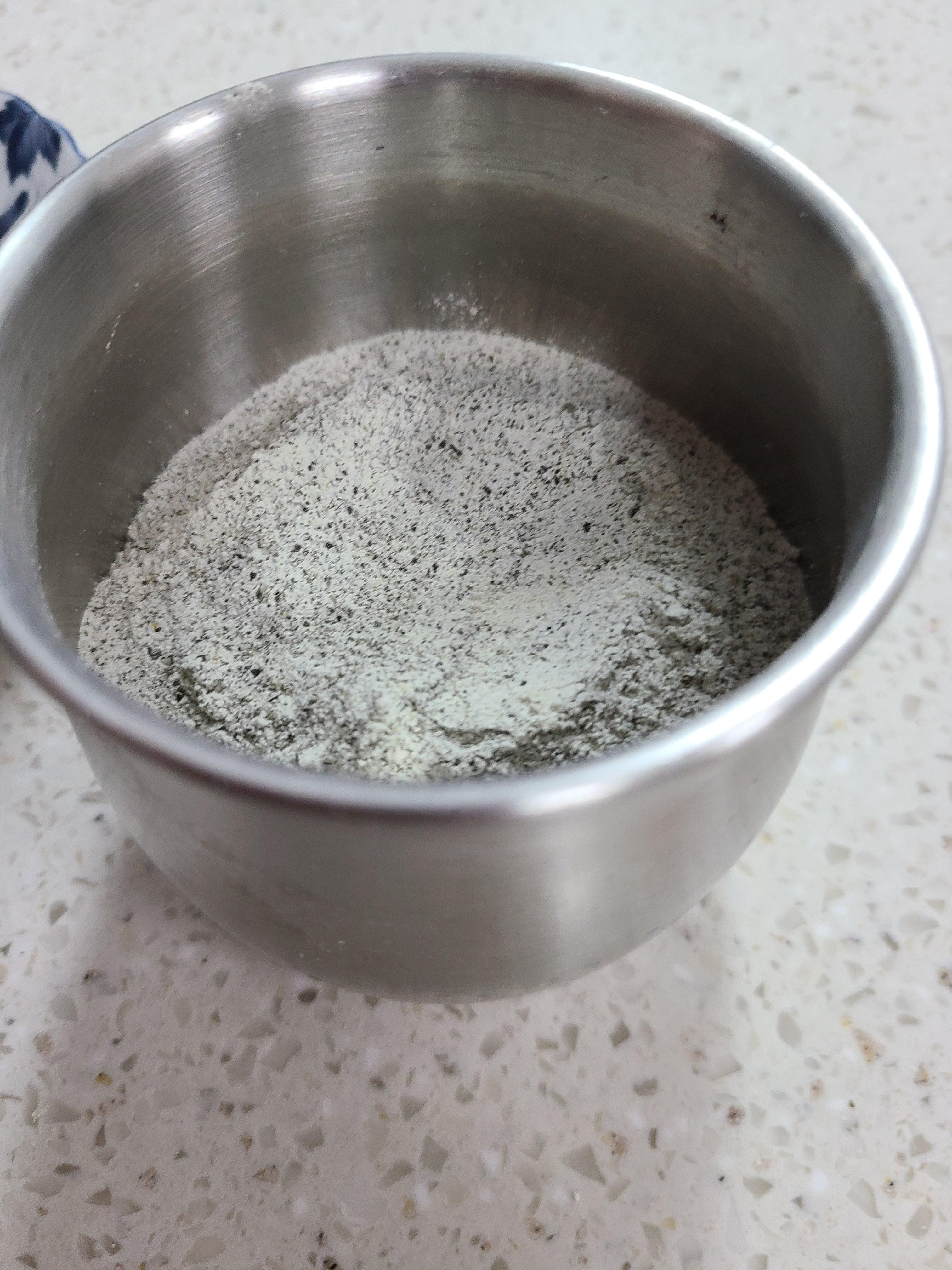 천일염과 다시마를 볶아서 분쇄를 하니 소금 색이 거무스름했다.
