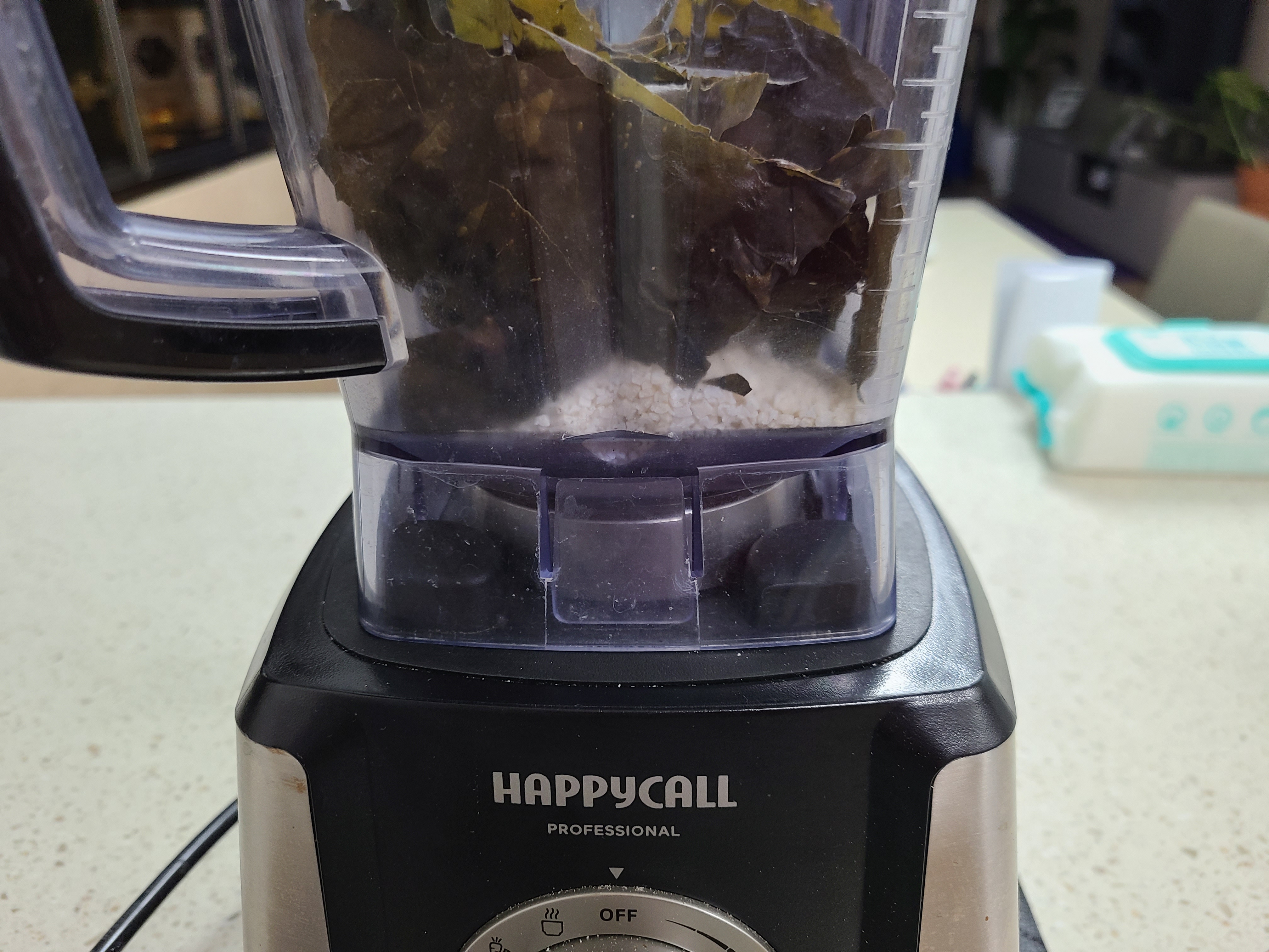믹서기 뚜껑을 열으니 다시마 향이 진하게 느껴진다.