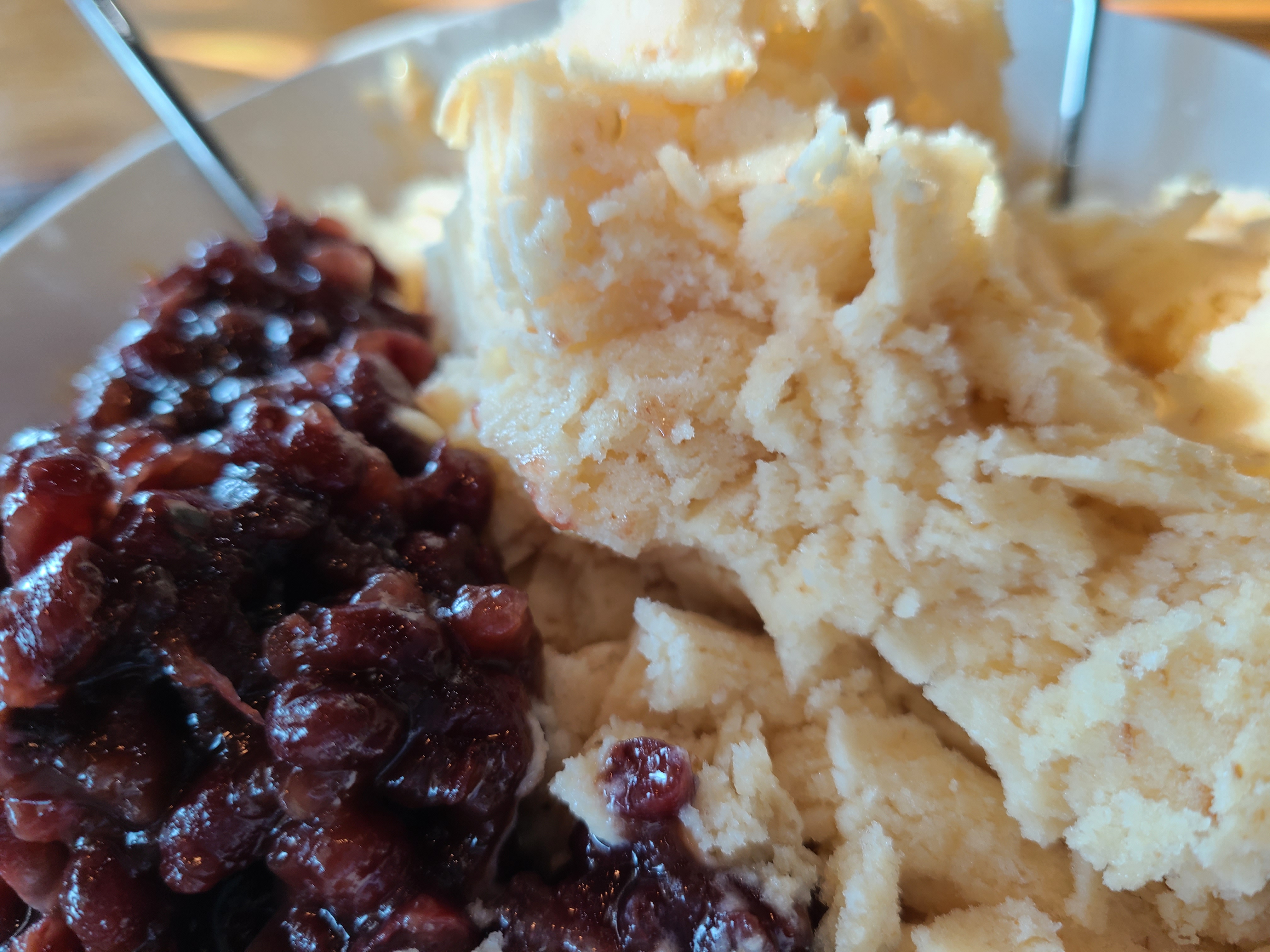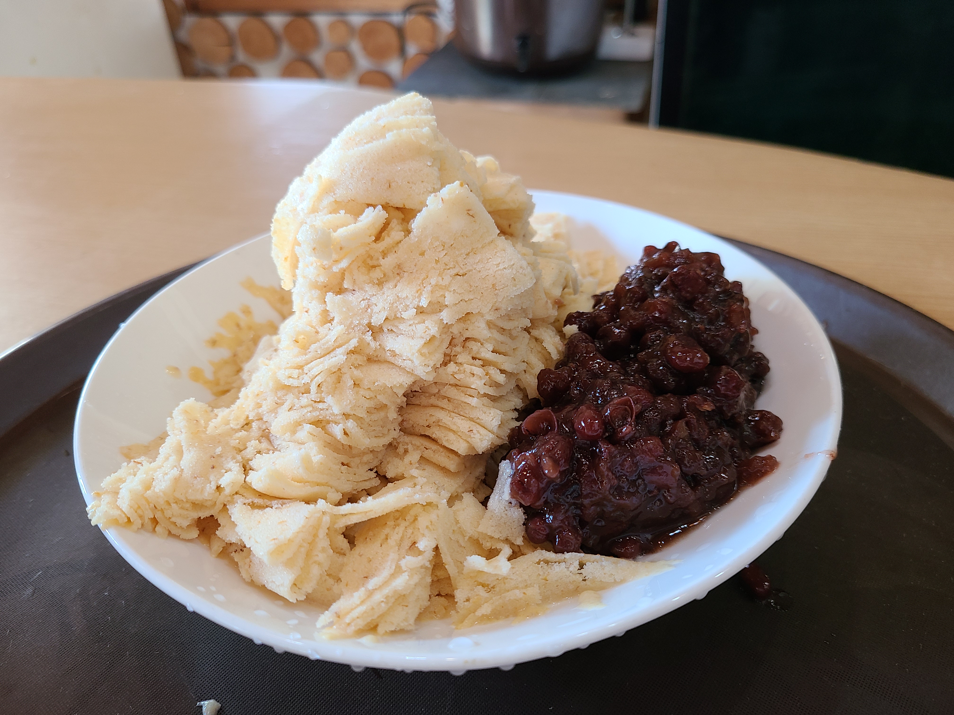 복숭아 빙수의 맛은 적당한 단맛이었고 부드러운 맛이었다. 팥 하고 잘 어울려 아주 맛있게 먹었다.