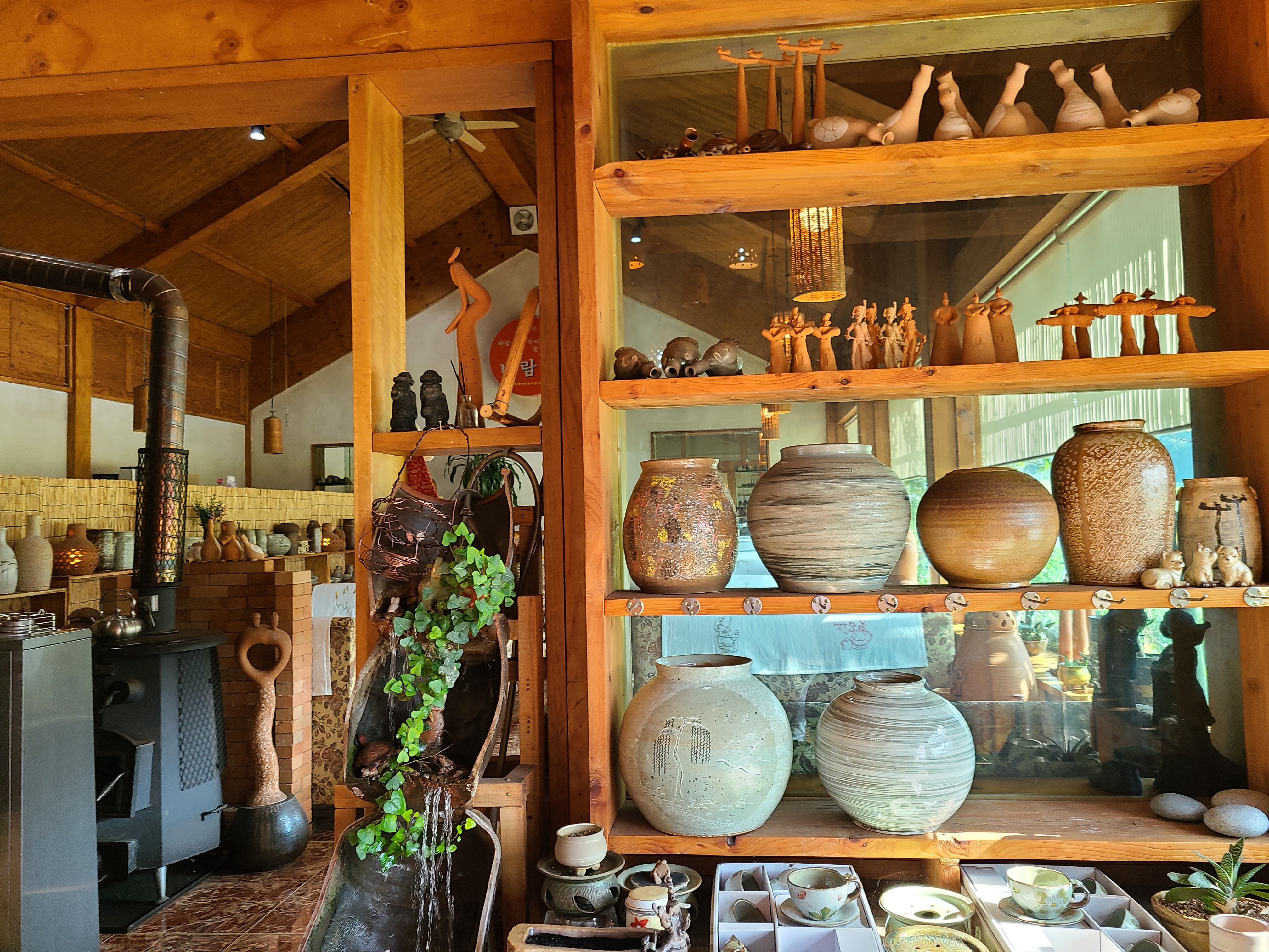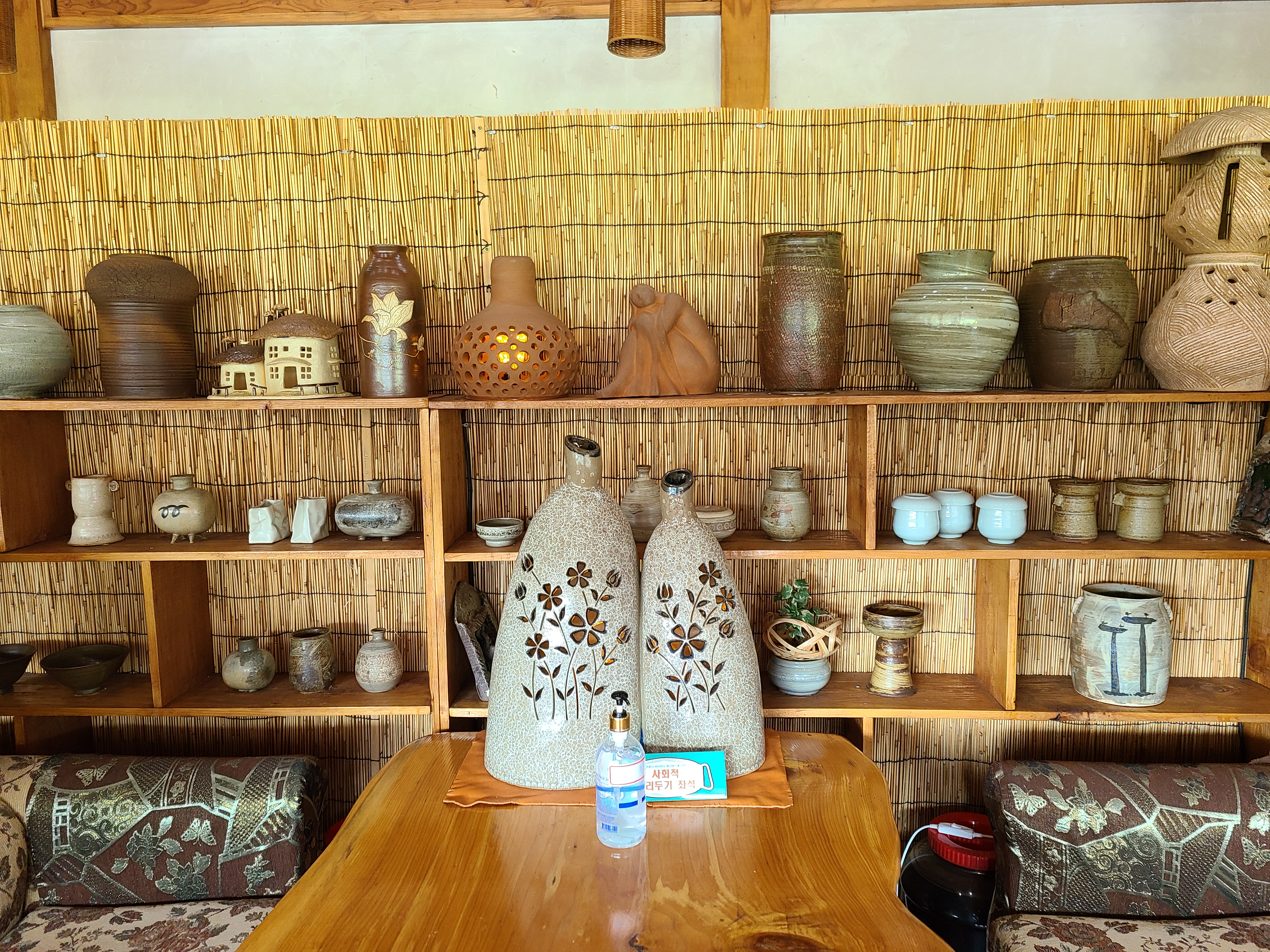 바람꽃 문을 열고 들어가니 예전과 분위기가 거의 변한 것은 없는 듯한데 실내가 깨끗해진 것 같다. 여전히 도자기 작품이 많고 진열장에 발효초도 보인다.