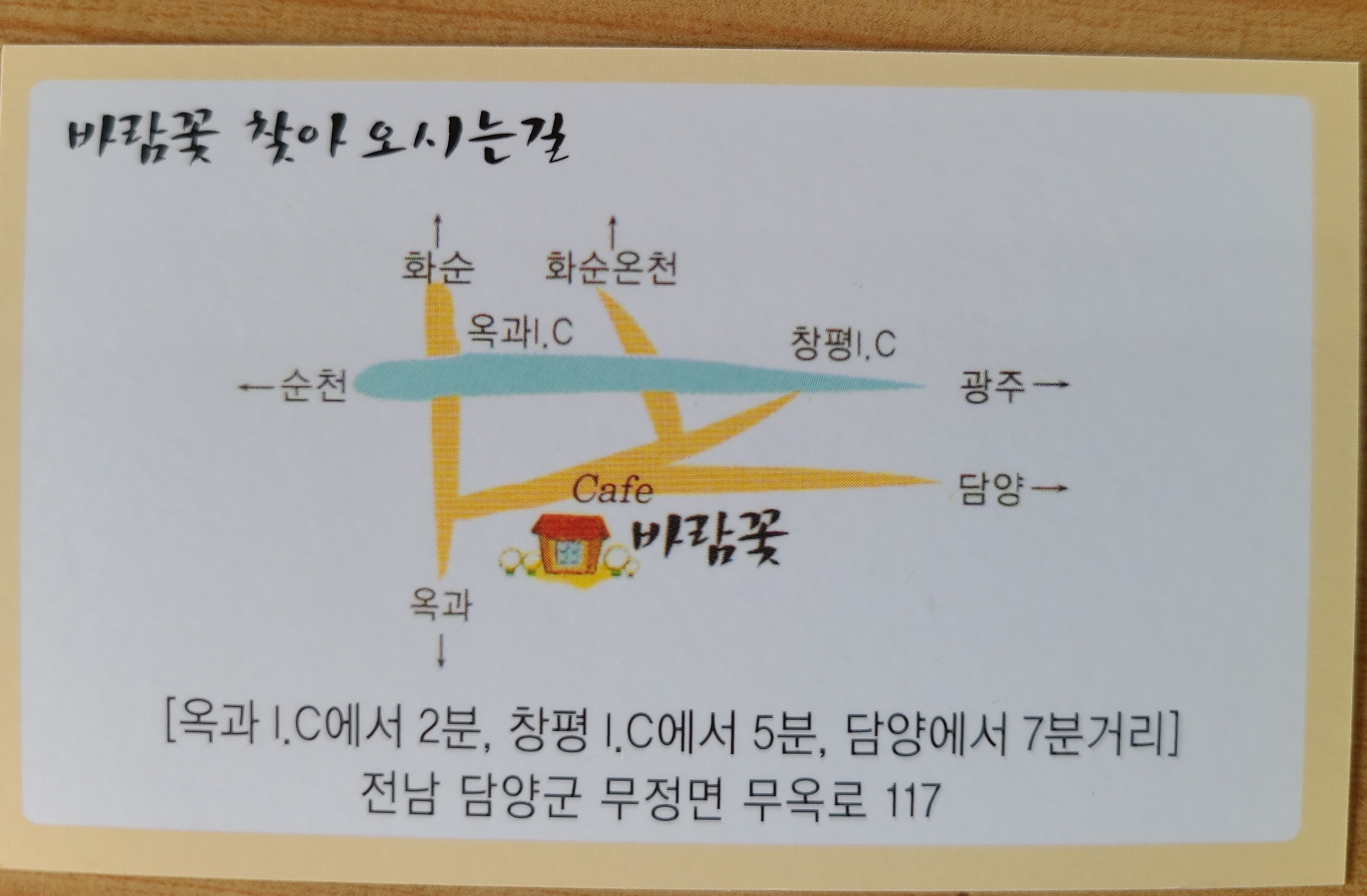 사람들이 붐비는 카페에 가고 싶지 않아 창평에서 옥과로 넘어가는 길에 있는 전통 카페로 가자고 했다. 광주호 호수생태원에서 30분 거리에 있는 담양 전통카페 바람꽃은 창평에서 옥과로 넘어가는 길가에 있는데 주로 건강차를 판매하는 곳이다.