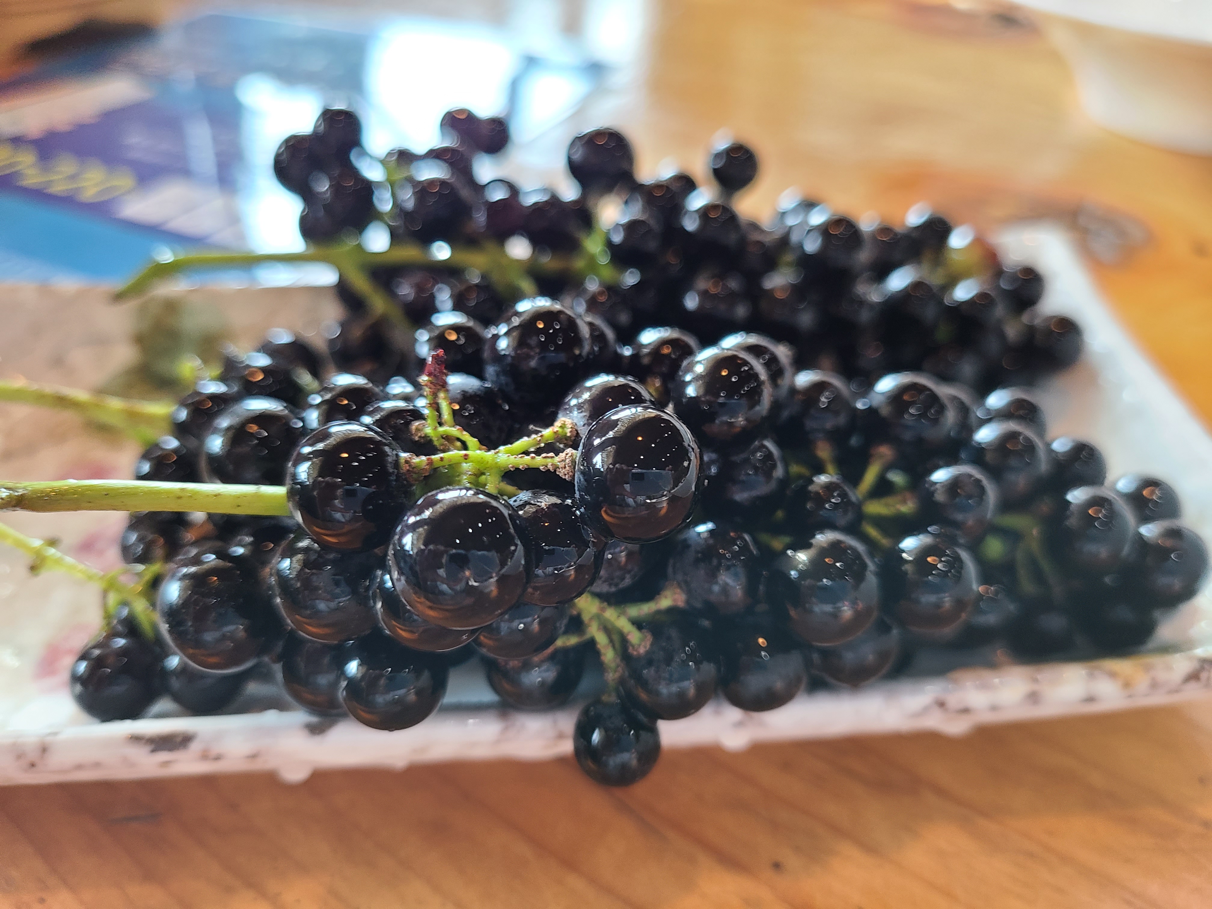 몇 년 전 근처에 있는 암 요양병원에 있으면서 가끔 건강차를 마시러 왔었다는 이야기를 하자 사장님이 서비스로 산머루를 세송이나 내어 주었다.