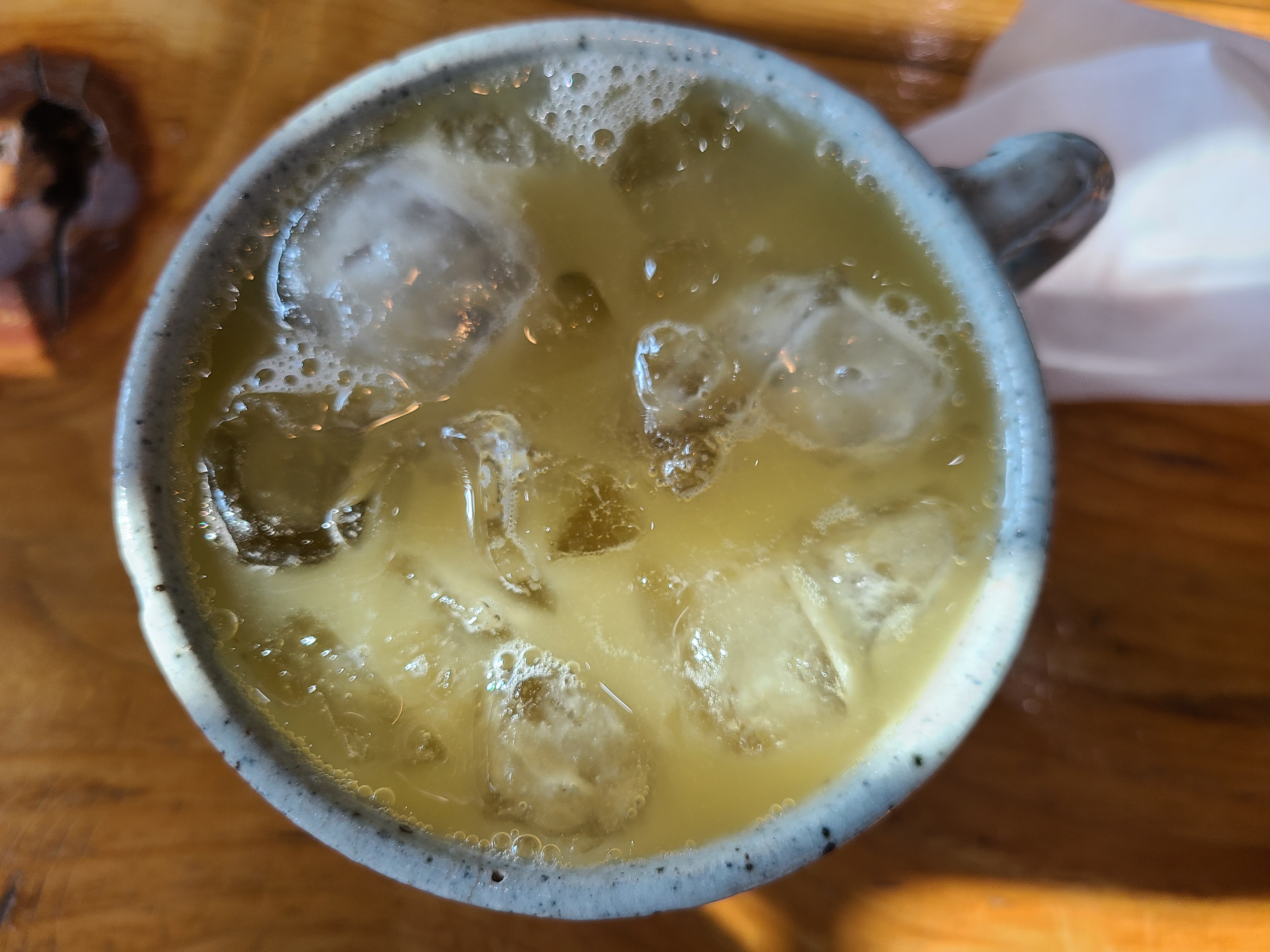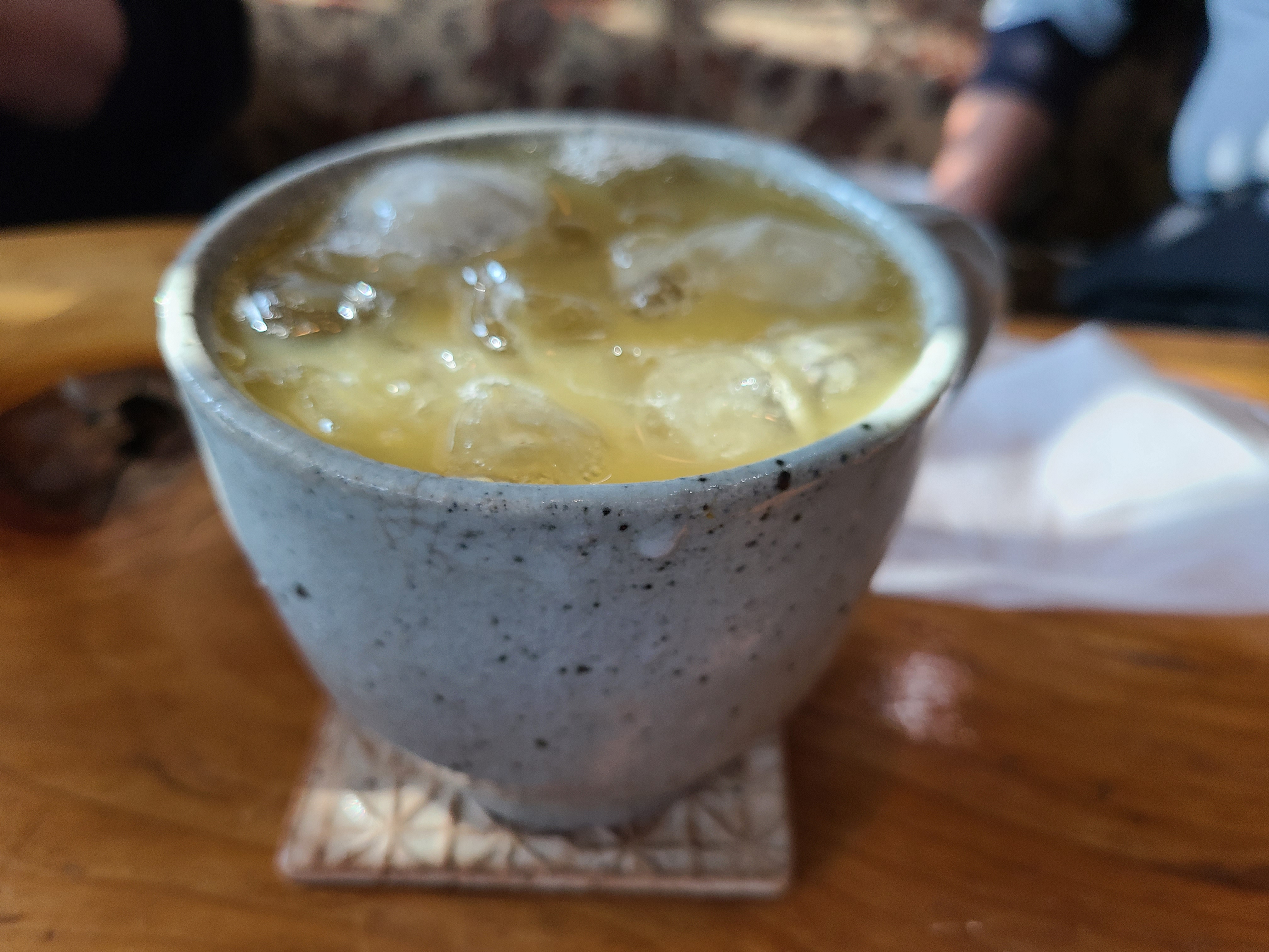 사장님의 추천 메뉴로 남자분들은 솔잎차를 주문했고, 우리는 복숭아 빙수와 산머루 차를 주문했다.