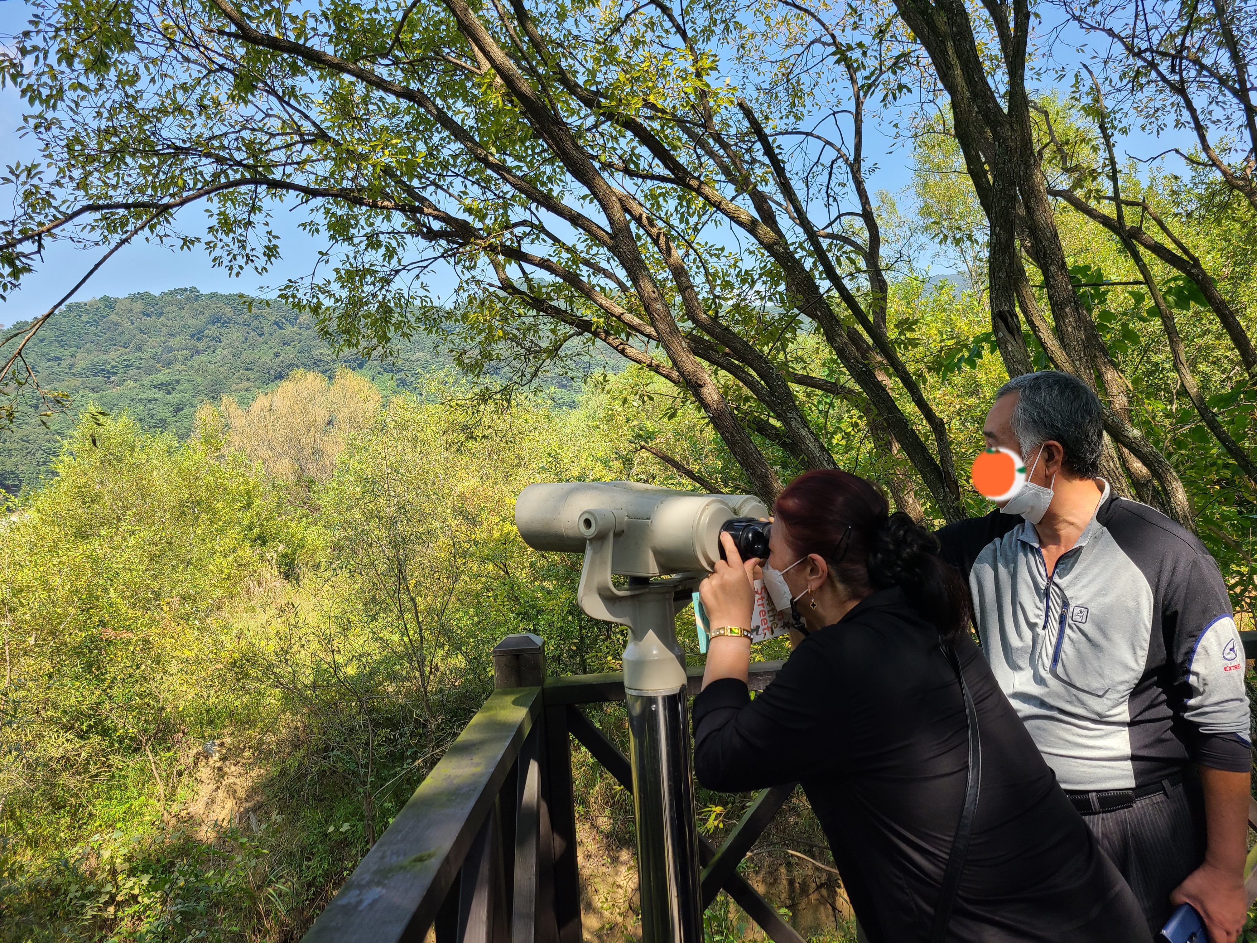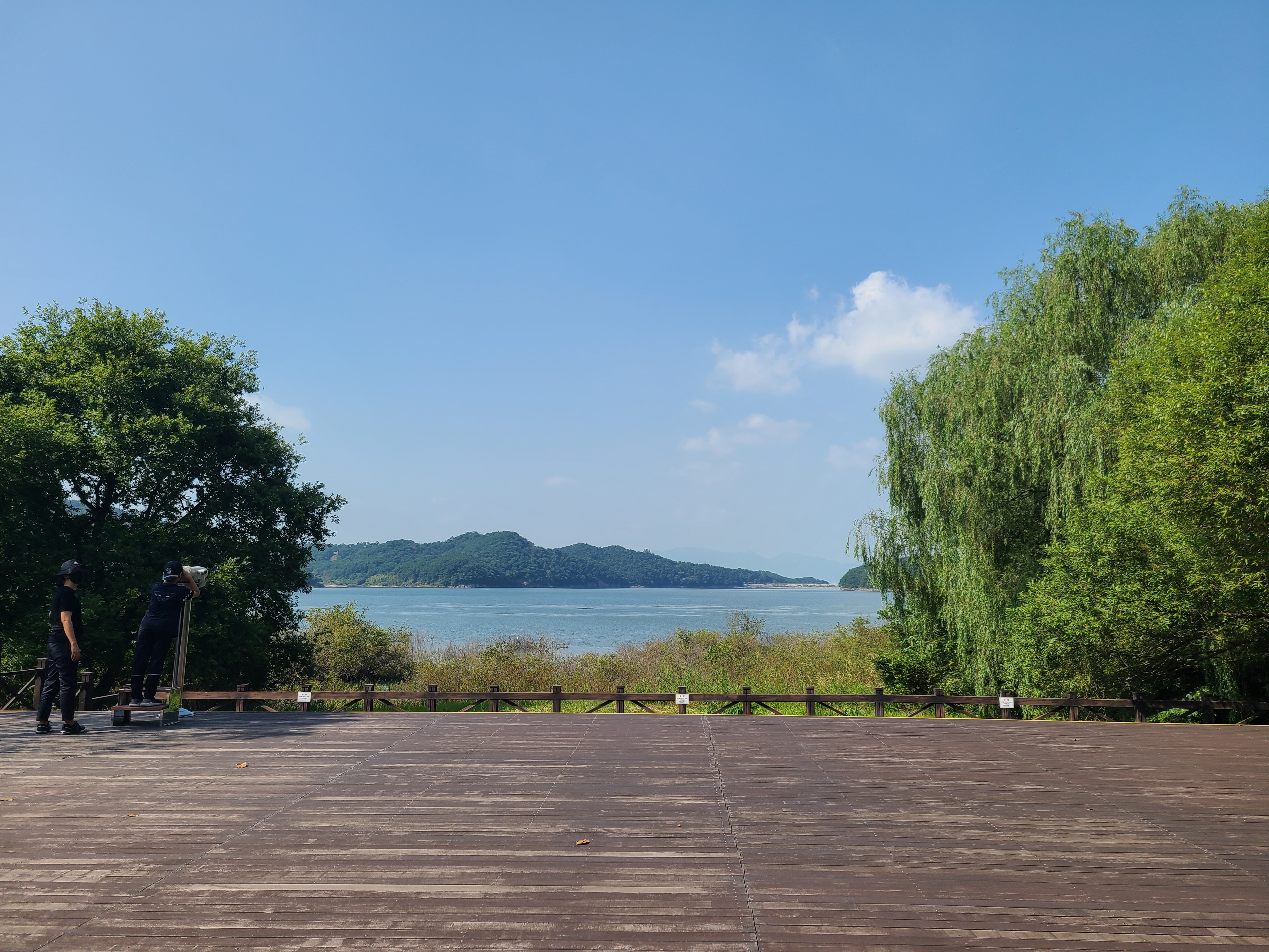 테크 길을 따라 걷다 보니 9남매 왕버들이 있는 곳에 전망대가 있고 망원경이 있어 주변을 관찰할 수 있었다. 망원경으로 보았더니 광주호 건너편에 있는 산과 소나무가 바로 눈앞에 있는 듯하다.