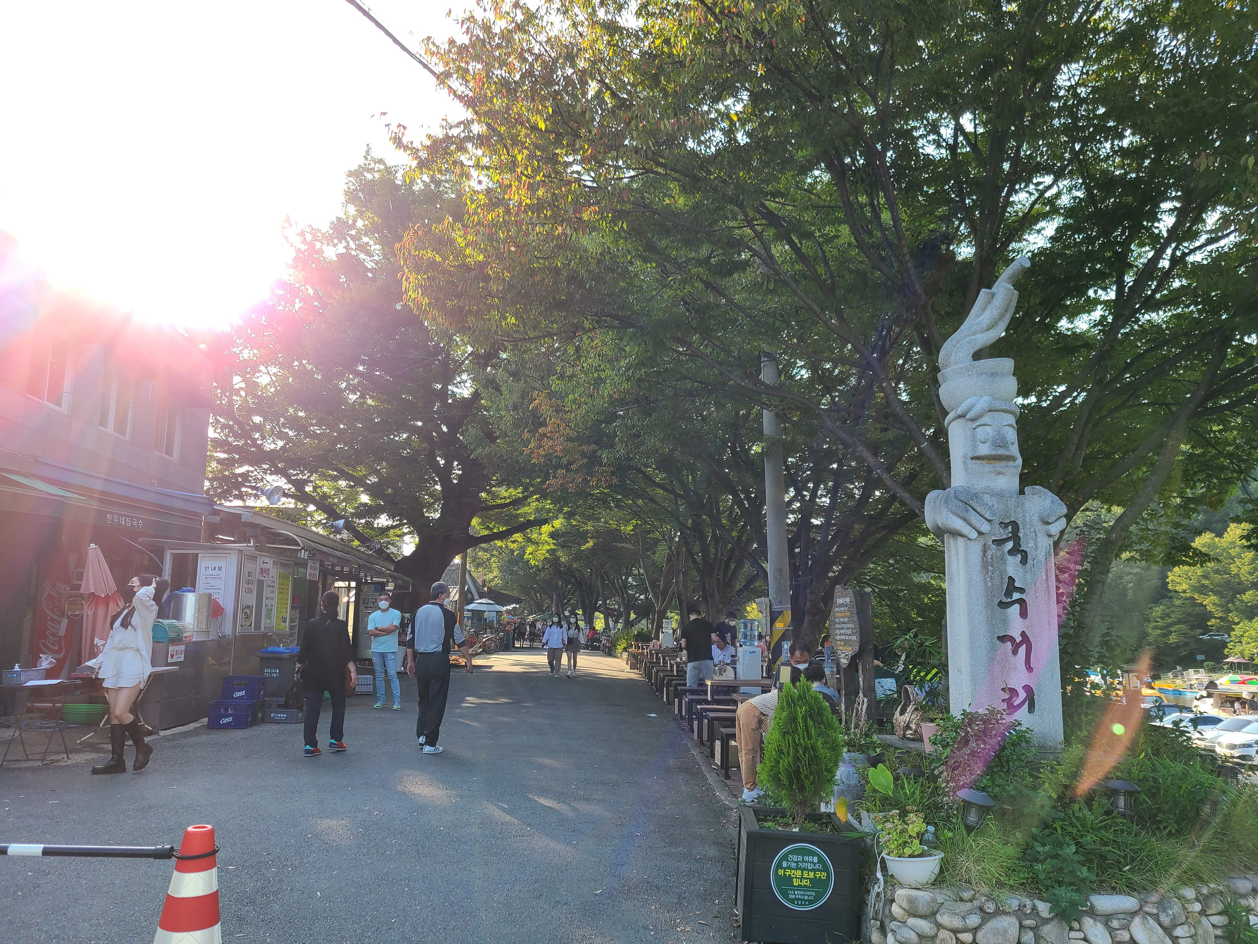 입구에 들어가니 양옆으로 나무가 우거져 자연스럽게 그늘이 있어 걷기에 좋았다.