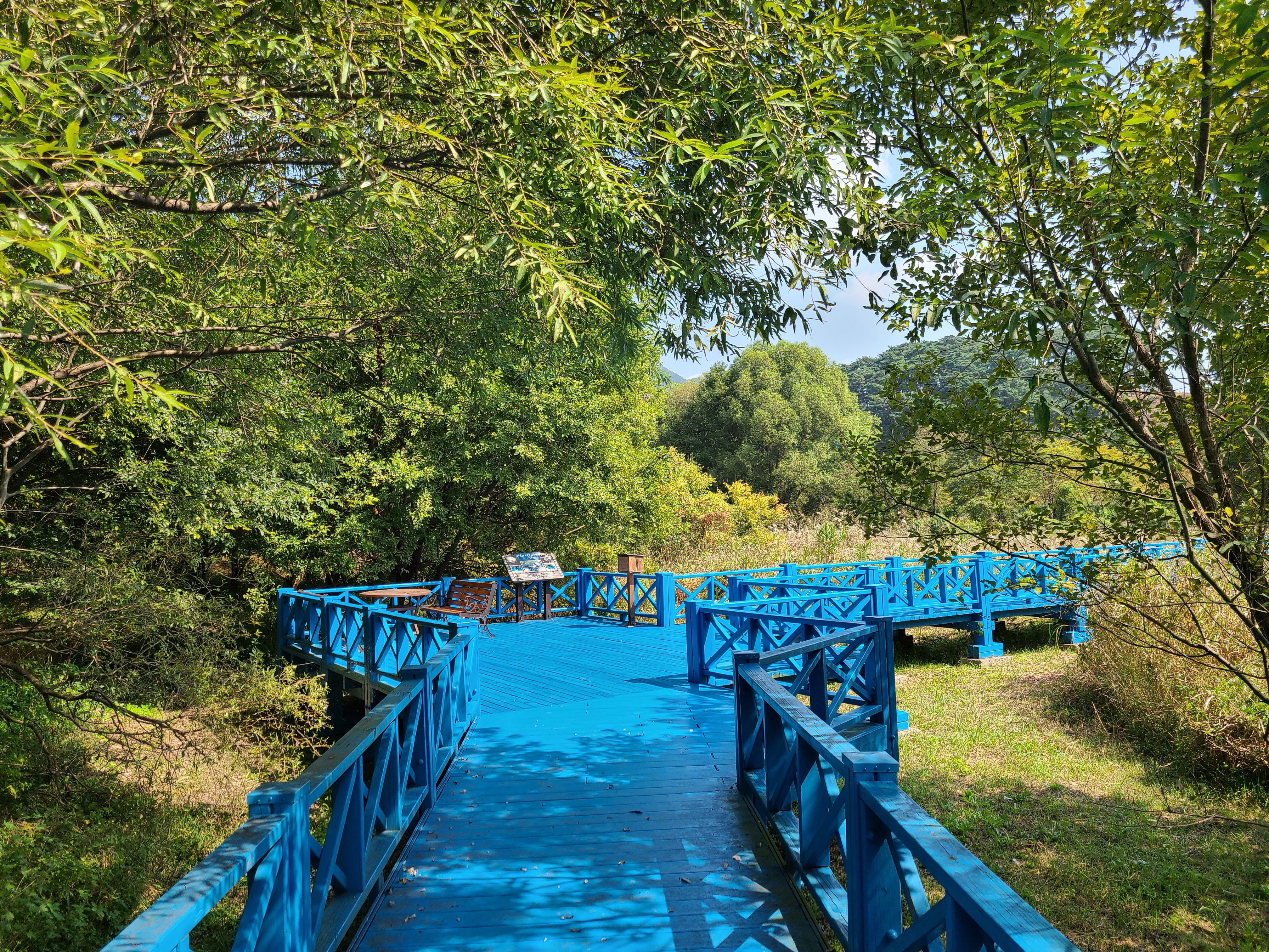 2018년 4월 27일 , 제1차 남북정상회담 시 문재인 대통령과 김정은 북한 국무위원장이 회담을 했던 '판문전 도보 다리'를 재현해 놓은 시설이야 사연을 떠나 파란색 다리가 시원해 보여서 좋았다.