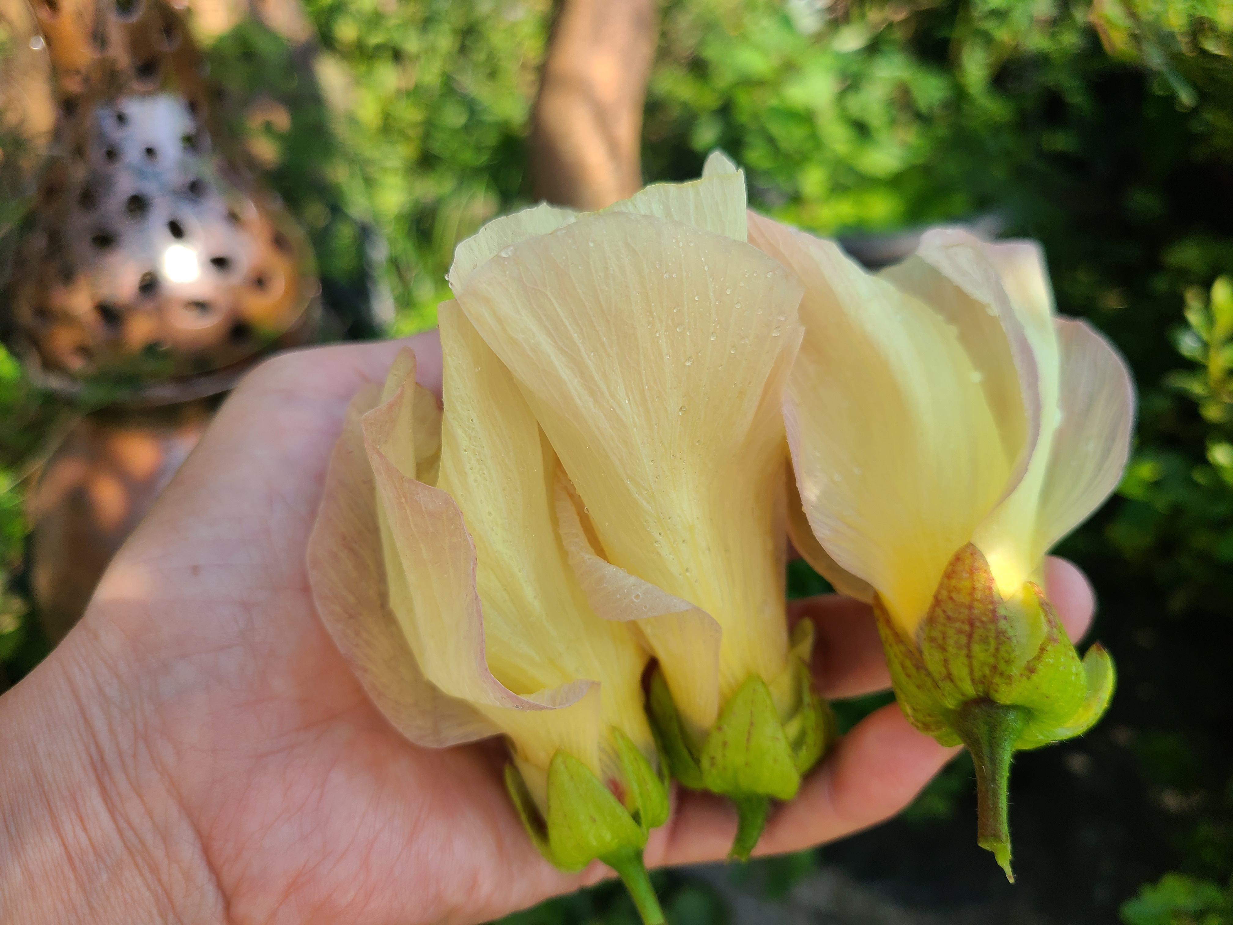 꽃 검색을 해보니 닥풀이라는 꽃으로 금화규라고도 하는데 한지의 강도를 증가시키는 재료로 사용된다는 내용과 식물성 콜라겐이라는 내용이 나왔다. 하지만 먹는 것보다는 갈아서 얼굴에 팩으로 사용하는 것을 권하는 내용이 있었다.