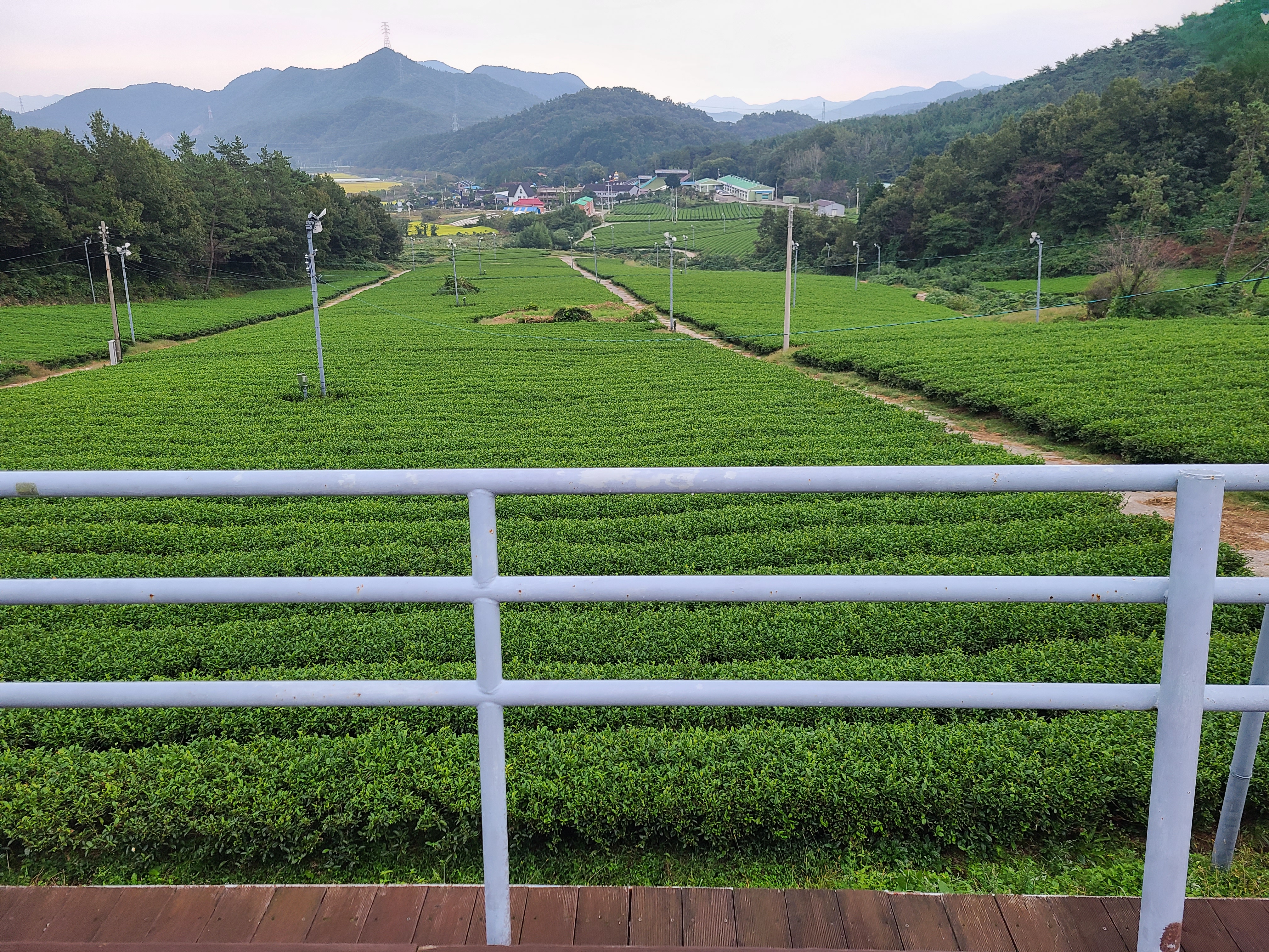대나무길을 따라 오른쪽 길로 걸어 나가니 월출산과 녹차밭이 나온다.