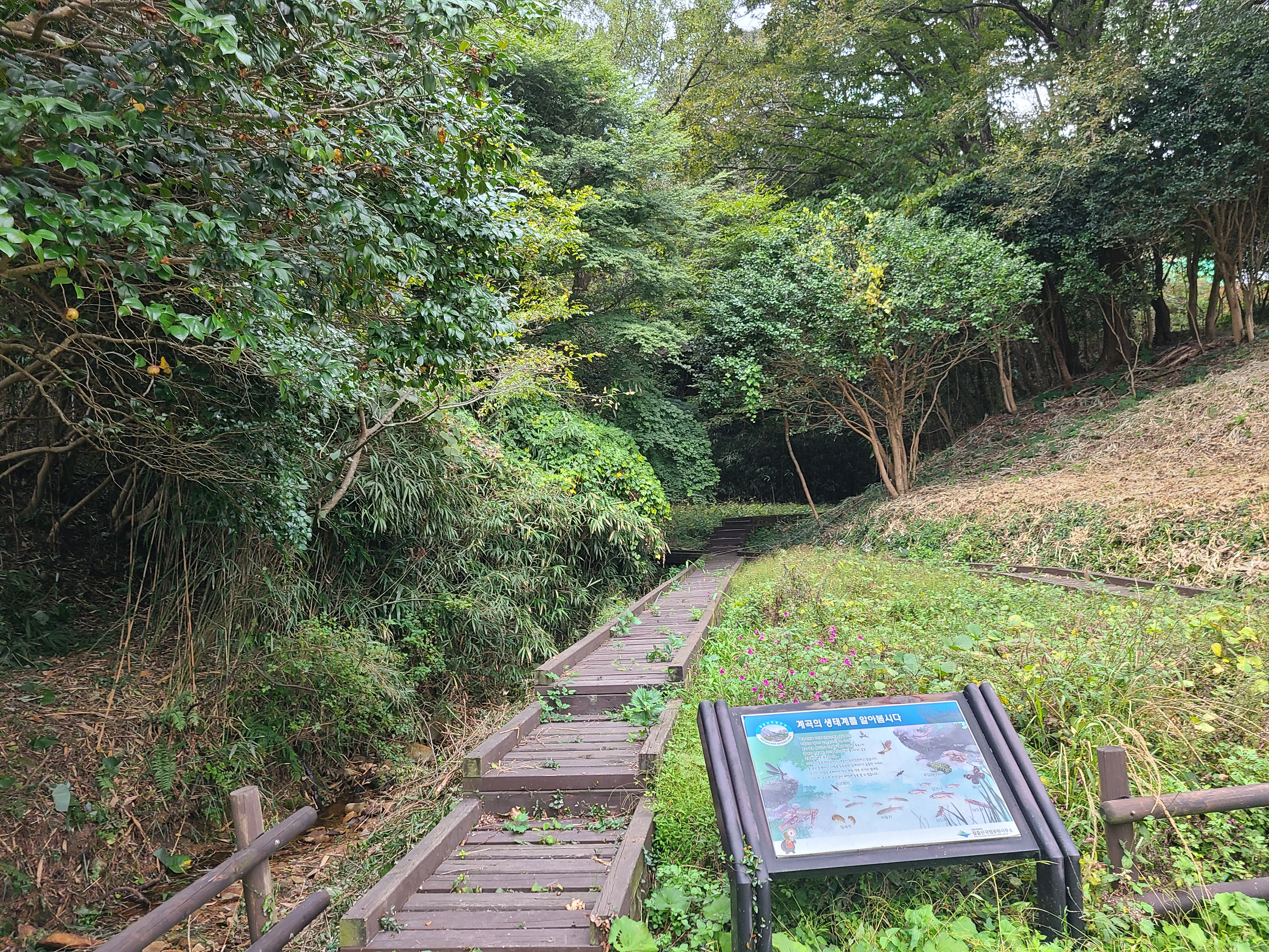 습지관찰대와 조류 관찰대를 지나니 계곡 위로 조그마한 다리가 나온다. 다리를 지나니 다시 처음 출발했던 곳으로 숲길이 연결이 되어 있었다.