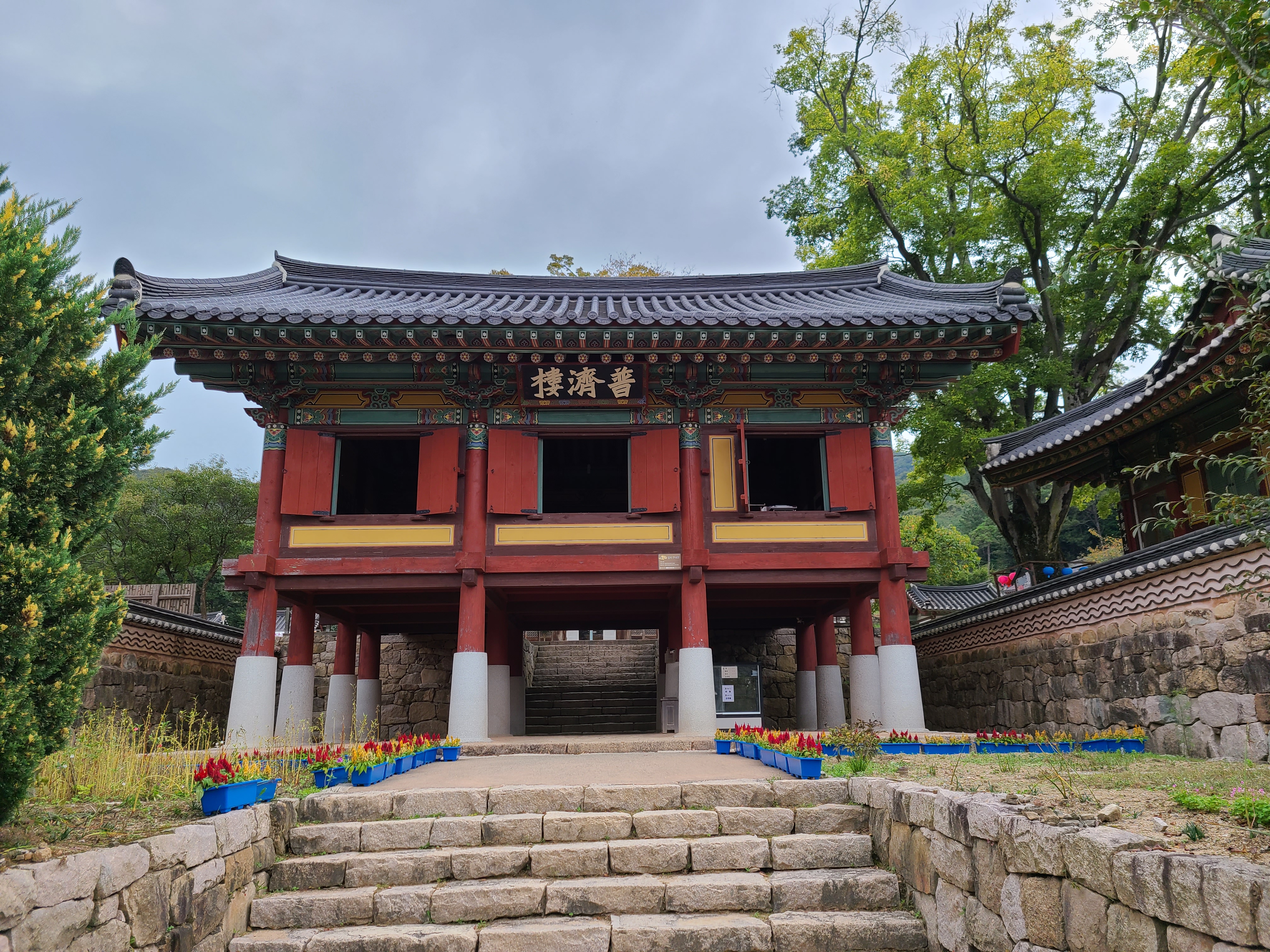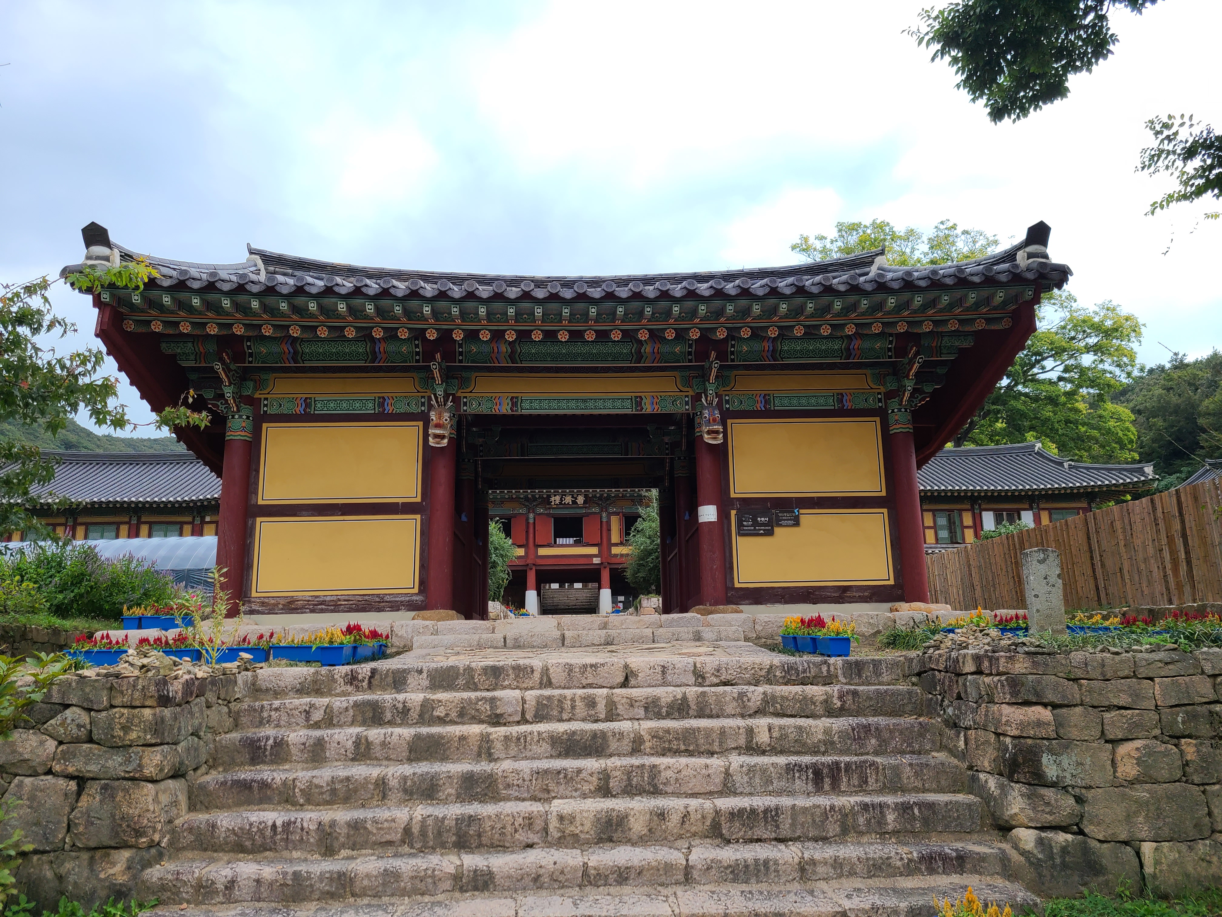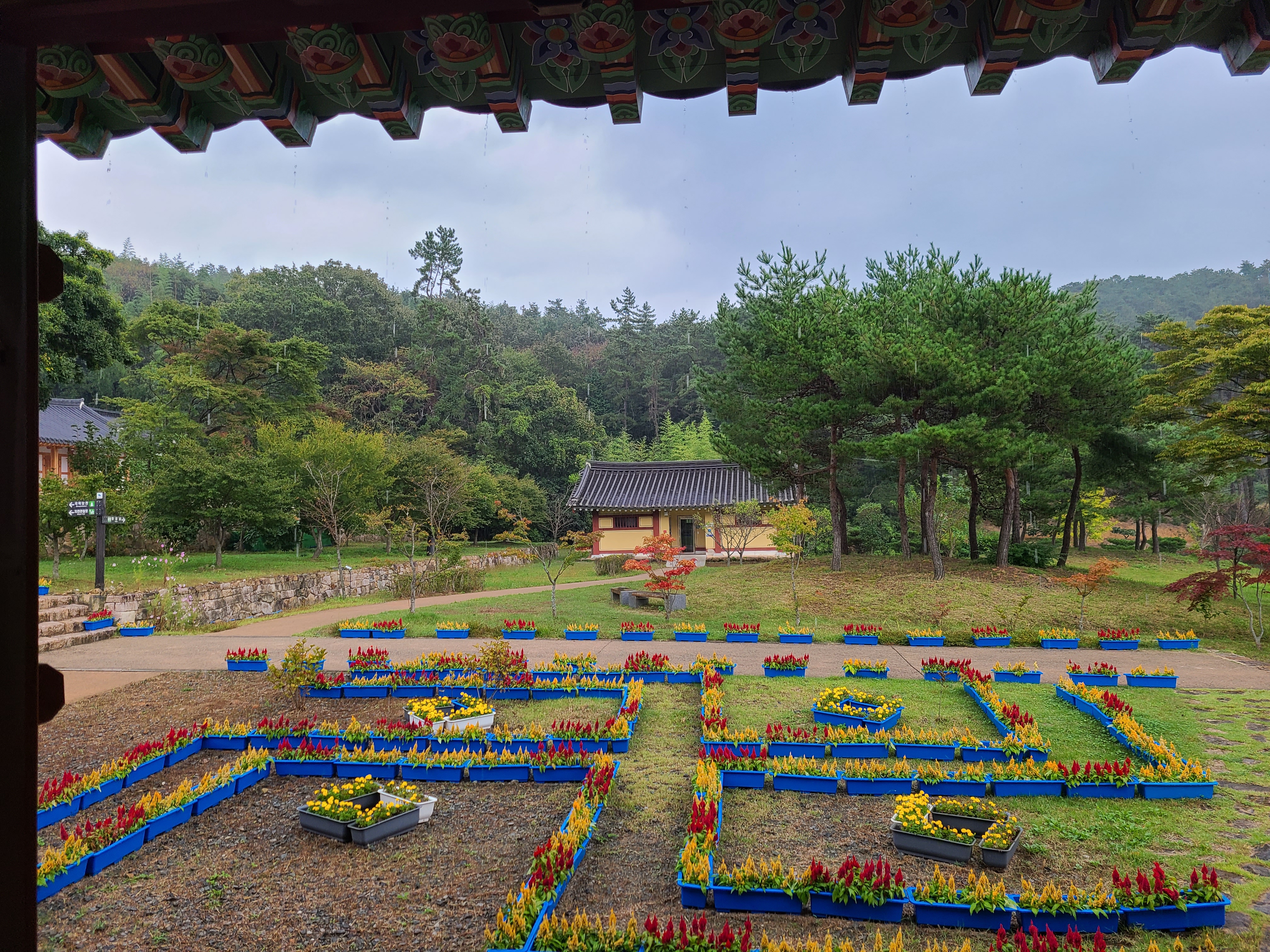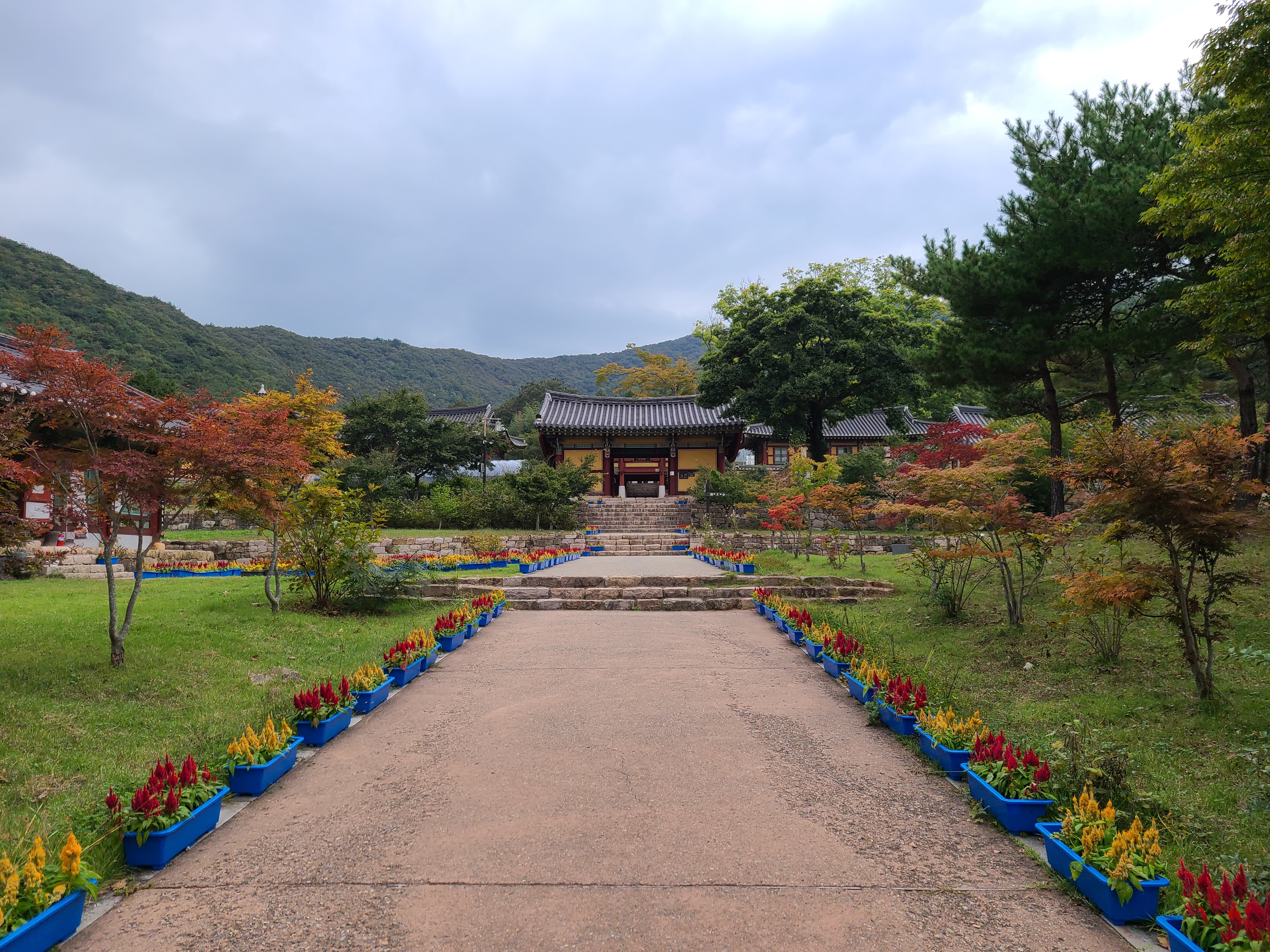 일주문을 통과해 들어서니 길 양옆에 맨드라미 화분이 줄지어있고 이곳은 벌써 단풍이 물들기 시작했다. 신안 병풍도 맨드라미 축제를 가지 못했는데 이곳에서 맨드라미를 보게 되었다.