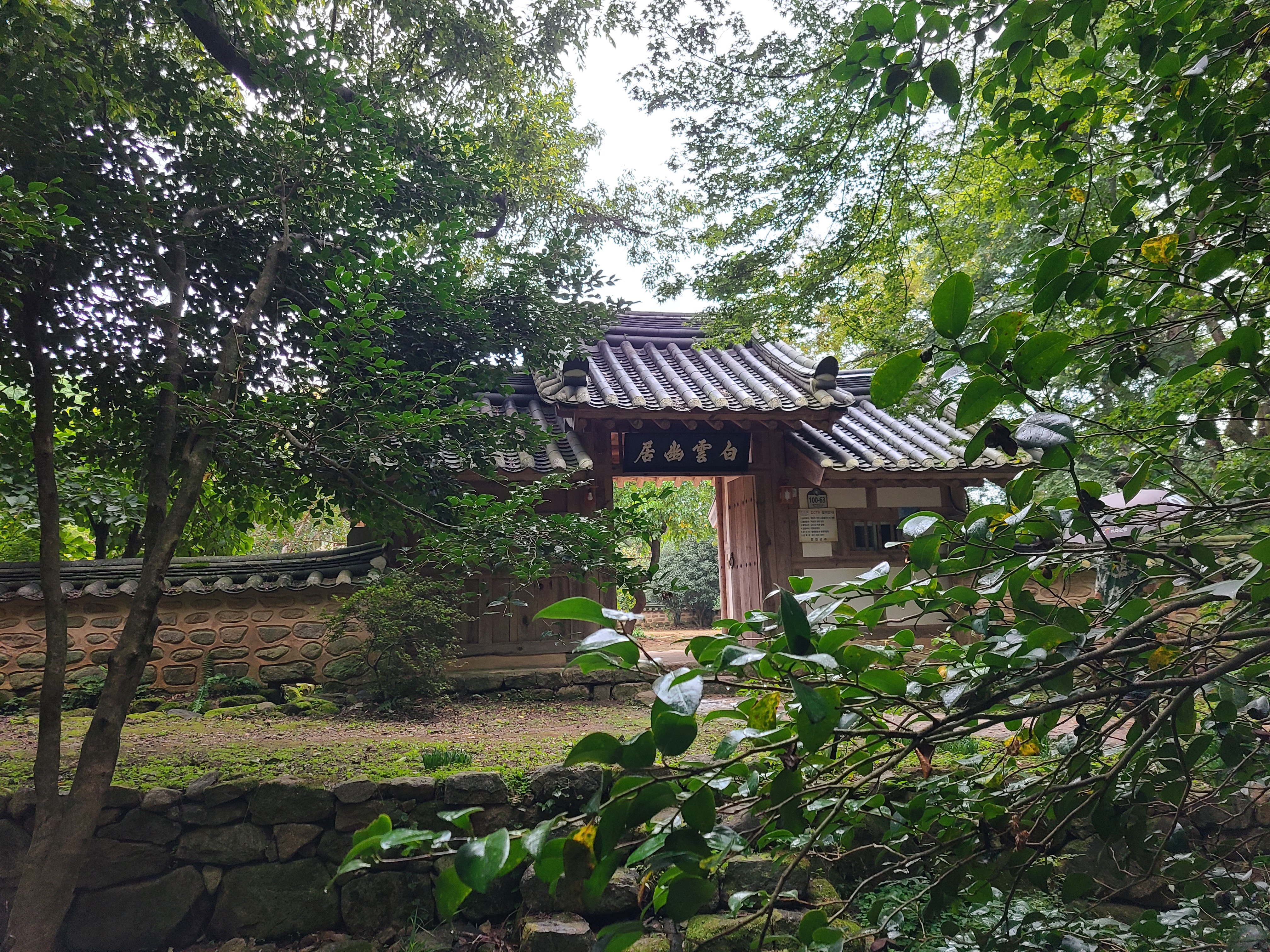 백운동 원림에 있는 동백나무잎은 비를 맞아 더욱 윤기가 났고 뜰에 있는 감나무에는 감이 익어가고 있었다.