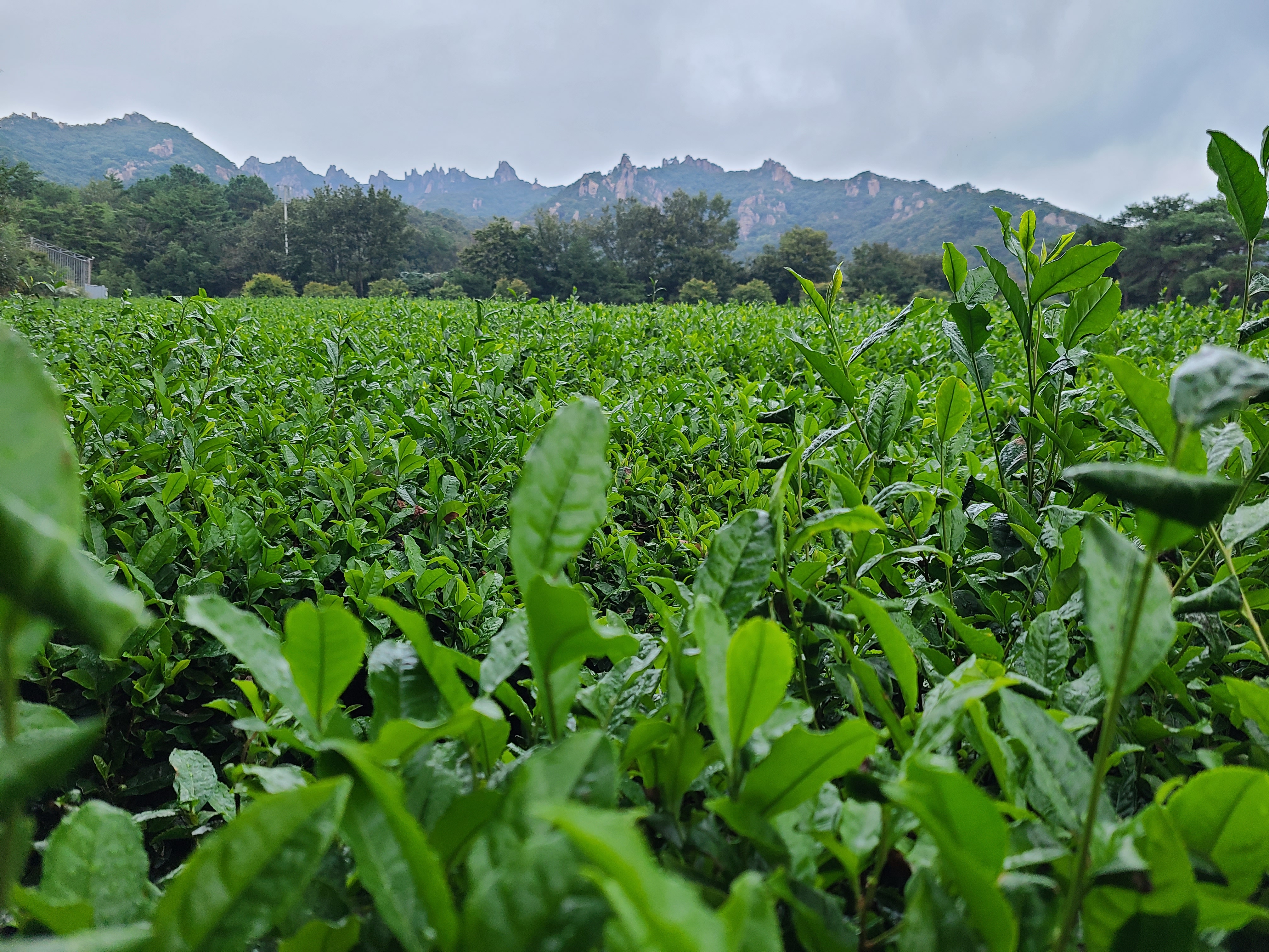 비가 내리는 모습을 내다본 후 다시 자리에 앉으니, 보살님이 자연산 녹차 잎으로 손수 덕은 차라는 설명과 함께 입가심을 하라고 차를 내어준다.