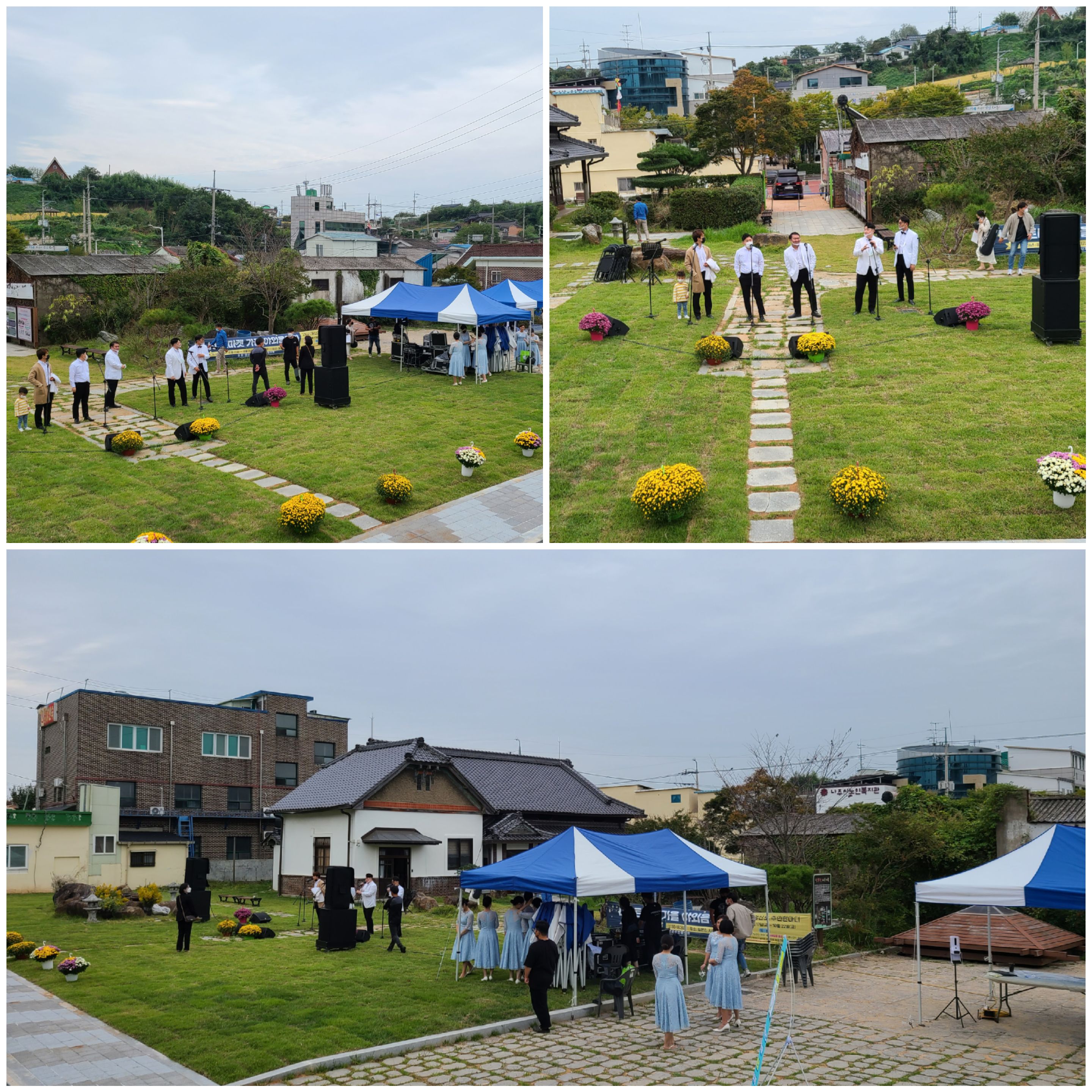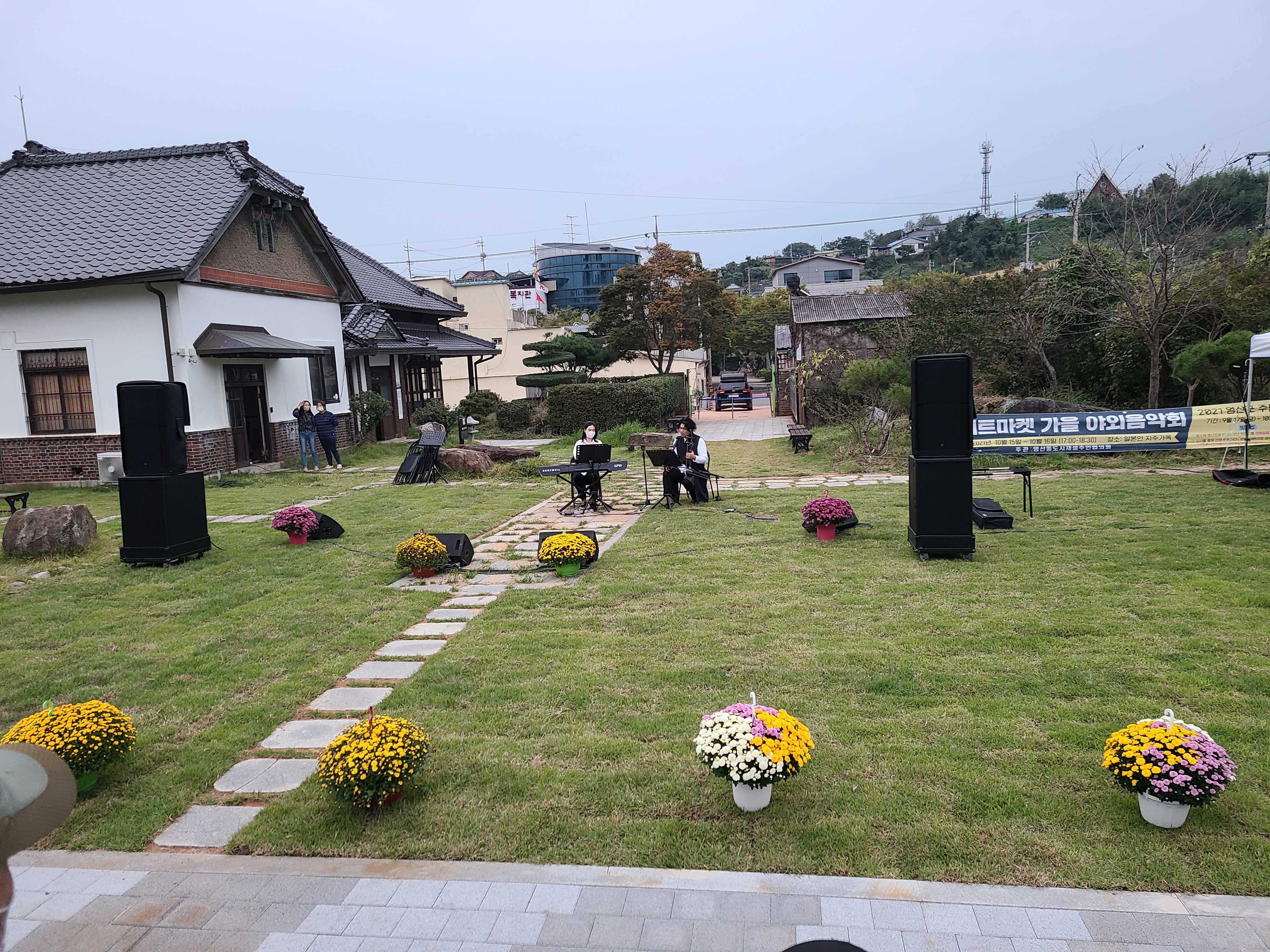 죽전 골목에서 다시 일본인 지주 가옥으로 이동하는데 야외음악회에 사람들이 모여들어 있고 음악회가 한창 진행되고 있었다.